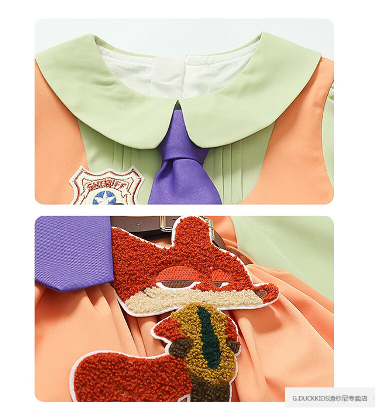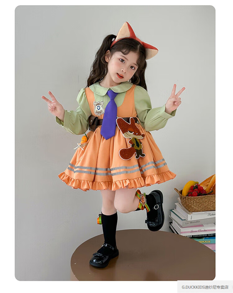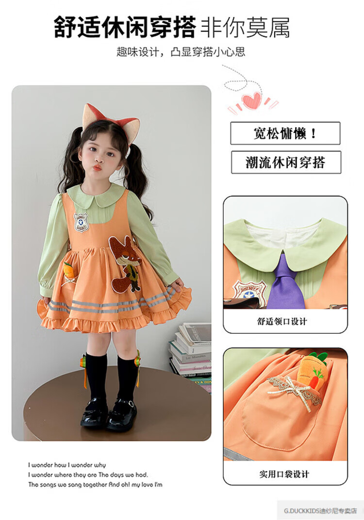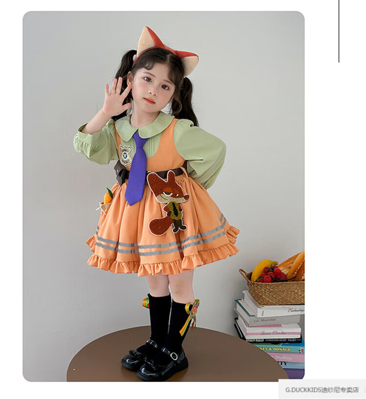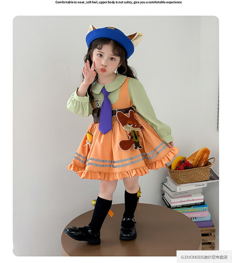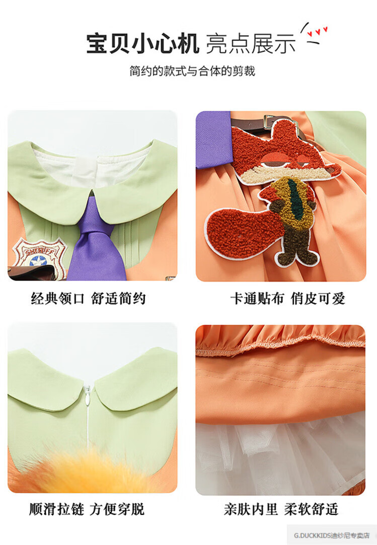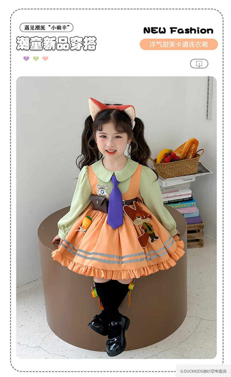 G.duck Nickelodeon Fox Princess Dress Girls Dress Spring and Autumn Western Style Zootopia Children's Performance Clothing Fall Nickelodeon Dress + Tie 100 Recommended for 2-3 years old 90-100cm