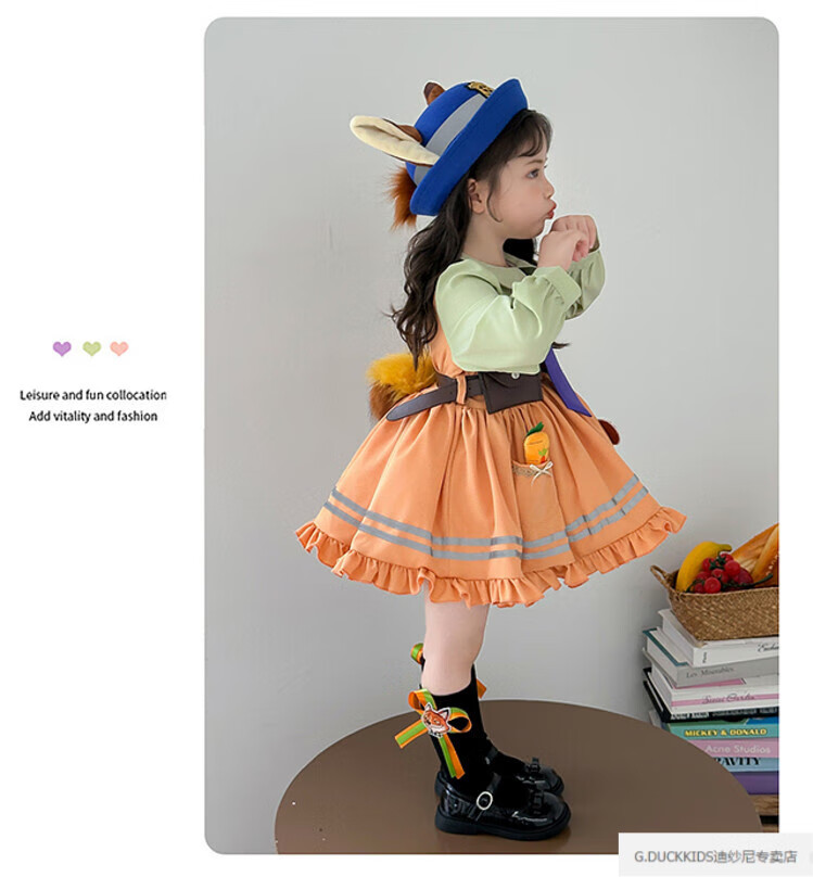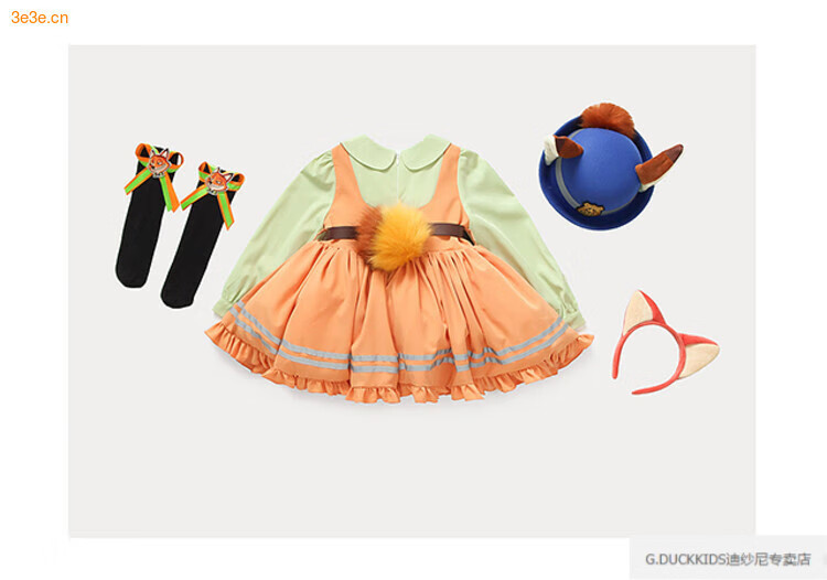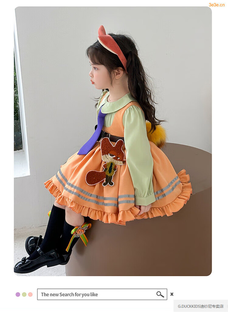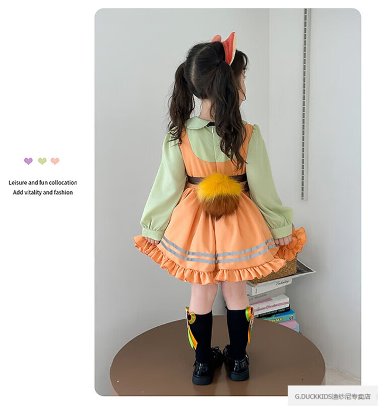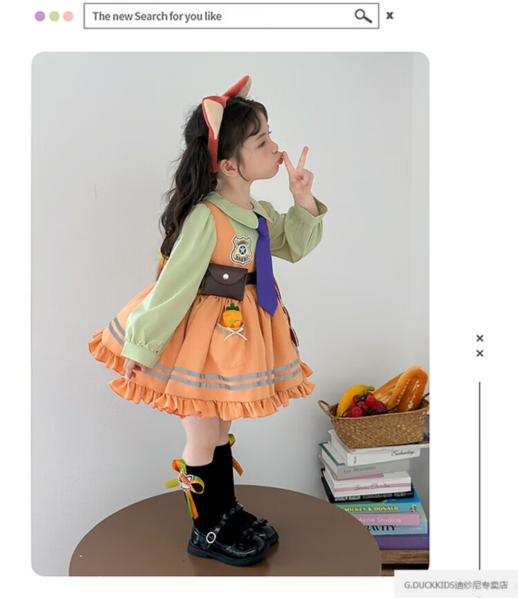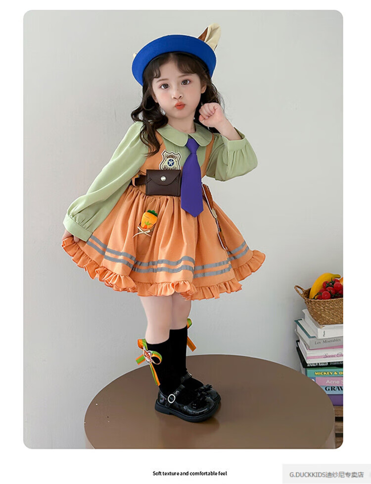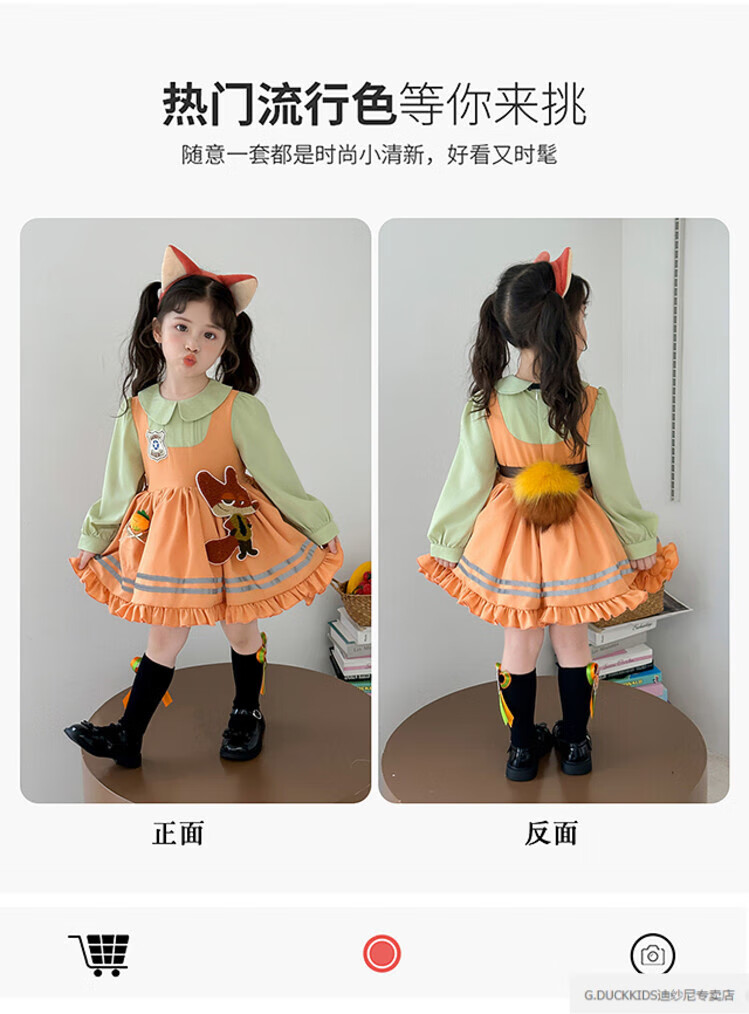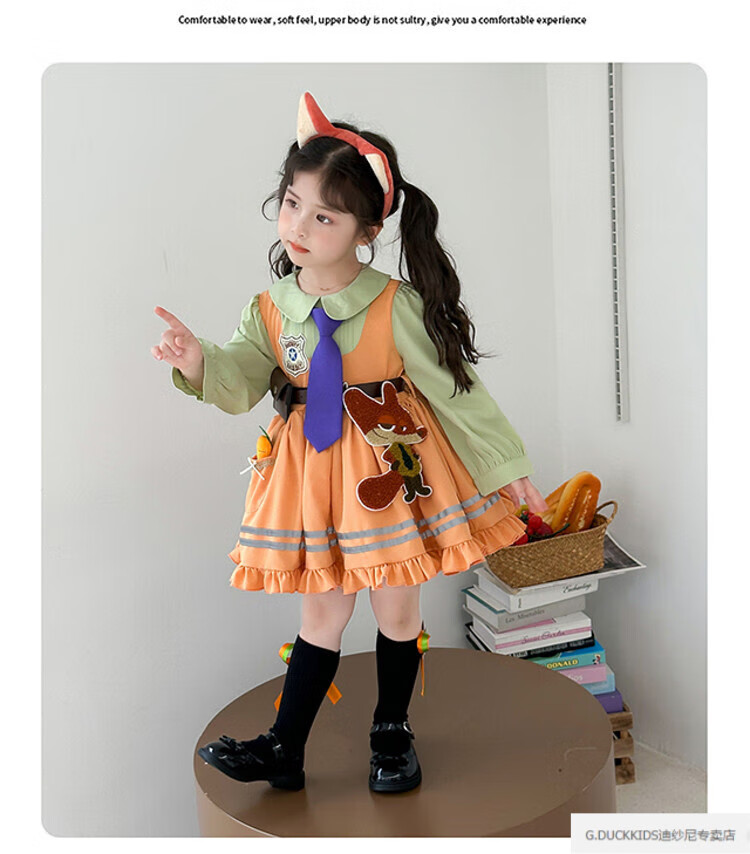 G.duck Nickelodeon Fox Princess Dress Girls Dress Spring and Autumn Western Style Zootopia Children's Performance Clothing Fall Nickelodeon Dress + Tie 100 Recommended for 2-3 years old 90-100cm