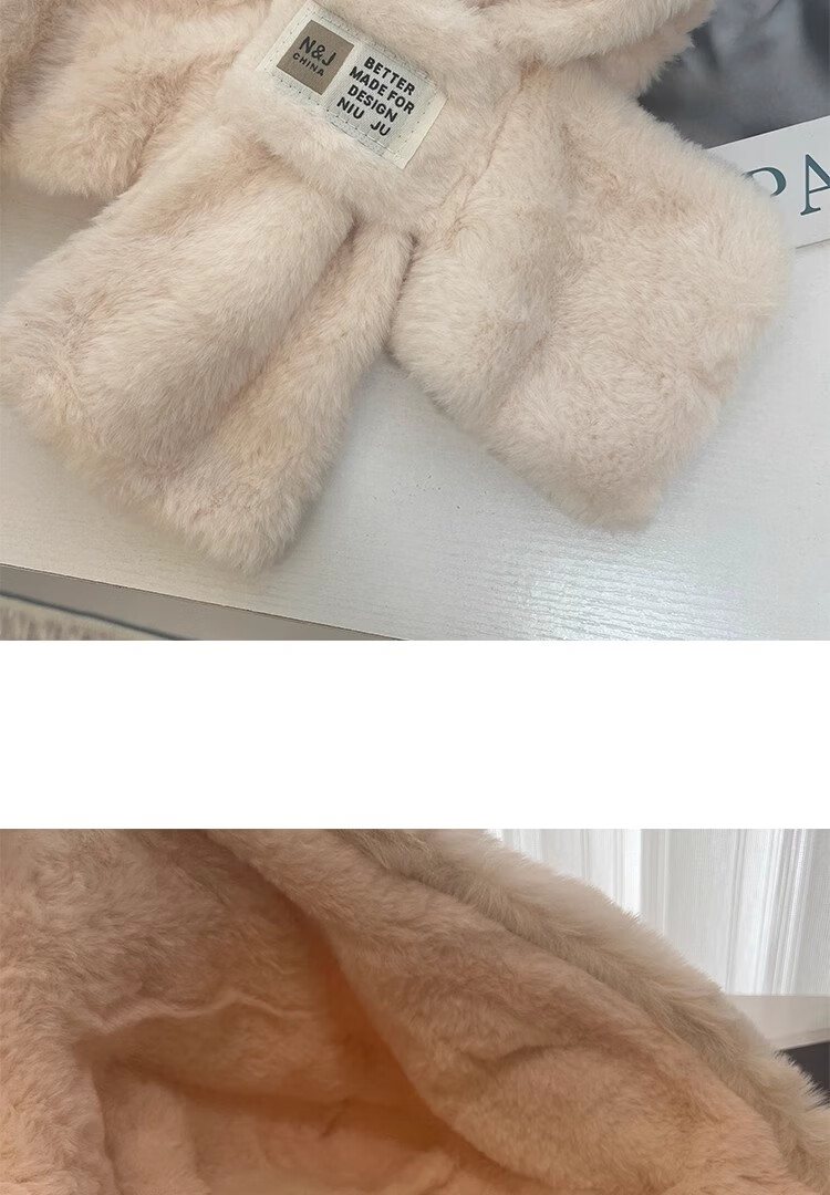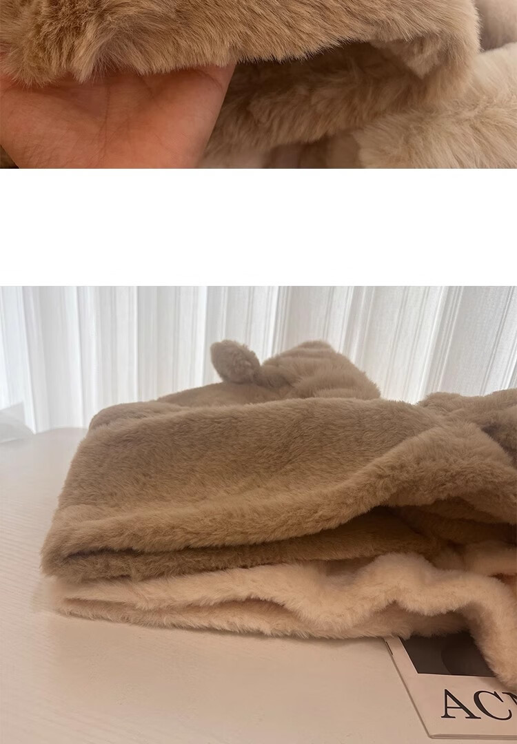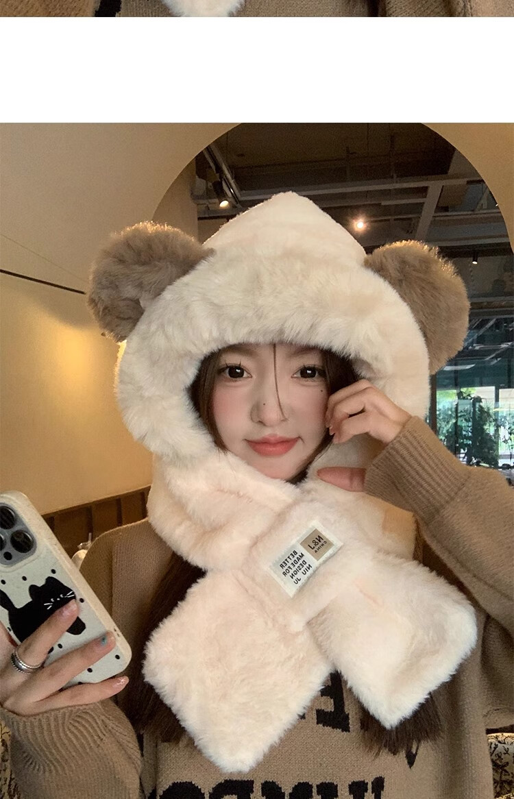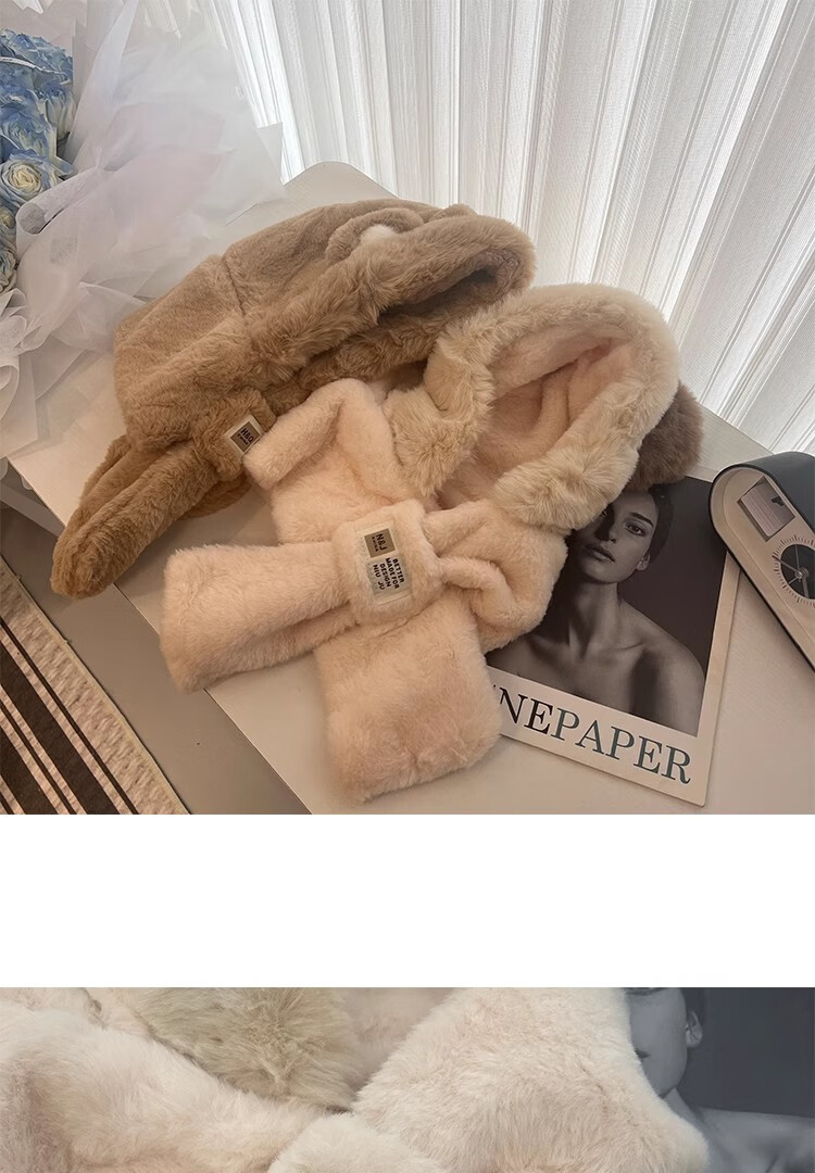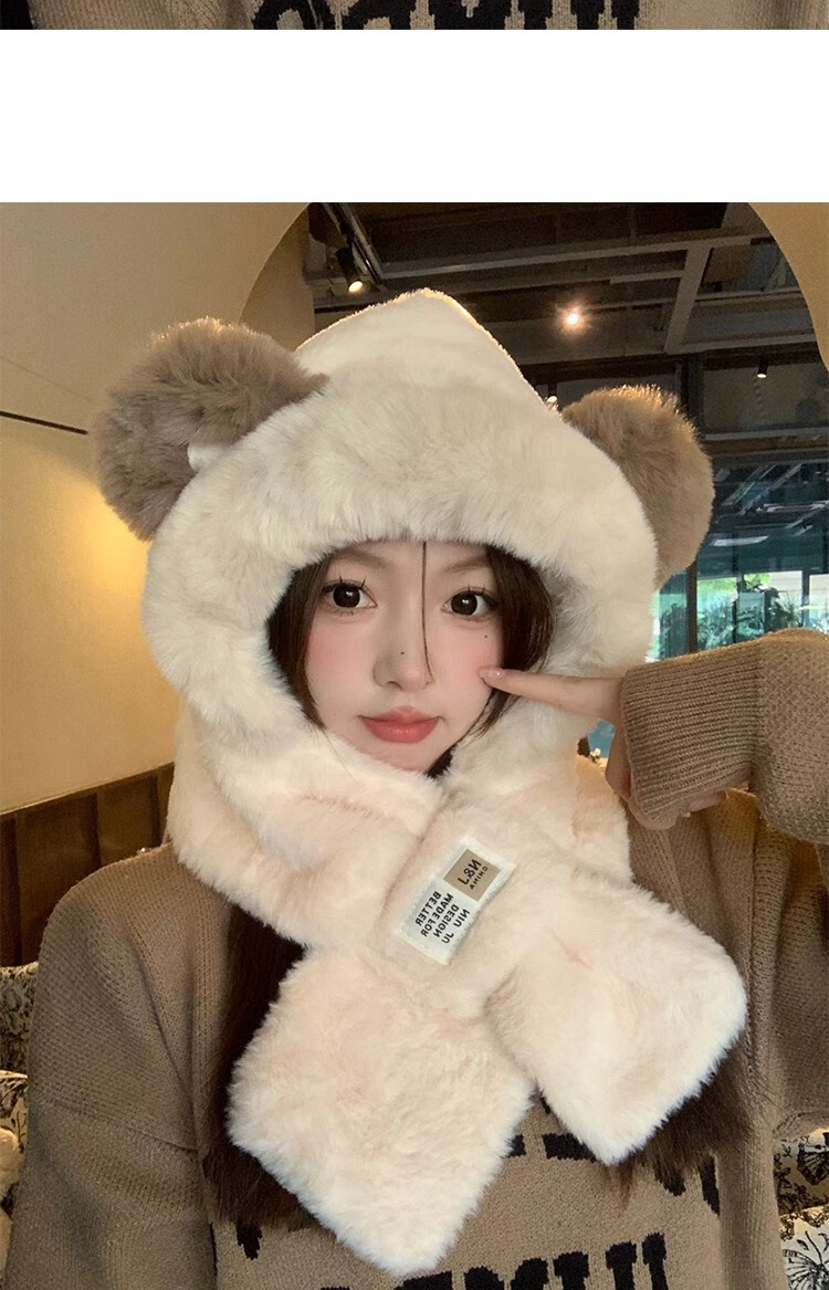 Muchiston furry warm ear protection hat women's scarf one-piece two-piece set winter thickened Lei Feng hat women's autumn and winter scarf beige one size