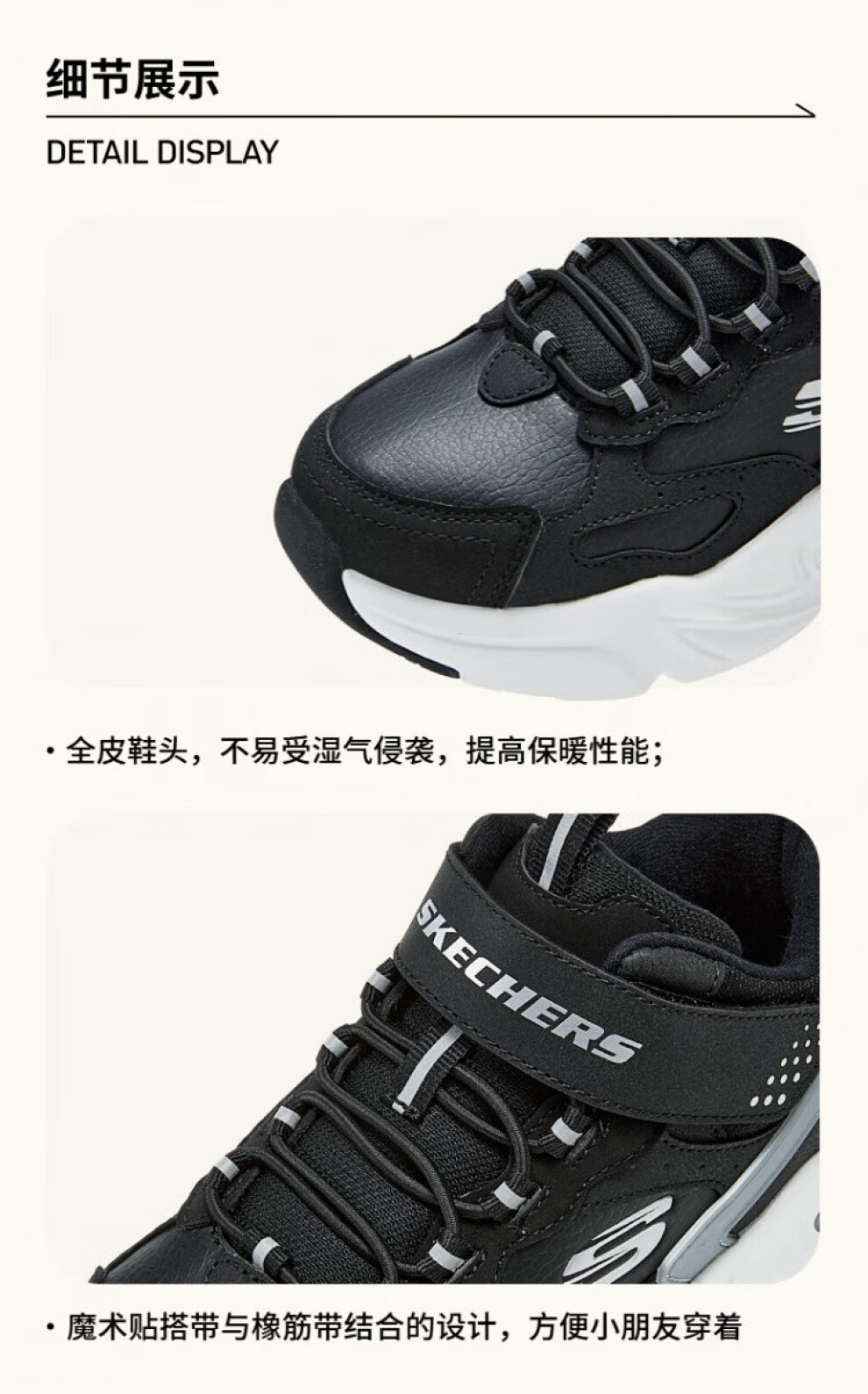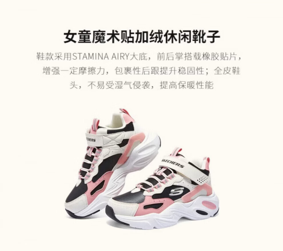 Skechers children's autumn and winter velvet warm cotton shoes for boys and girls sports non-slip middle and large children's boots 319250L WLPR/WLPR 30