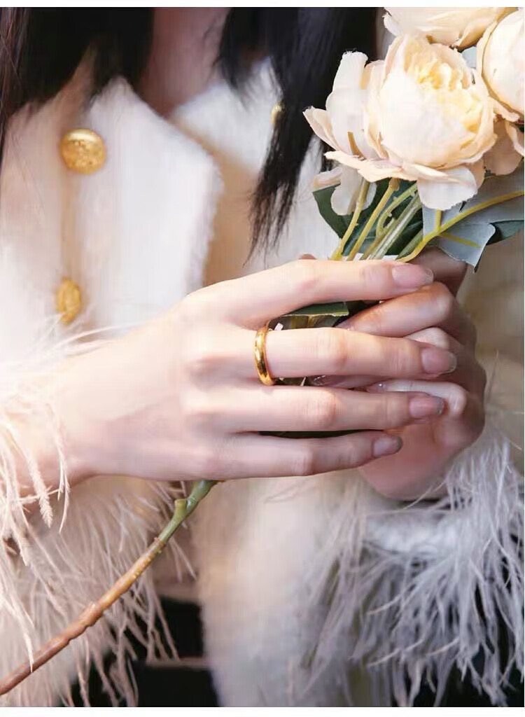 Chienglao Old Phoenix Gold Store Model 9999 Pure Silver Ancient Method Heritage Gold-coated Silver Ring Couple's Ring Men's and Women's Valentine's Day Polish