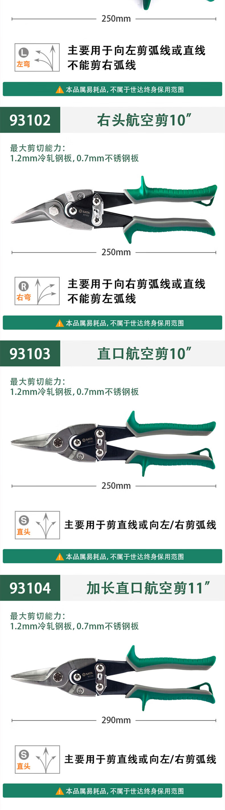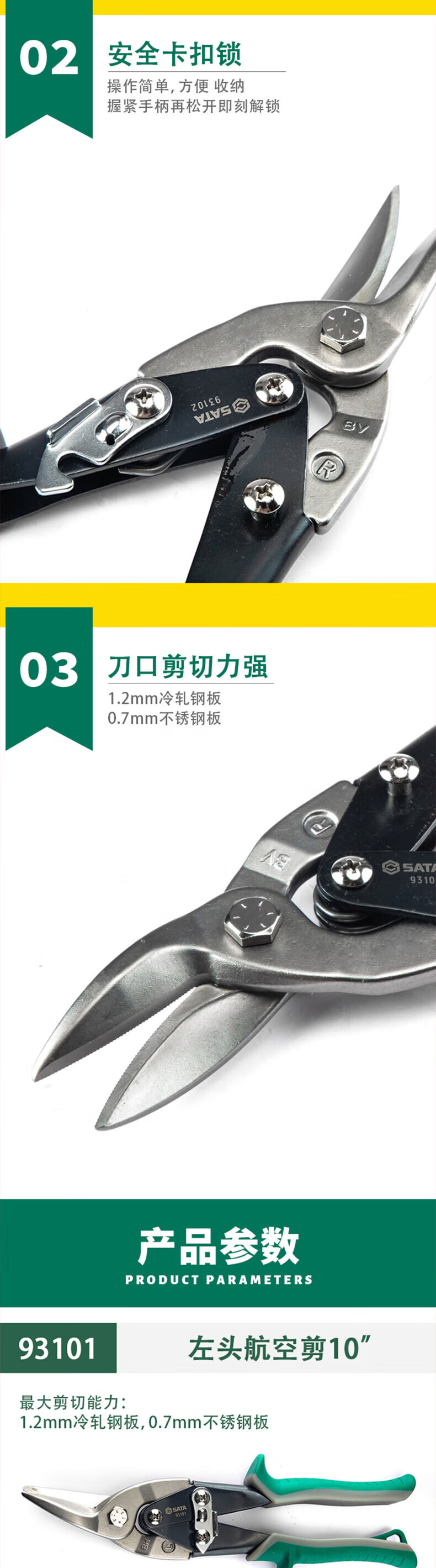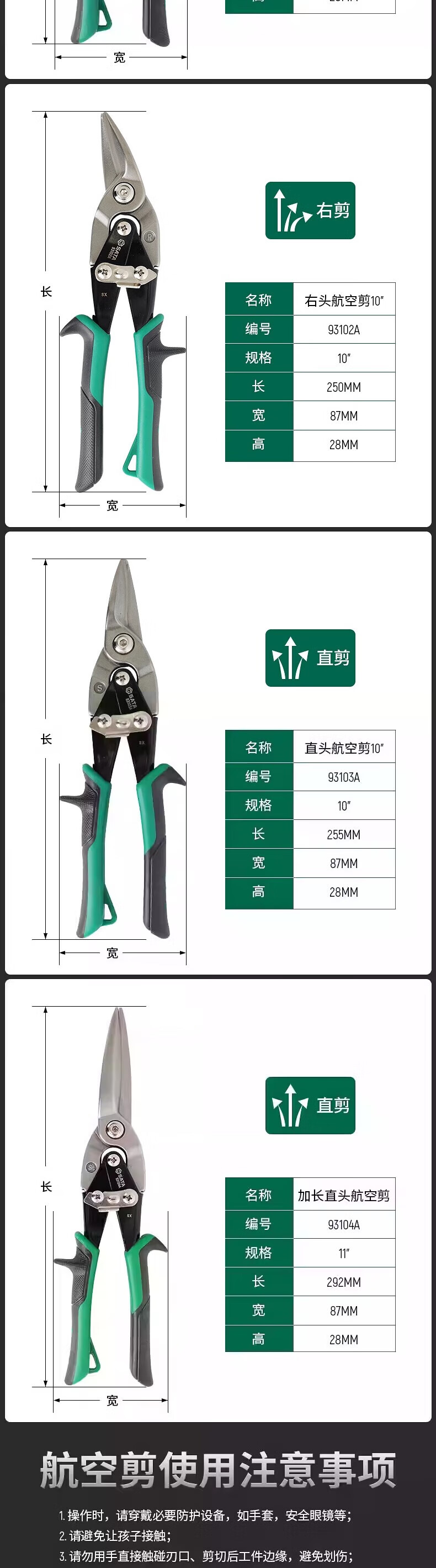 He Jiagong Shida (SATA) Shida aviation scissors integrated ceiling decoration tool keel stainless steel aluminum buckle plate special 93101A/left head aviation scissors 250mm