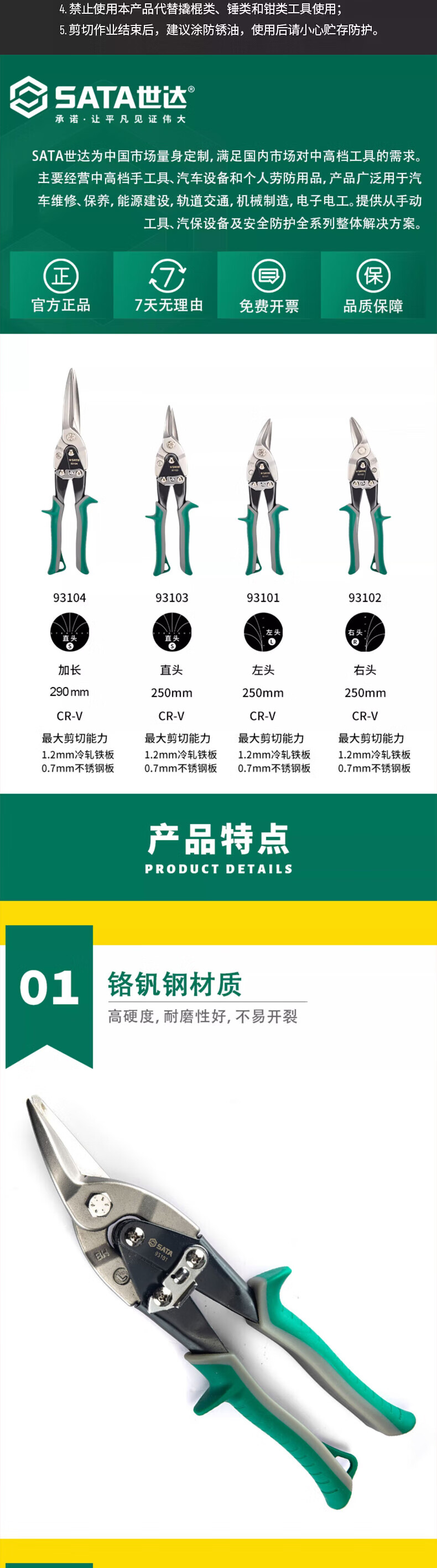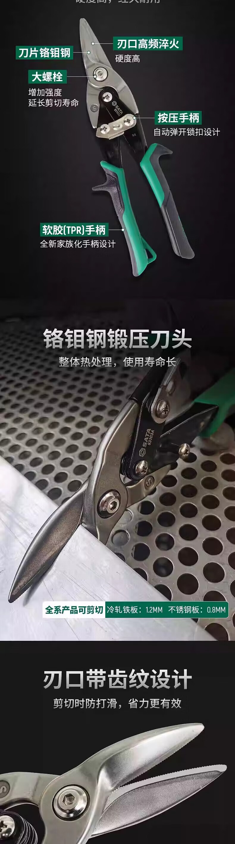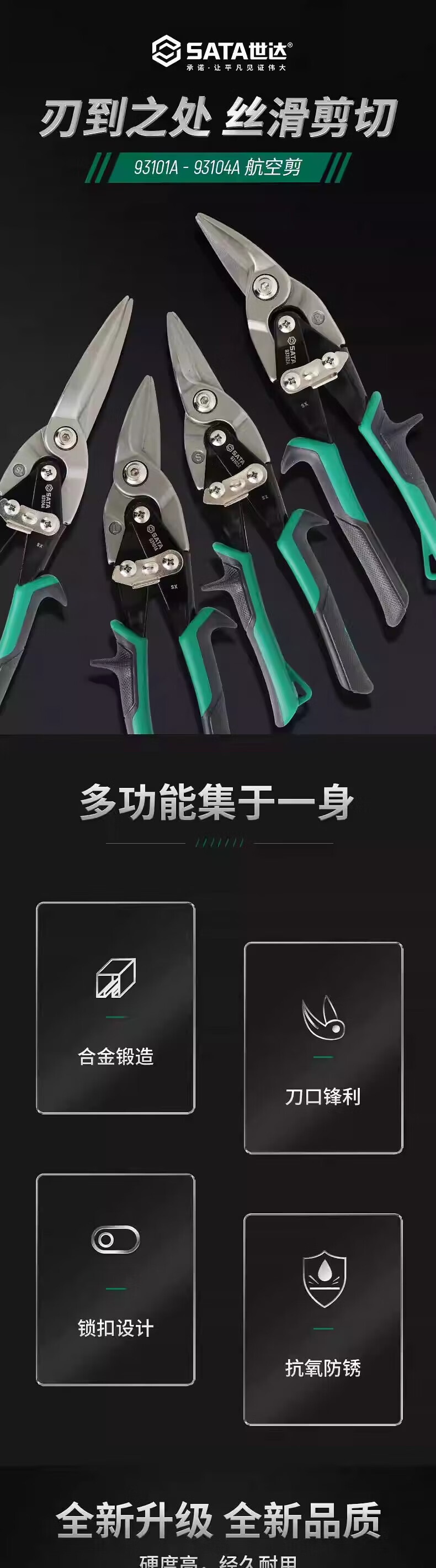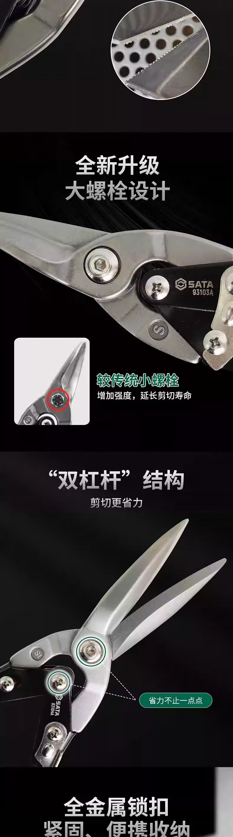 He Jiagong Shida (SATA) Shida aviation scissors integrated ceiling decoration tool keel stainless steel aluminum buckle plate special 93101A/left head aviation scissors 250mm