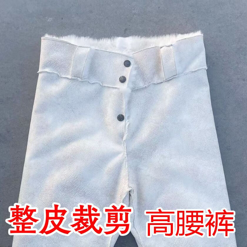 Hengyuanxiang (HYX) Lined Fur Integrated Leather Pants Men and Women Middle-aged and Elderly Thickened and Warm Whole Leather Sheepskin Pants Chunquan 100 High-end Official Store Flagship High Waist_Environmentally Friendly Leather Pants L_110-130Jin Jin is equal to 0.5 kg
