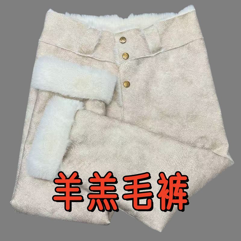 Hengyuanxiang (HYX) sheep wool trousers men's trousers with fur integrated cotton trousers for men and women middle-aged and old self-heating graphene velvet Chunquan 100 high-end official store flagship high-waisted whole leather environmentally friendly sheep wool liner XL_recommended 130-150 Jin Jin equals 0.5 kg