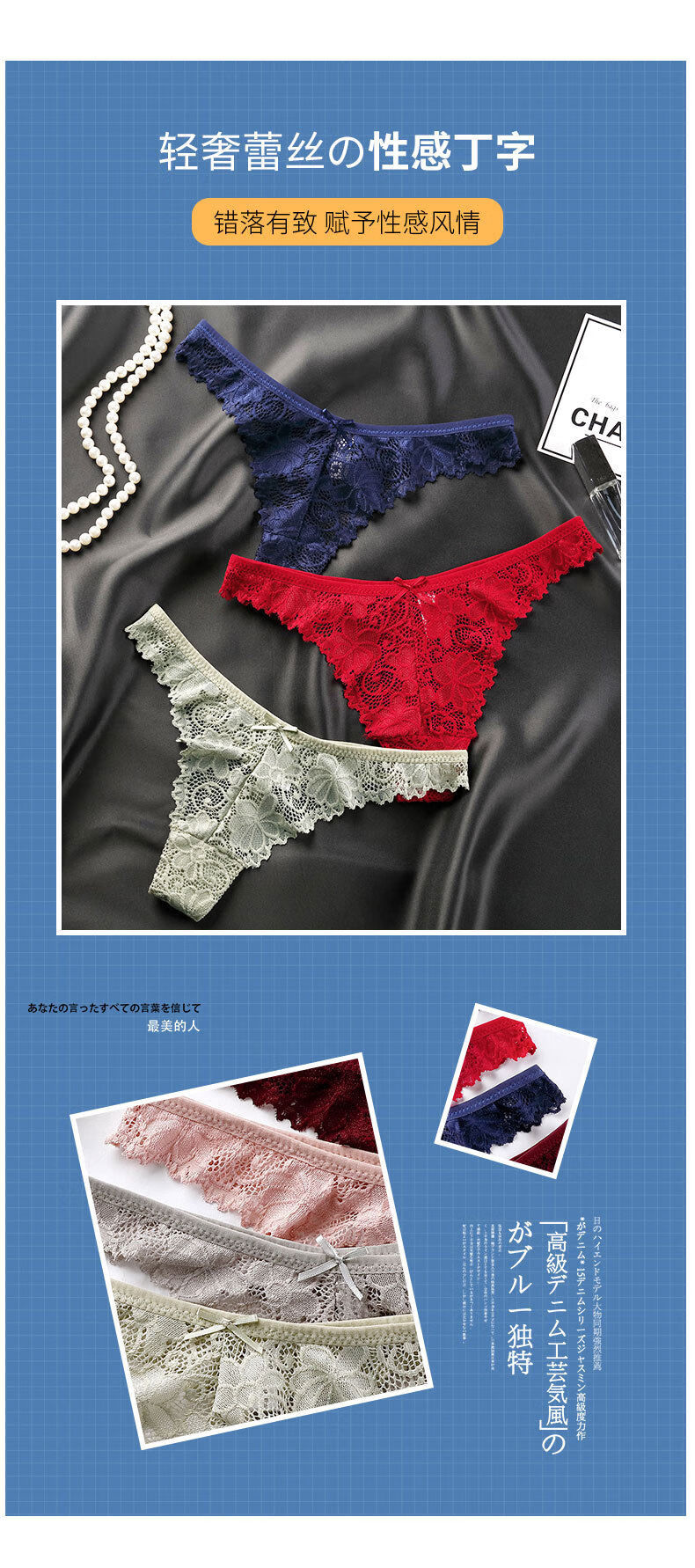 Mature women's thong does not clamp the buttocks, big ass women's underwear, sexy high-end thong seamless sports t-pants bikini, dark blue l