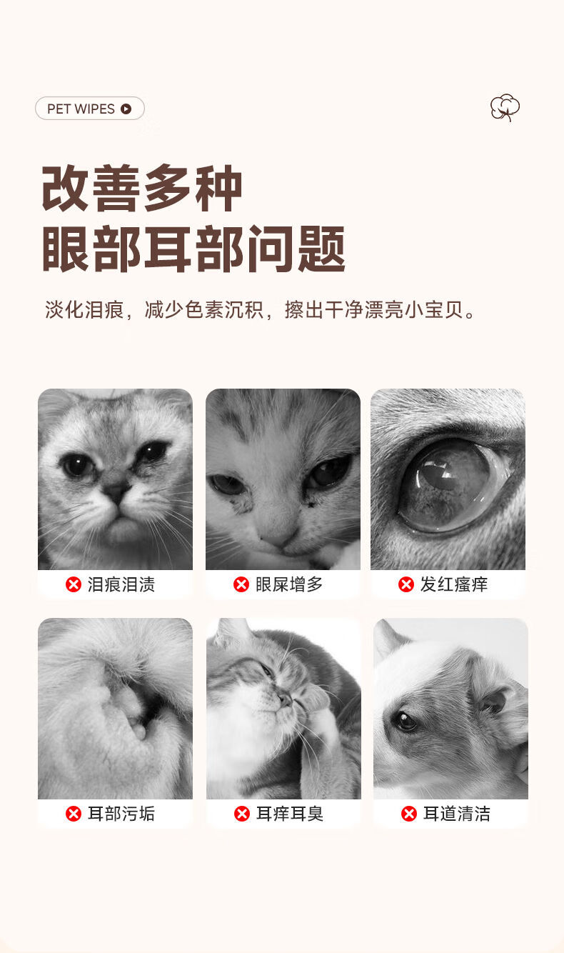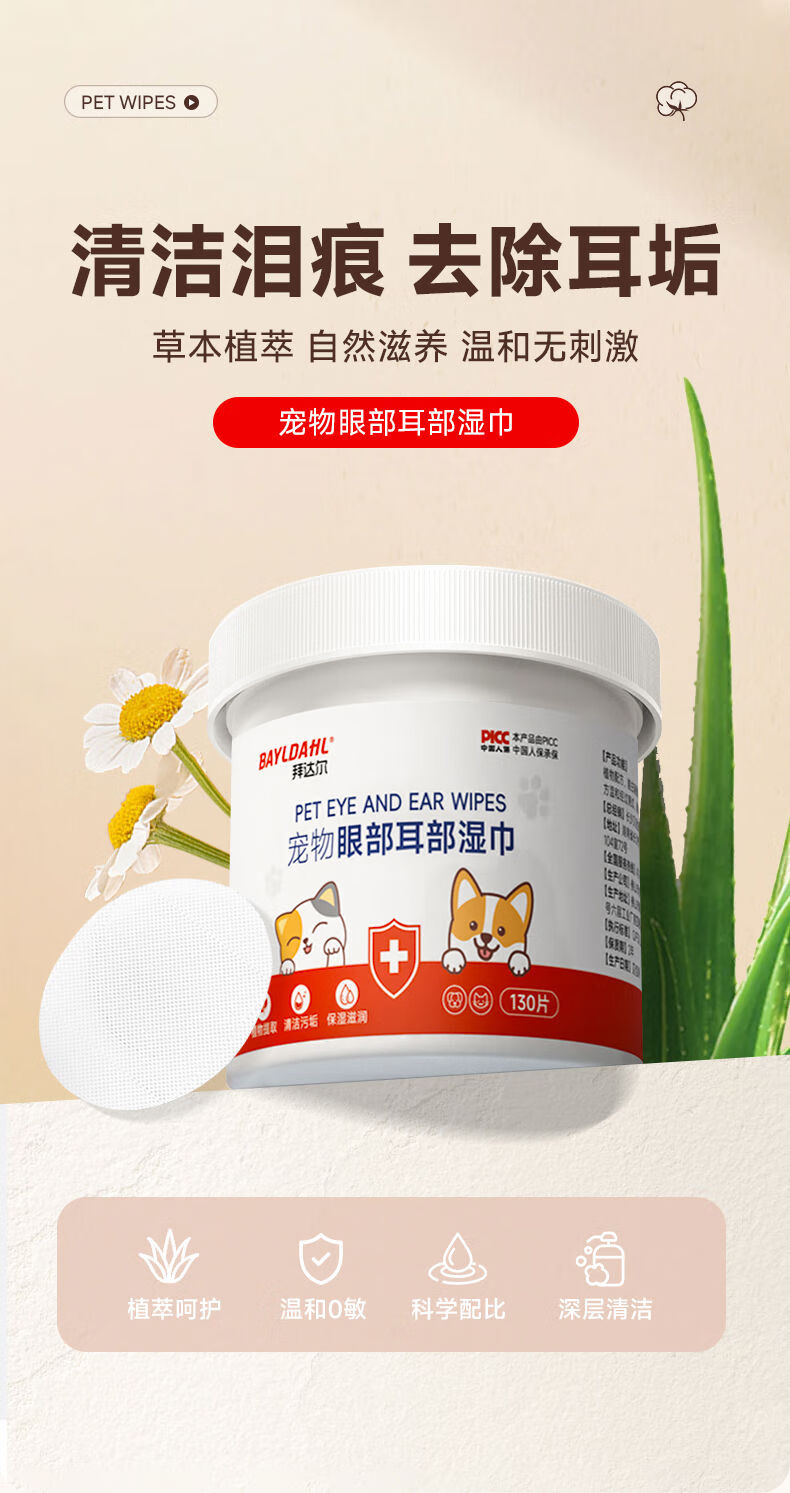 Pick-up cat pet wipes, cat tear stain cleaning wipes, dog Bichon Teddy eye wipes, pet eye wipes, 1 box of 130 tablets, 1 bottle of 120ml ear drops