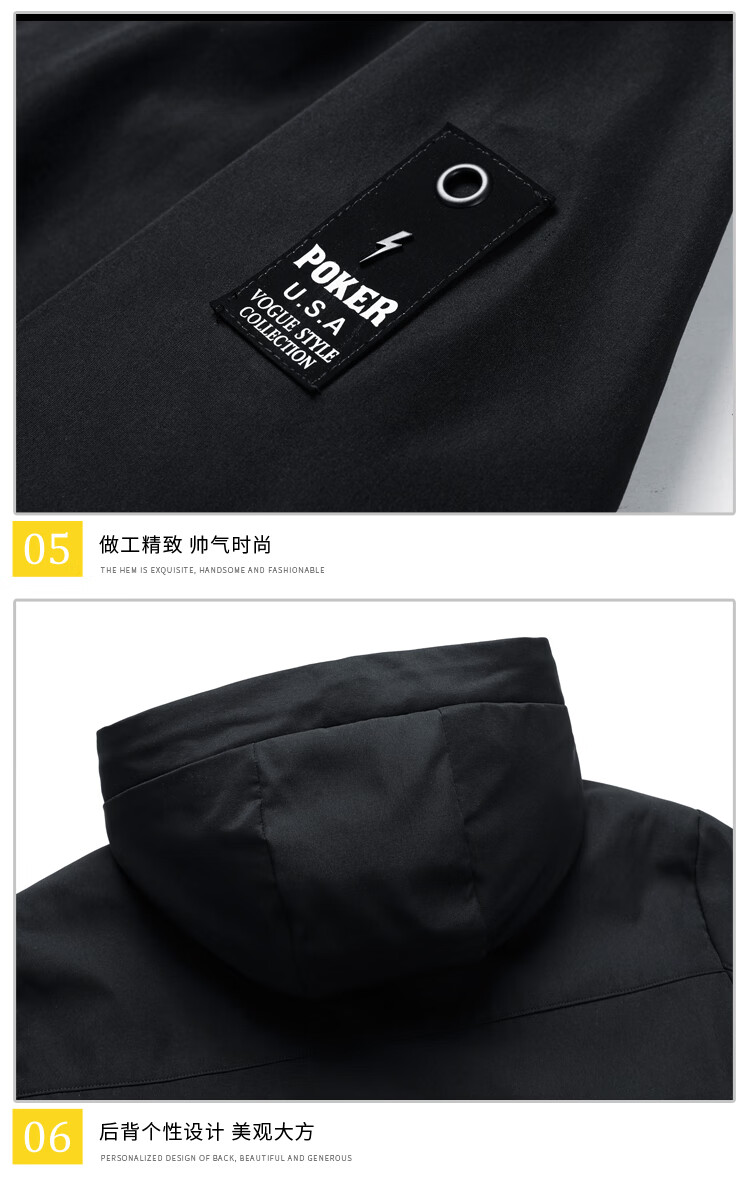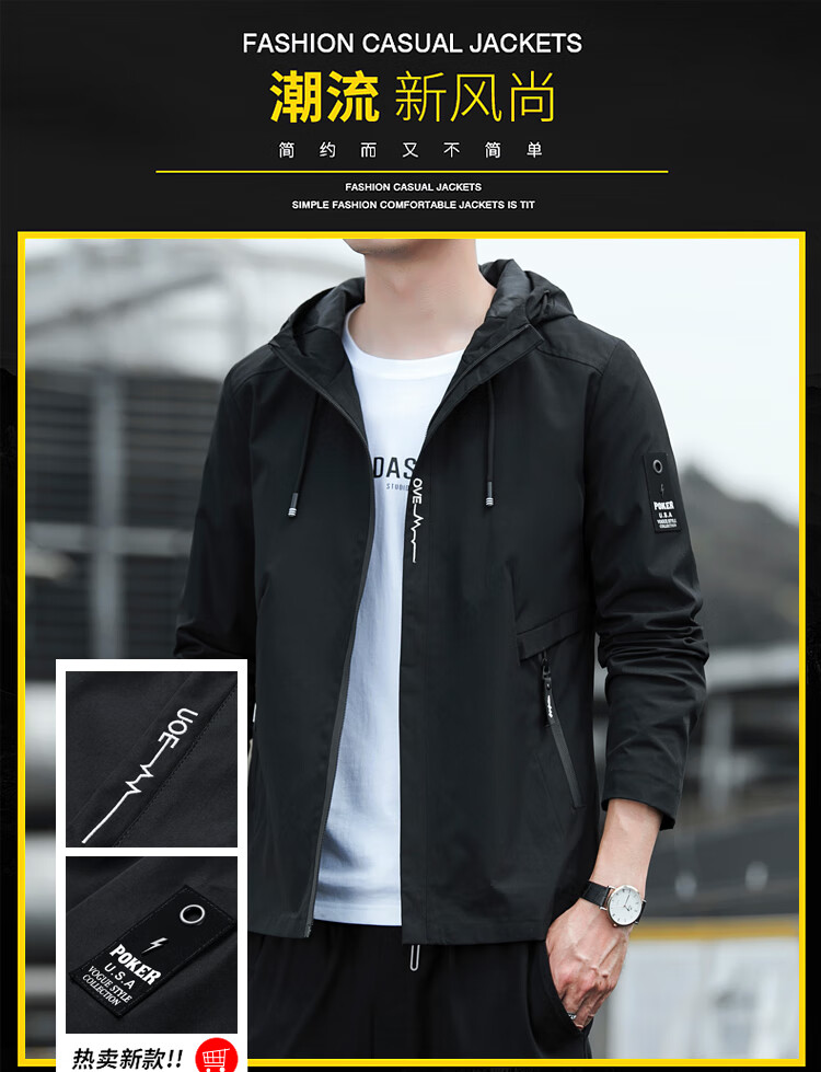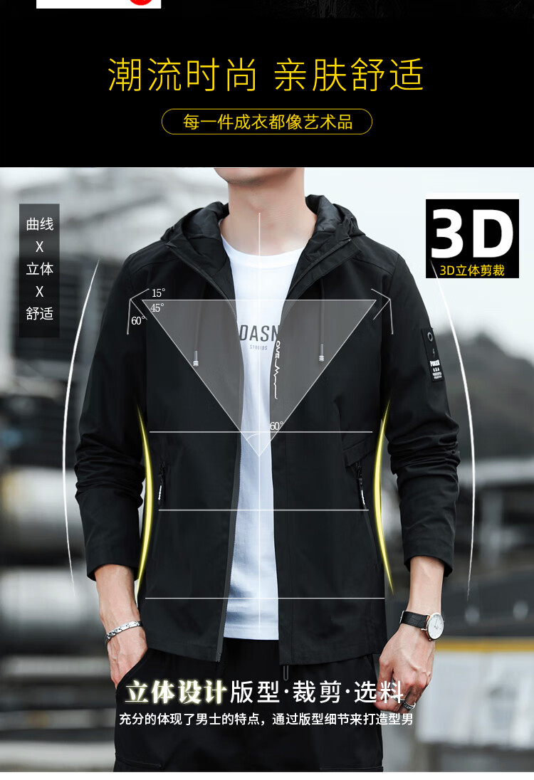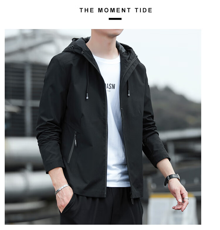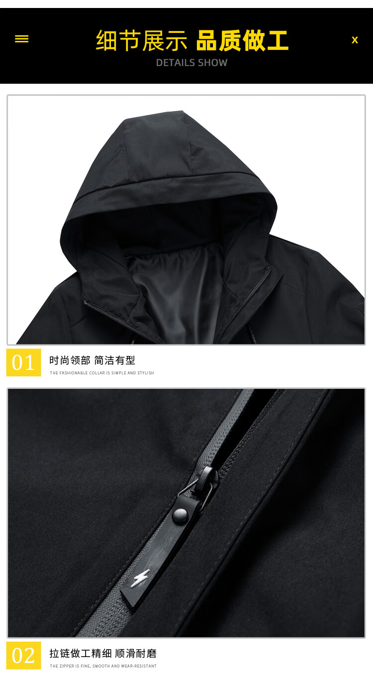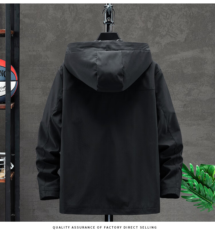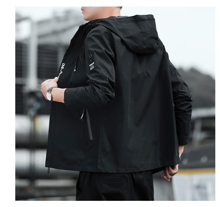 Cotton Jacket Men's Spring and Autumn New Waterproof Thin Windbreaker Outdoor Fishing Four Seasons Mountaineering Wear Trendy Jacket Men Black 2XL