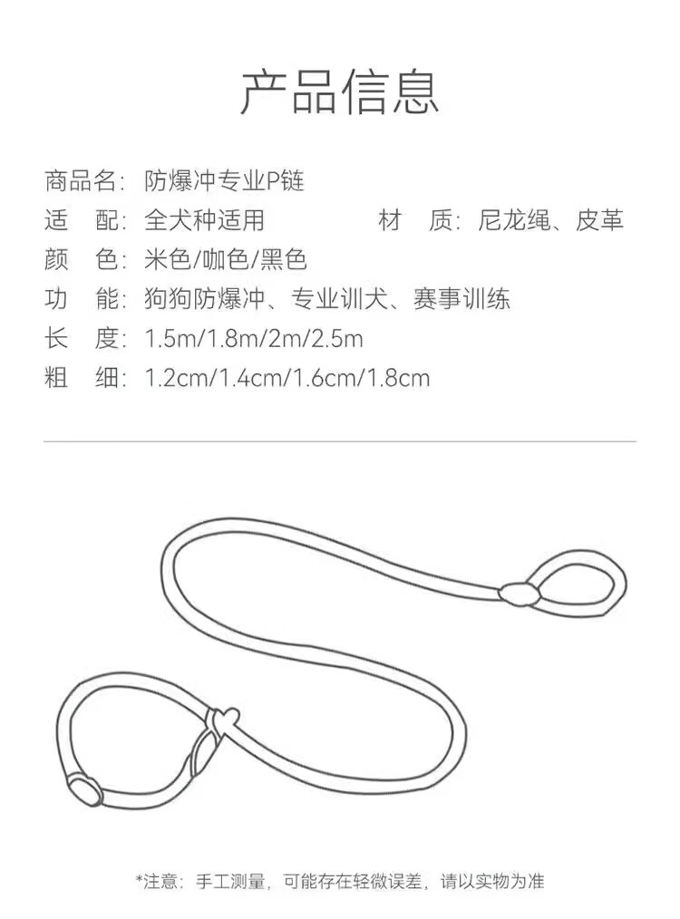 Guazhou Mu dog rope explosion-proof P chain dog walking traction rope anti-breakaway dog chain medium and large dog traction rope length 1.5m*thick 1.6cm black