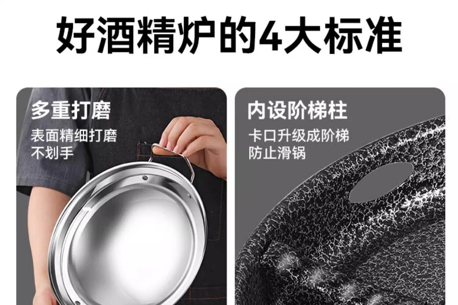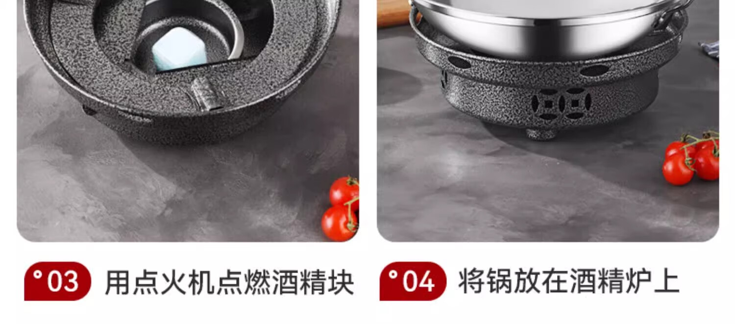 Alcohol stove small hot pot dry pot pot household windproof special stove solid alcohol pot pot high-end open stove 26cm dry pot (with lid) + solid wax + alcohol stove 22cm