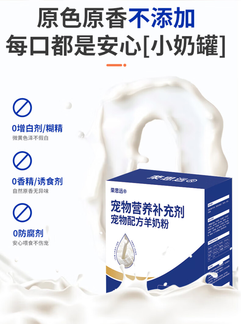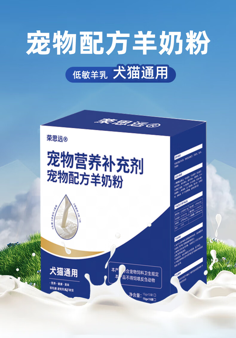 Formula goat milk powder for pets. Close to breast milk for cats and dogs. Balanced nutrition to promote development and protect the stomach. Dog and cat milk powder 6 pieces/60g. Trial pack without box.