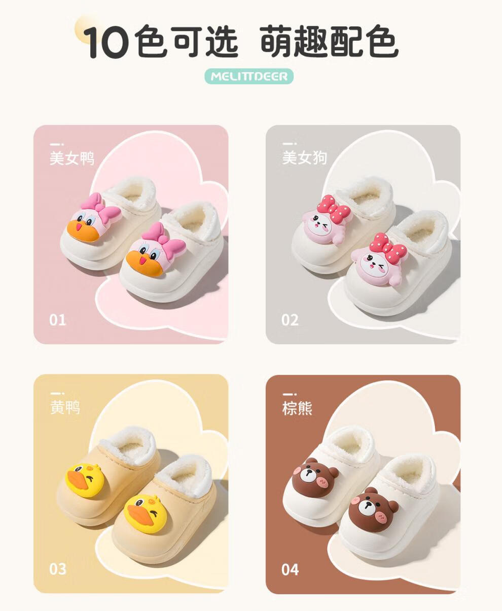 Deer Milli New Product Children's Slippers Girls Winter Non-Slip Waterproof Lightweight Warm Cotton Shoes 34 Years Old Baby Shoes Red Bow 15 Inner Length 15cm_150 Recommended Foot Length 14.5
