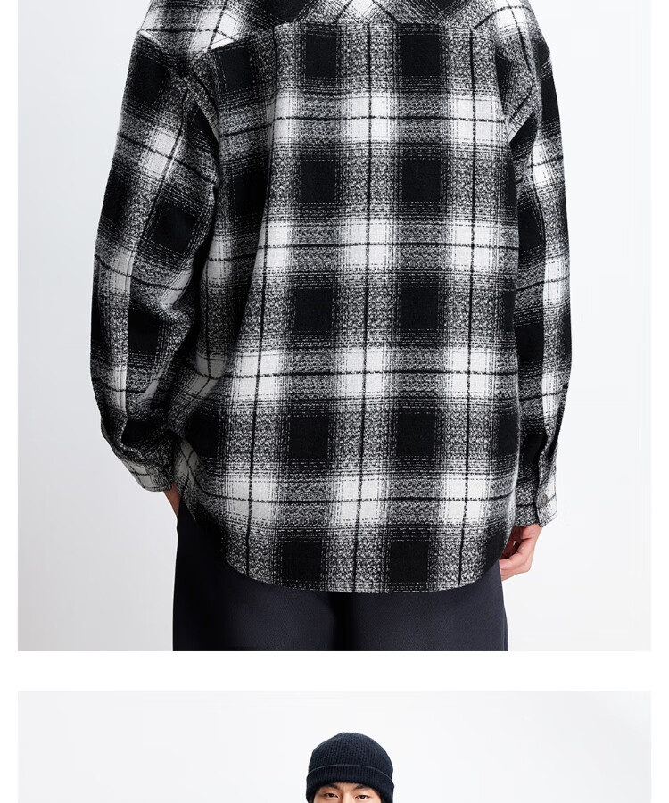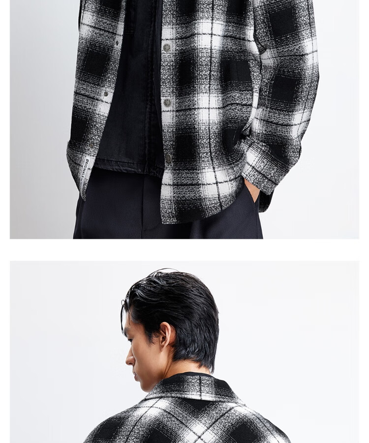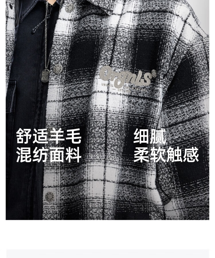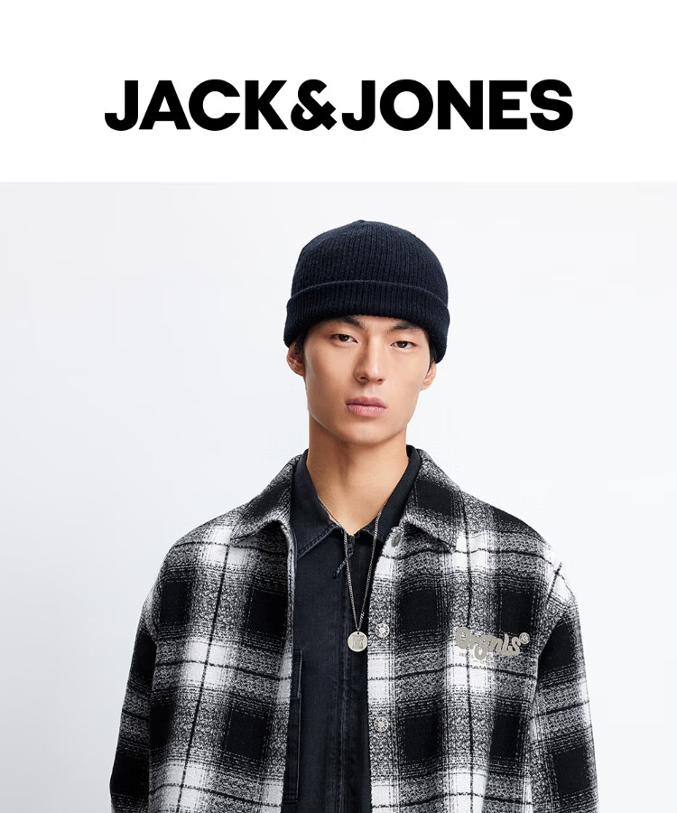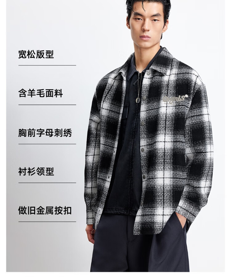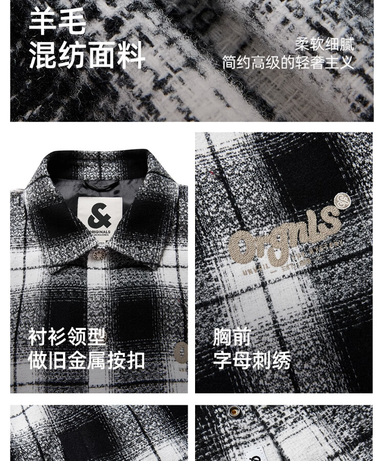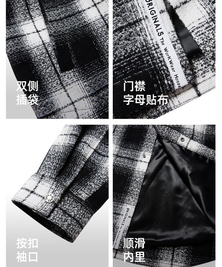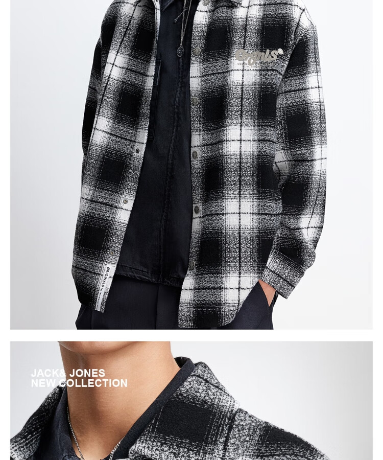JACK&JONES 25th Autumn and Winter Woolen Jacket Men's Short Casual Jacket Loose Wool Letter Plaid Jacket Men's S03 Black Regular Slightly Loose, Card Size Small M (175)