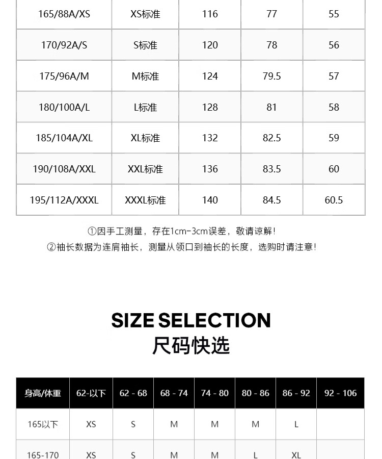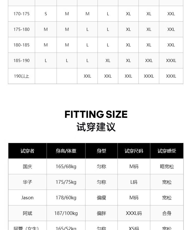 China (cm) 160-165/84-86 165-170 / 88-90 167-172 / 92-96 168-173 / 98-102 170-176 / 106-110
