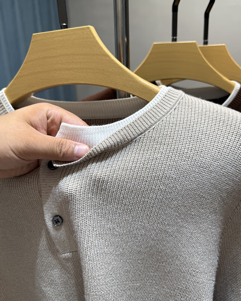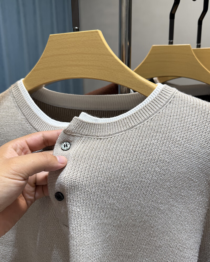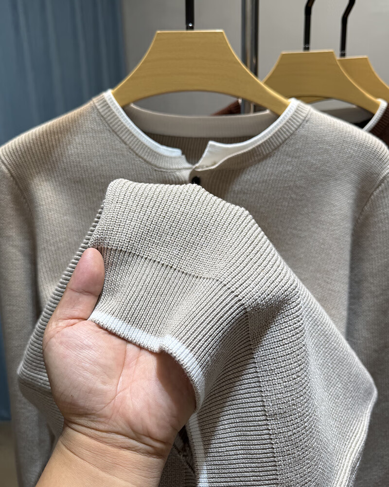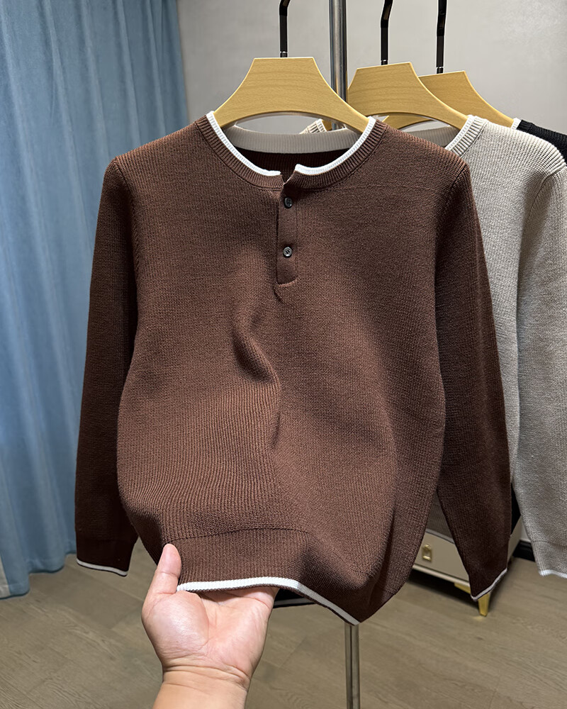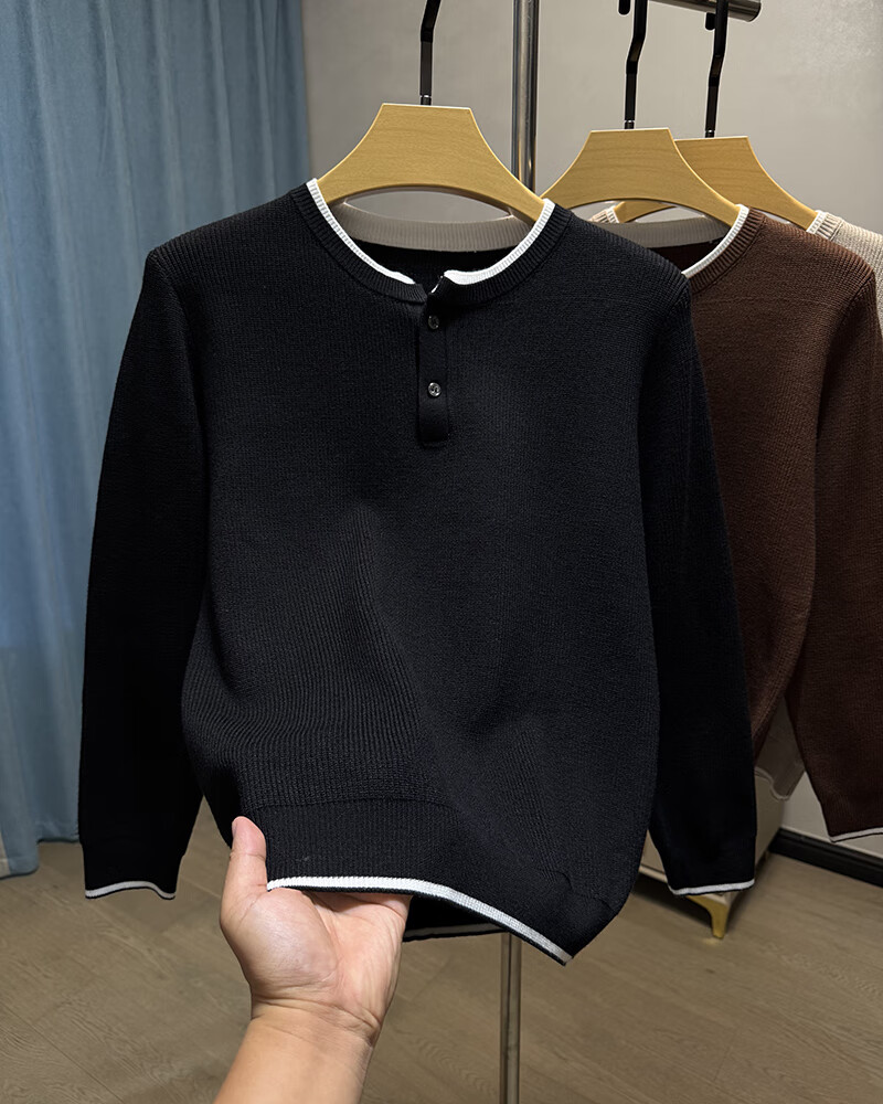 Romon two-button Henry collar sweater men's autumn and winter trendy long-sleeved bottoming shirt men's fake two-piece sweater black L 170