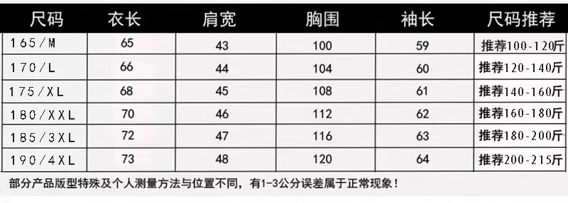 China (cm) 165 / 88-90 170 / 96-98 175 / 108-110 180 / 118-122 185 / 126-130