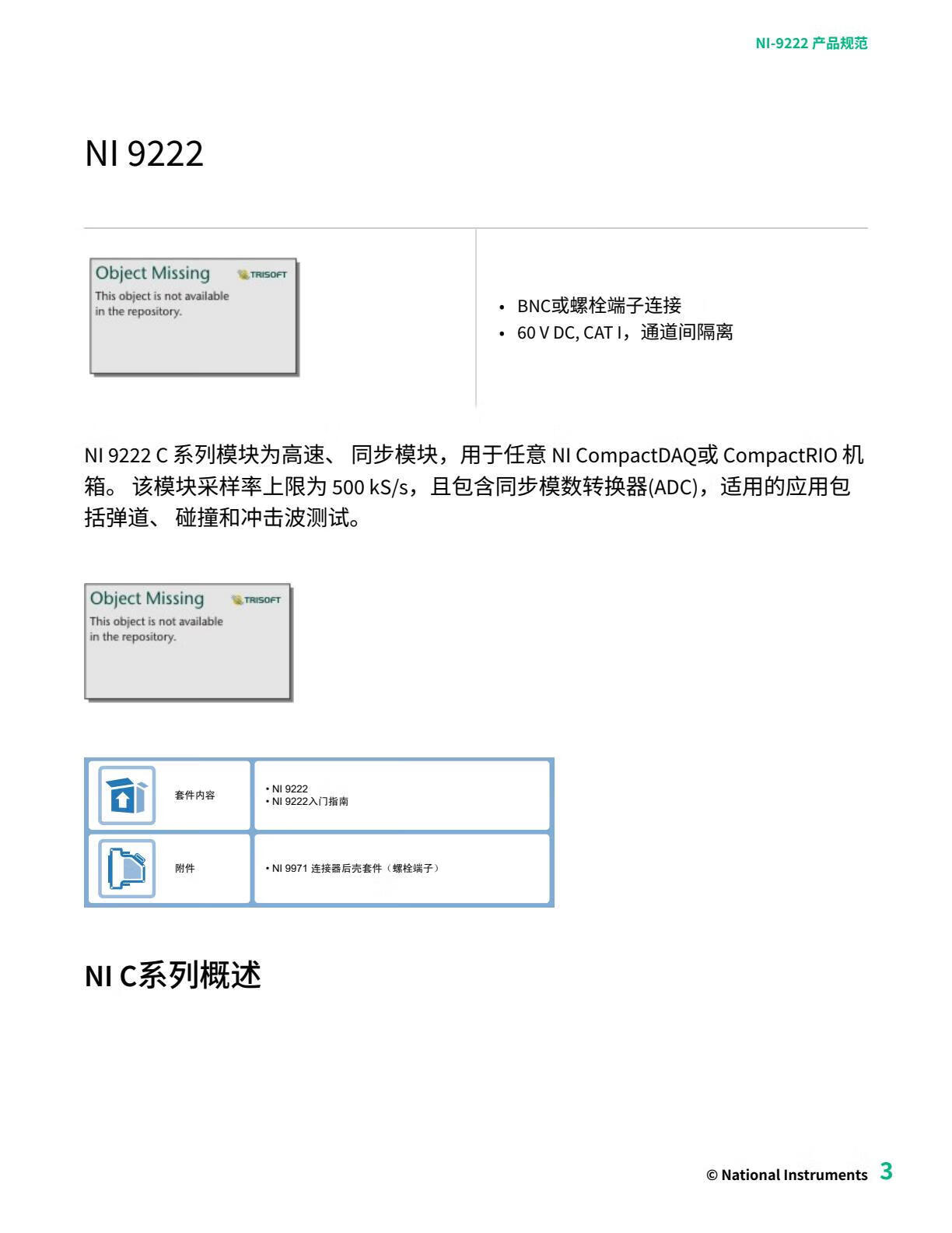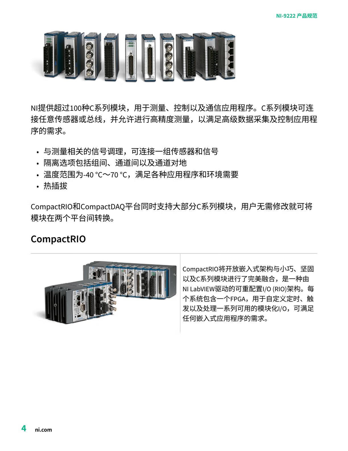 NI 9222+/-10 V16-bit 500 kS/s 4-channel SS AI C Series module (781