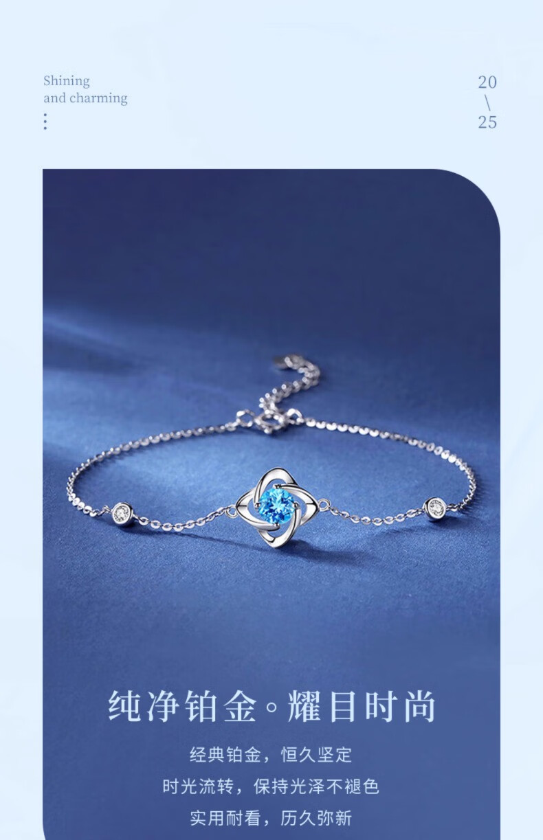 China Gold (CHINA GOLD) PT950 platinum bracelet for women, platinum small lucky four-leaf clover bracelet, Valentine's Day birthday gift for girlfriend and wife, platinum small lucky four-leaf clover bracelet, brand gift box