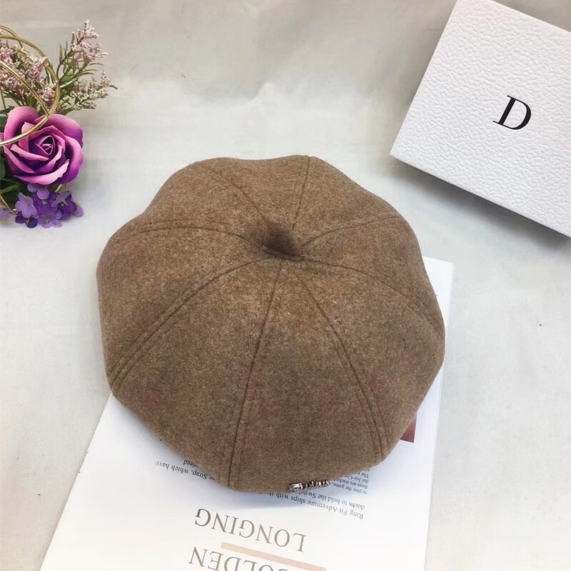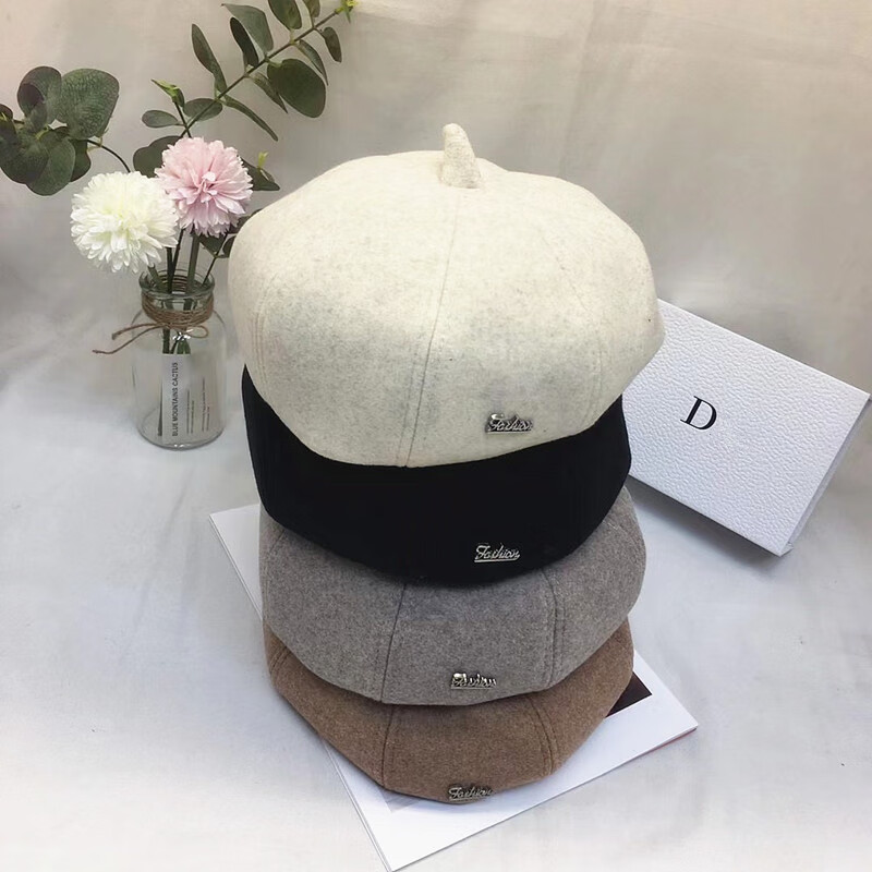 Wine Style Senior 2025 Autumn and Winter Hat Women's Korean Colored Wool Letter Beret Japanese Artistic Artist Hat Fashionable Beanie Hat Off-White M (56-58cm)