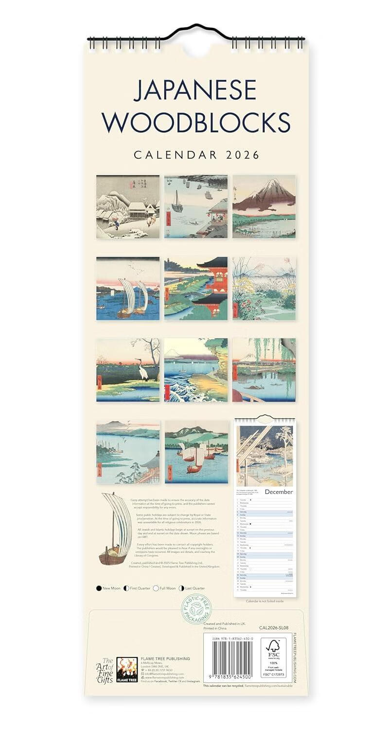 Pre-sale Japanese Woodblocks Slim Calendar 2026 (Art Calendar) Original Calendar