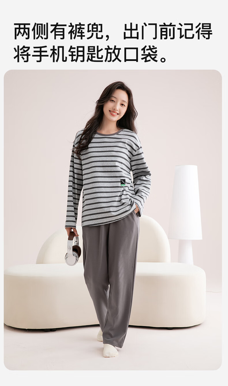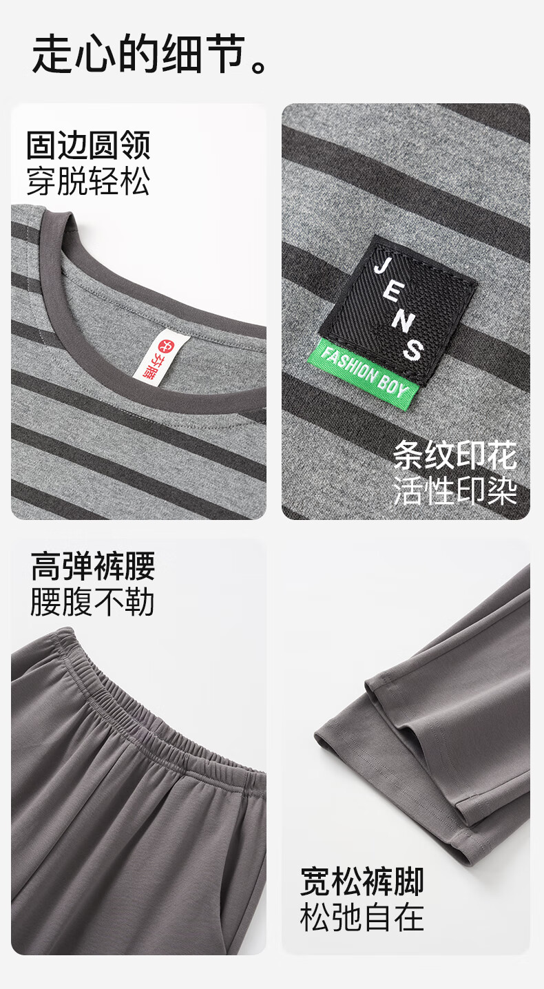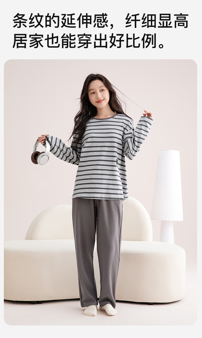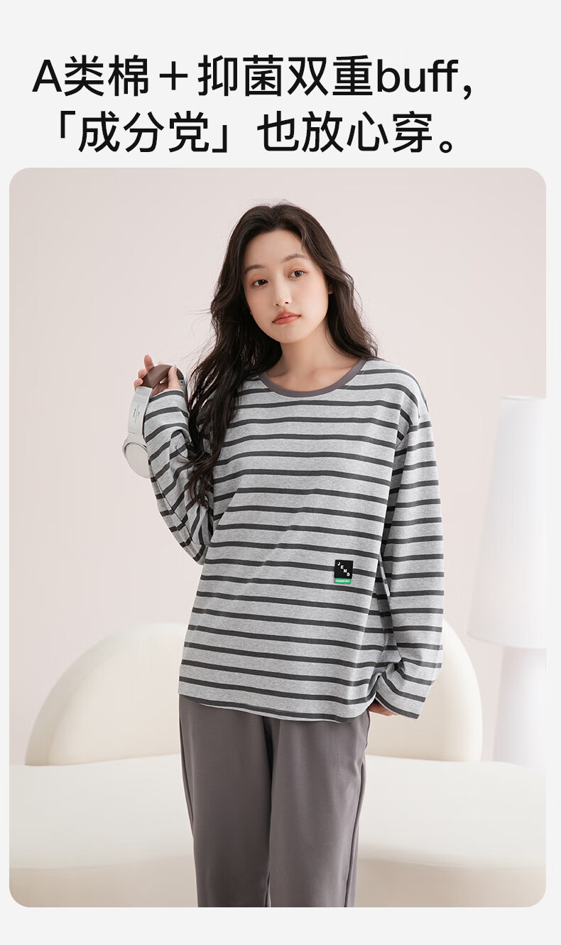 Fenton Pajamas Couple Class A Pure Cotton 2025 Season New Antibacterial Skin Friendly Round Neck Long Sleeve Pajamas Casual Home Wear Set Dark Gray - Men's L
