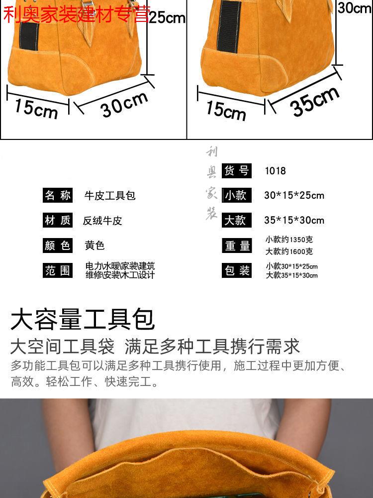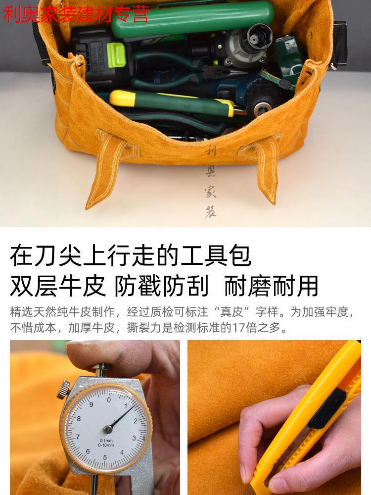 Yichen customized electrician's tool bag for men's construction site cowhide carpentry multi-functional genuine leather wear-resistant repair tool bag single extra large zipper bag