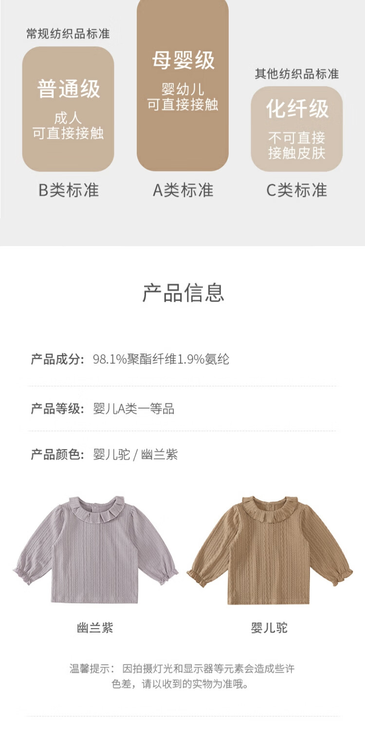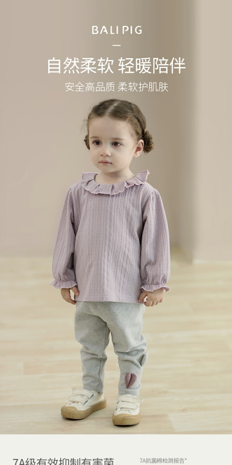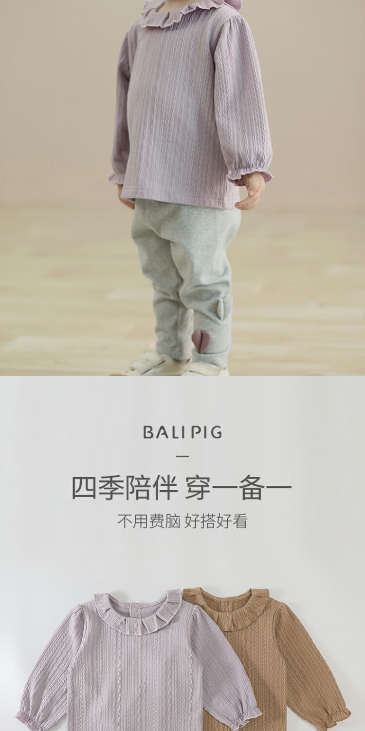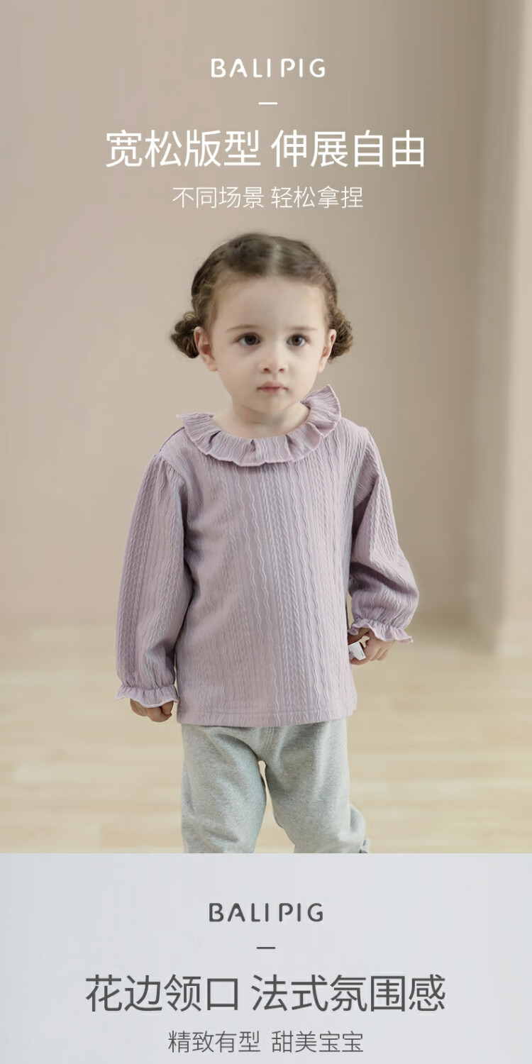 Bali piggy baby girl T-shirt autumn long-sleeved clothes children's autumn clothing sweet and cute lace doll shirt spring and autumn girls' tops Orchid Purple 90