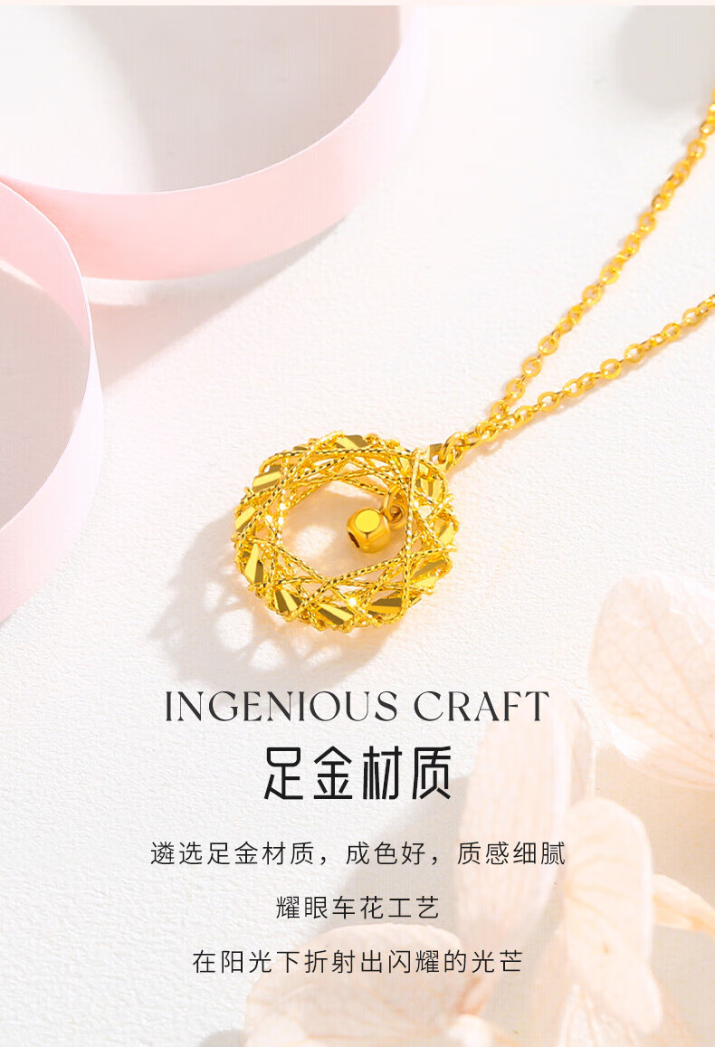 Chow Tai Fook Valentine's Day Gift Gold Necklace Women's Pure Gold Möbius Pendant Dreamweaver Necklace Dreamweaver
