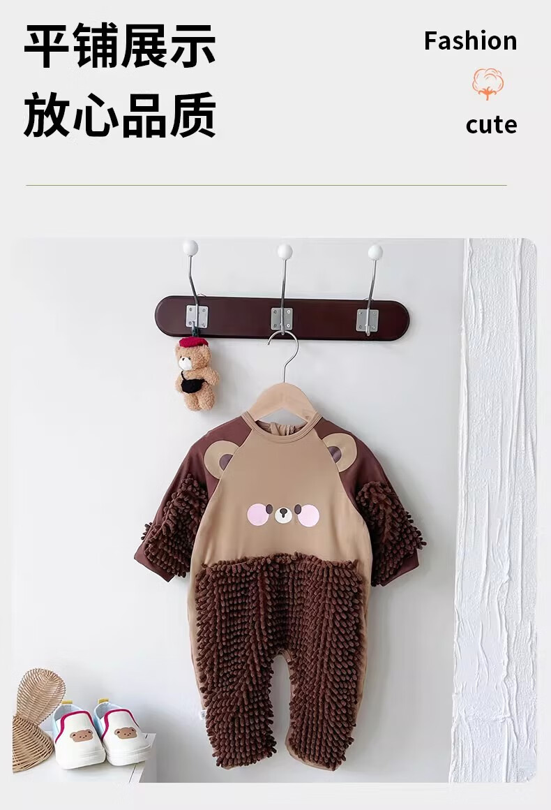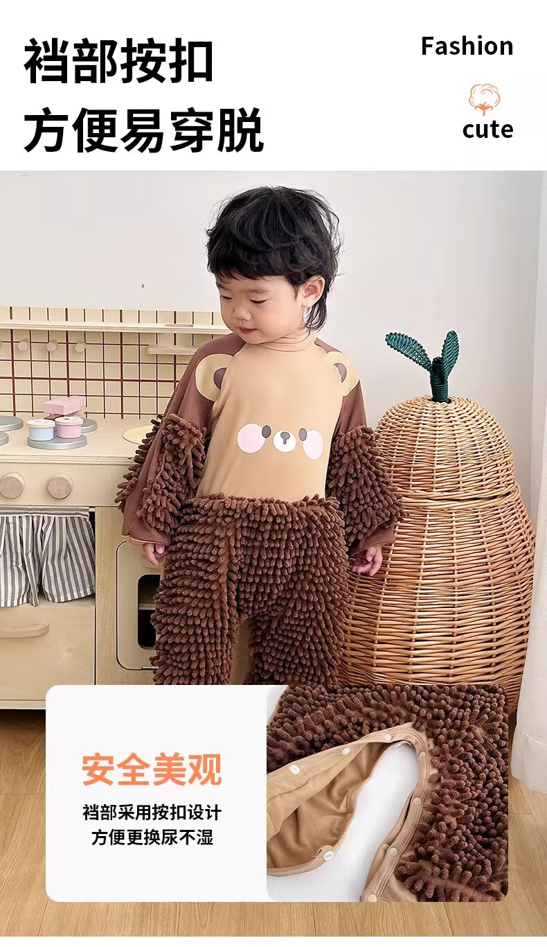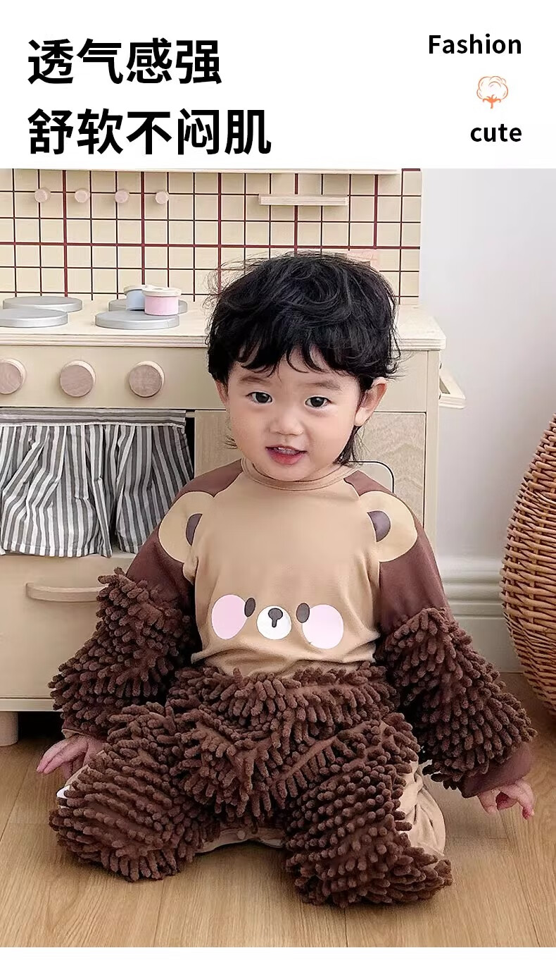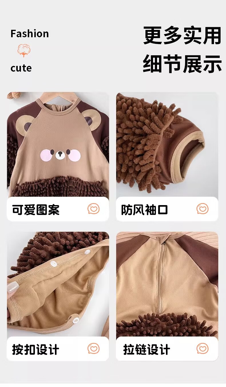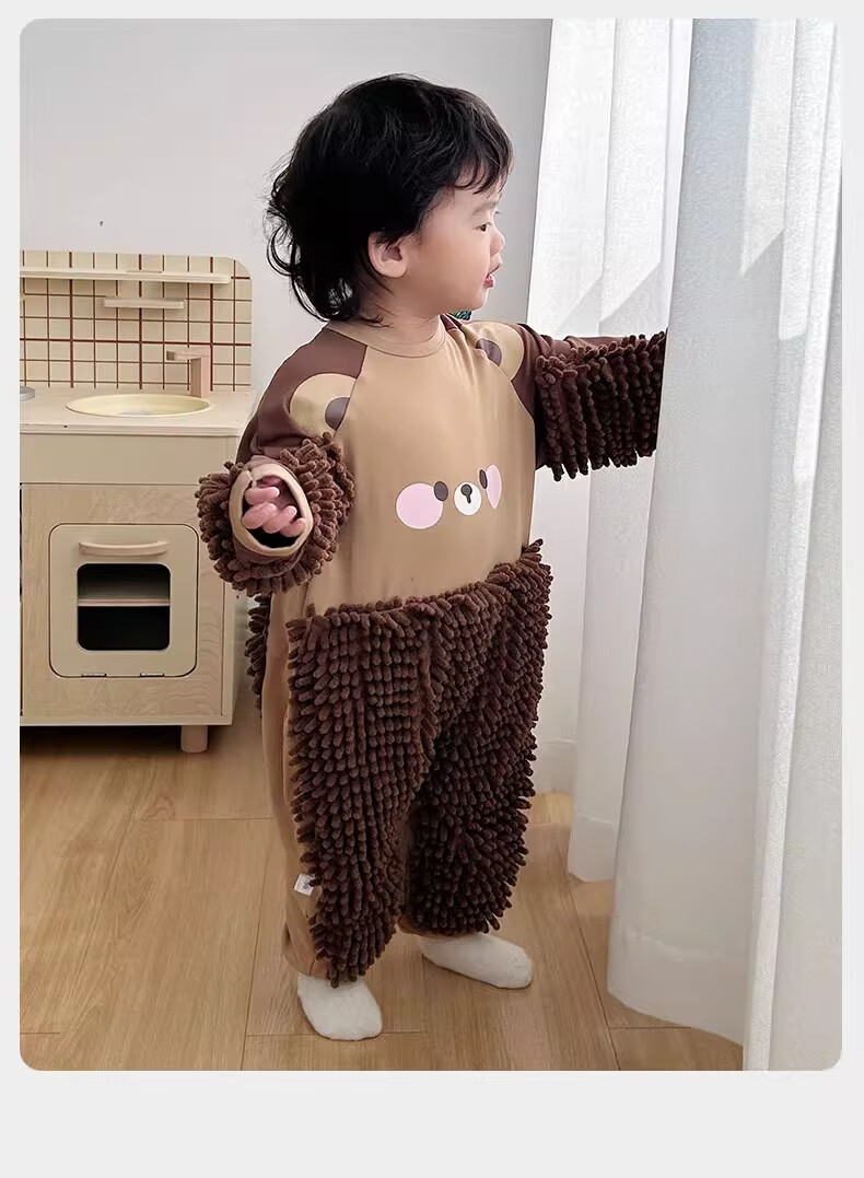 纪奈落爬爬服爬行服婴儿秋冬宝宝户外防脏擦地罩衣拖地春秋拖布连体衣服 拖把熊长袖90码【适合身高73-78cm】 均码