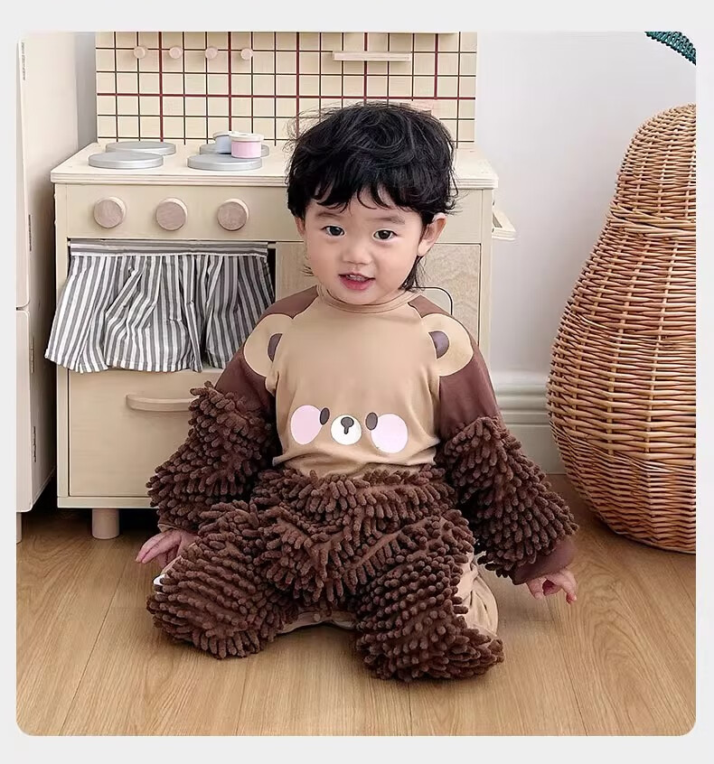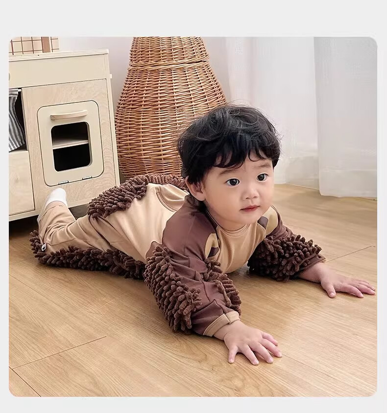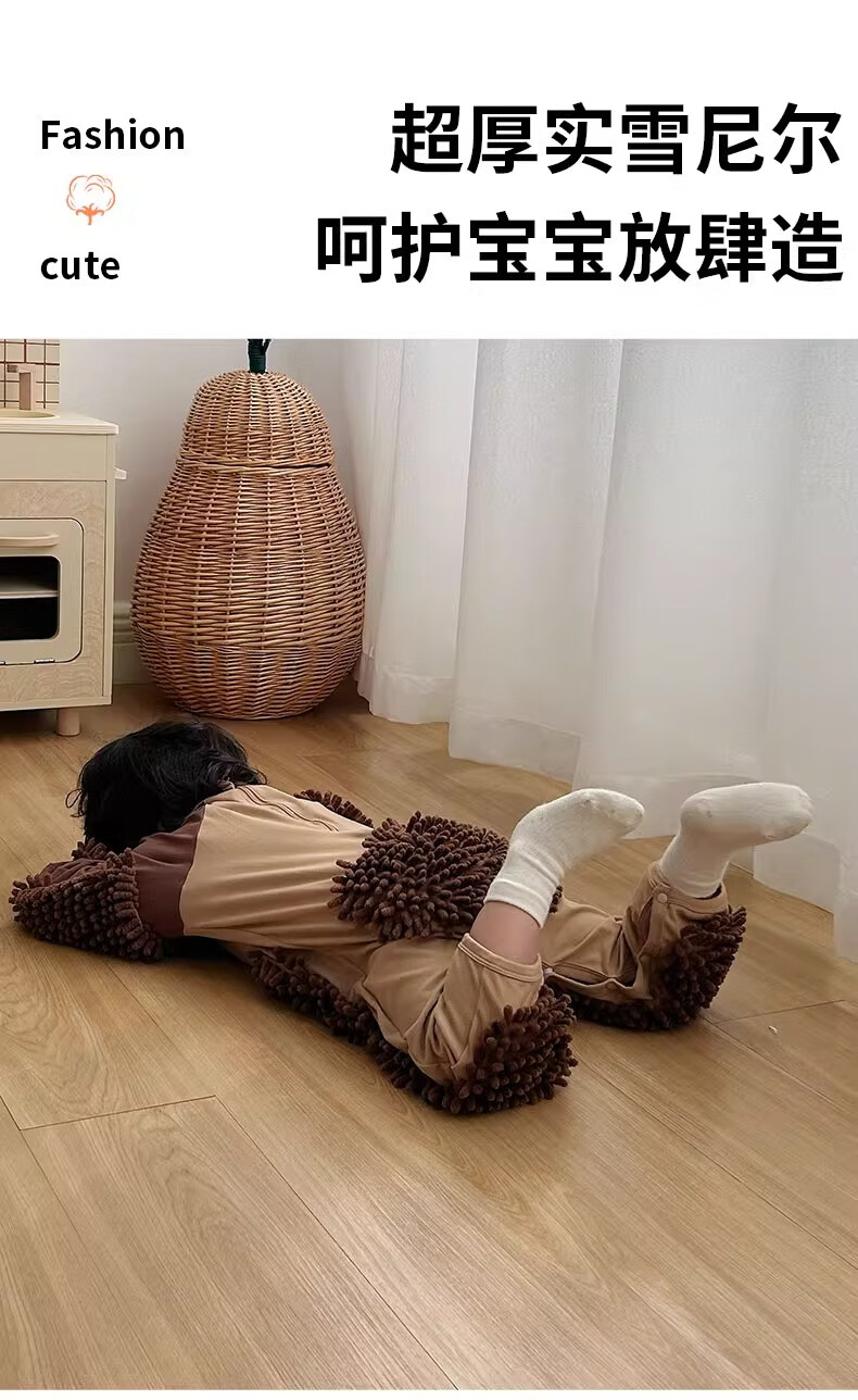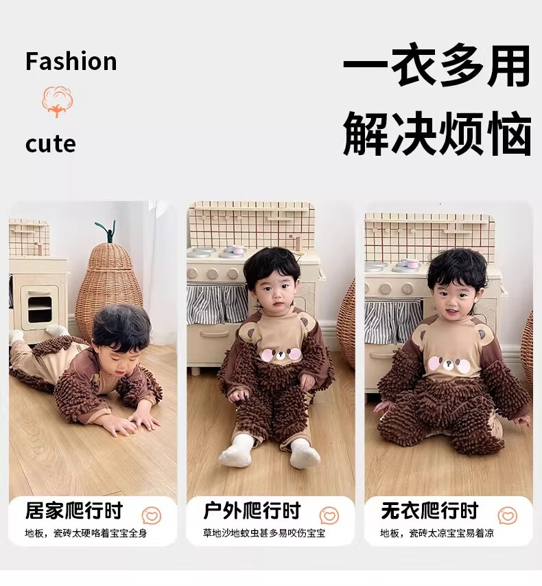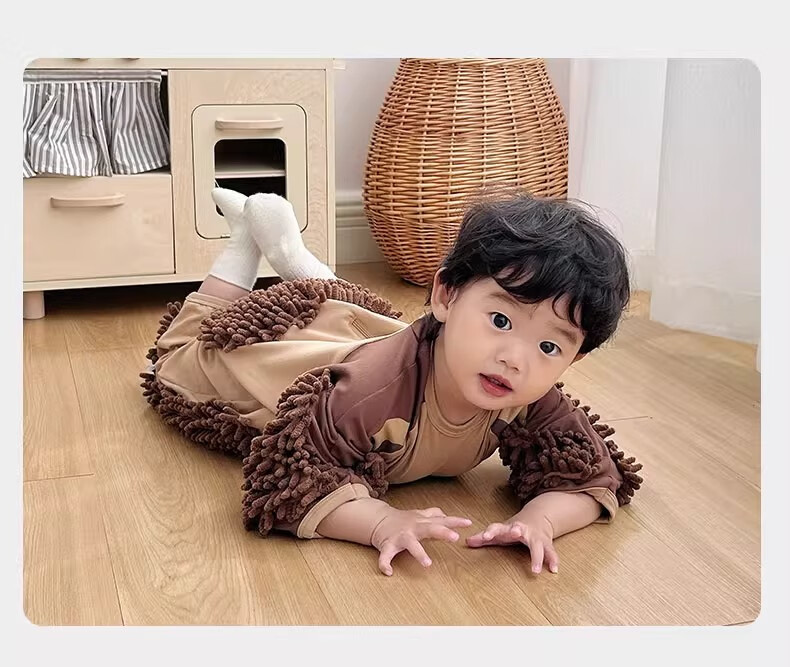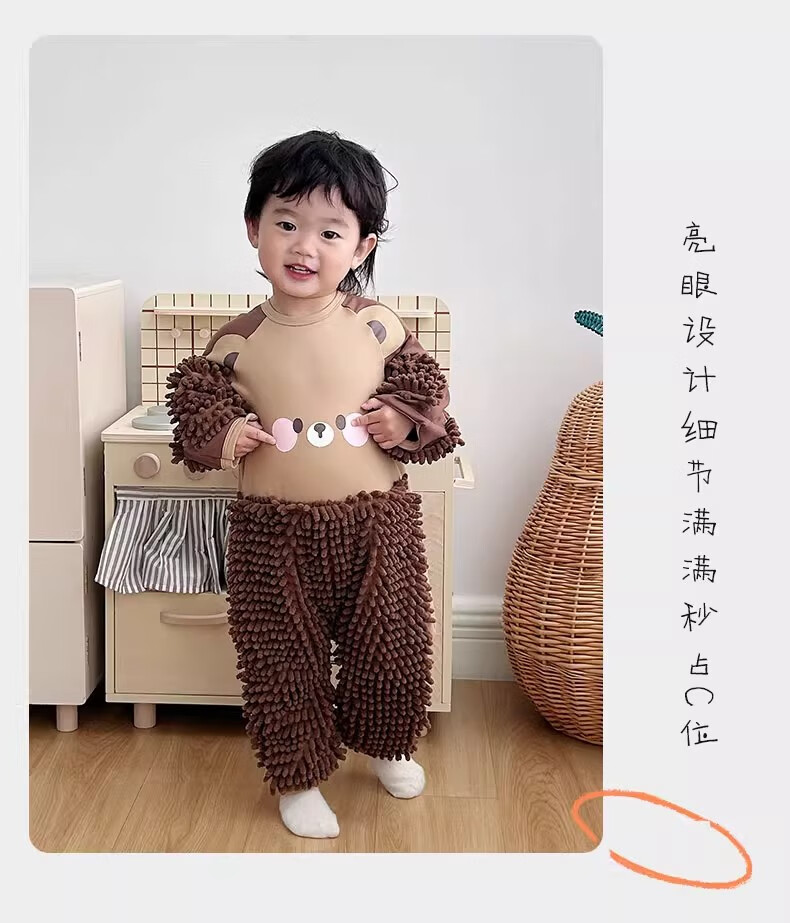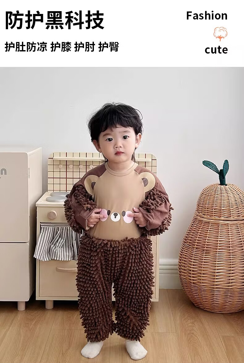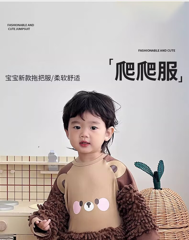 纪奈落爬爬服爬行服婴儿秋冬宝宝户外防脏擦地罩衣拖地春秋拖布连体衣服 拖把熊长袖90码【适合身高73-78cm】 均码