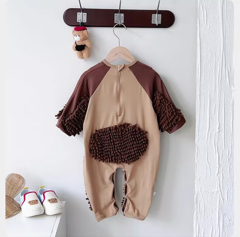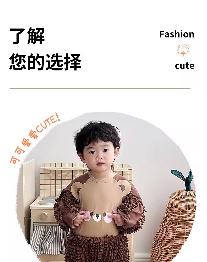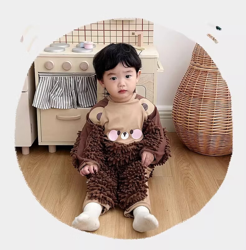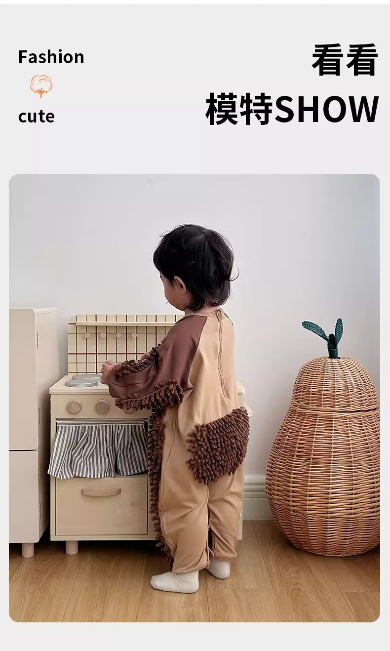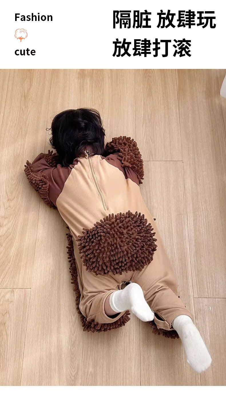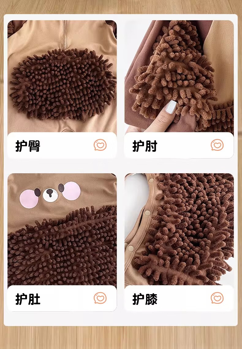 纪奈落爬爬服爬行服婴儿秋冬宝宝户外防脏擦地罩衣拖地春秋拖布连体衣服 拖把熊长袖90码【适合身高73-78cm】 均码