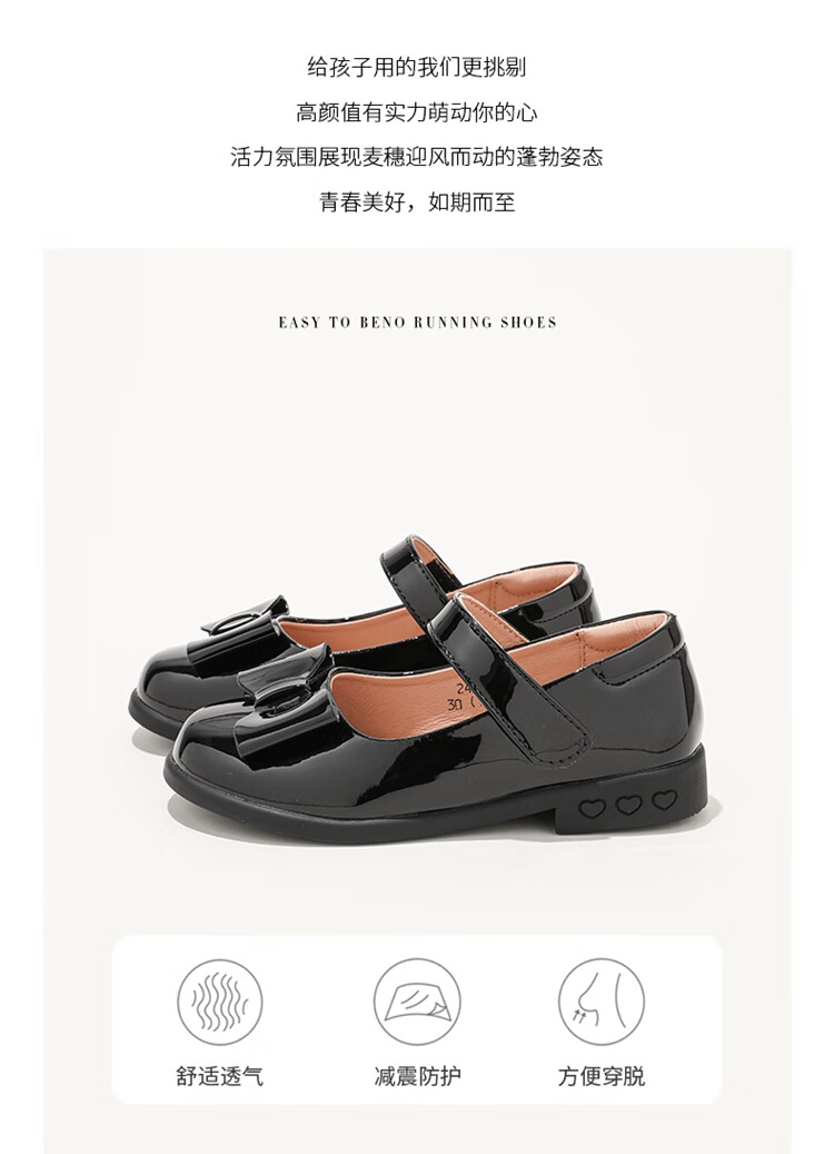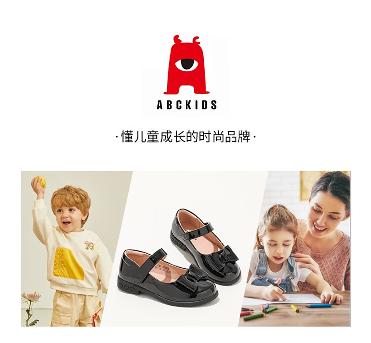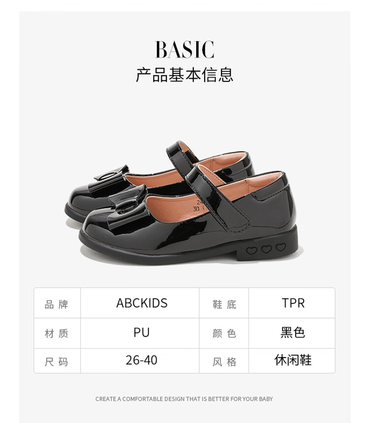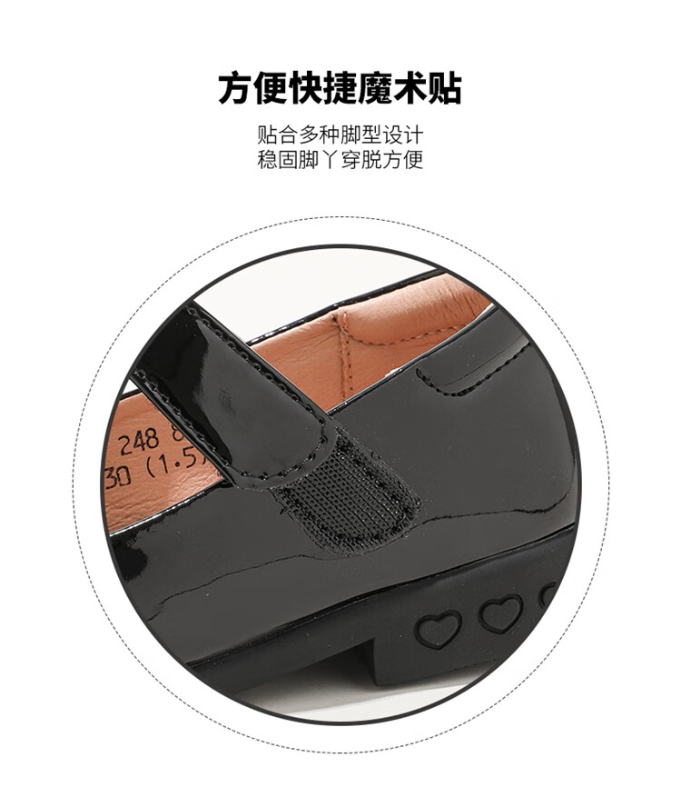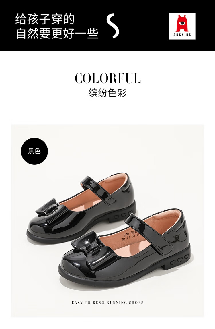 ABC KIDS children's shoes 2025 autumn new Velcro Mary Jane sweet style girls shallow heel small leather shoes black 26