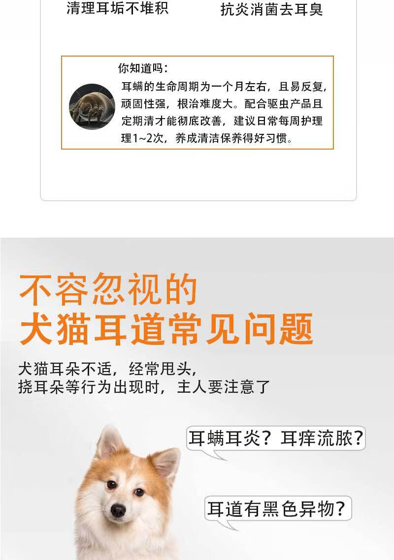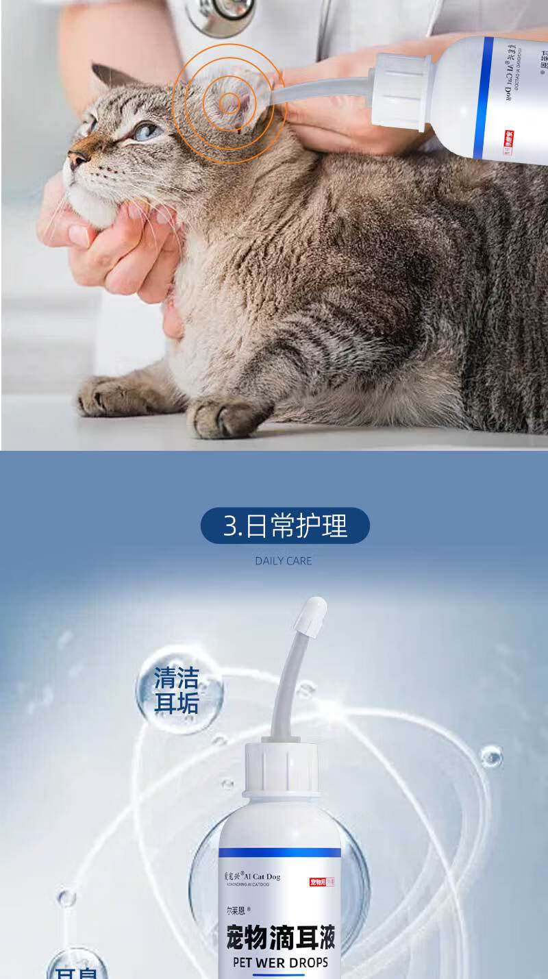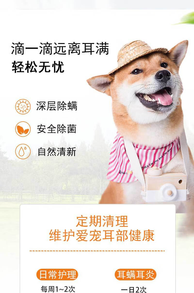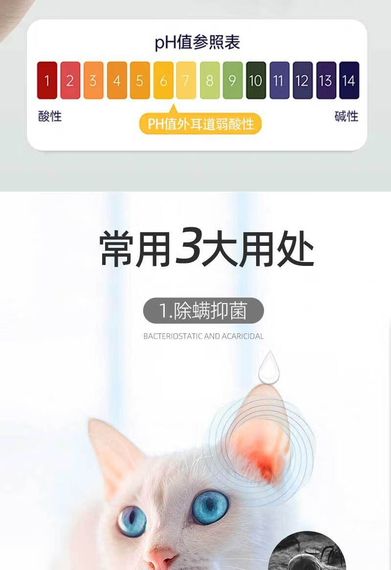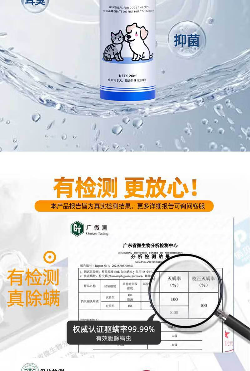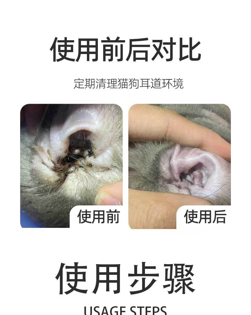 General pet ear cleaner for cats and dogs, cleaning earwax, deodorizing and removing mites, ear cleaning, antibacterial and removing mites, transparent box of 5