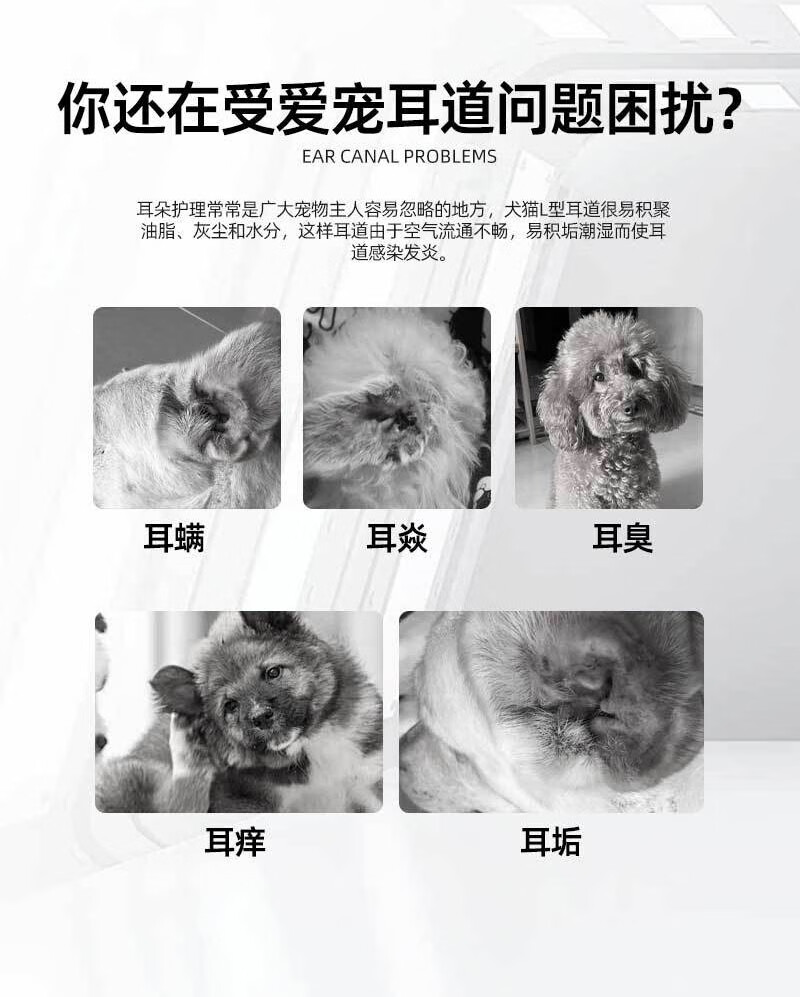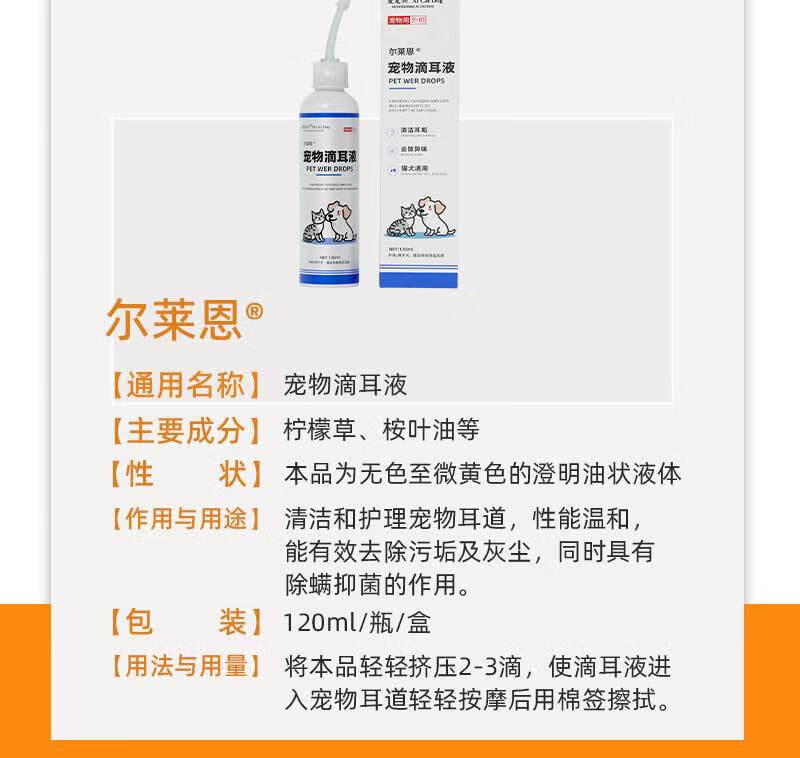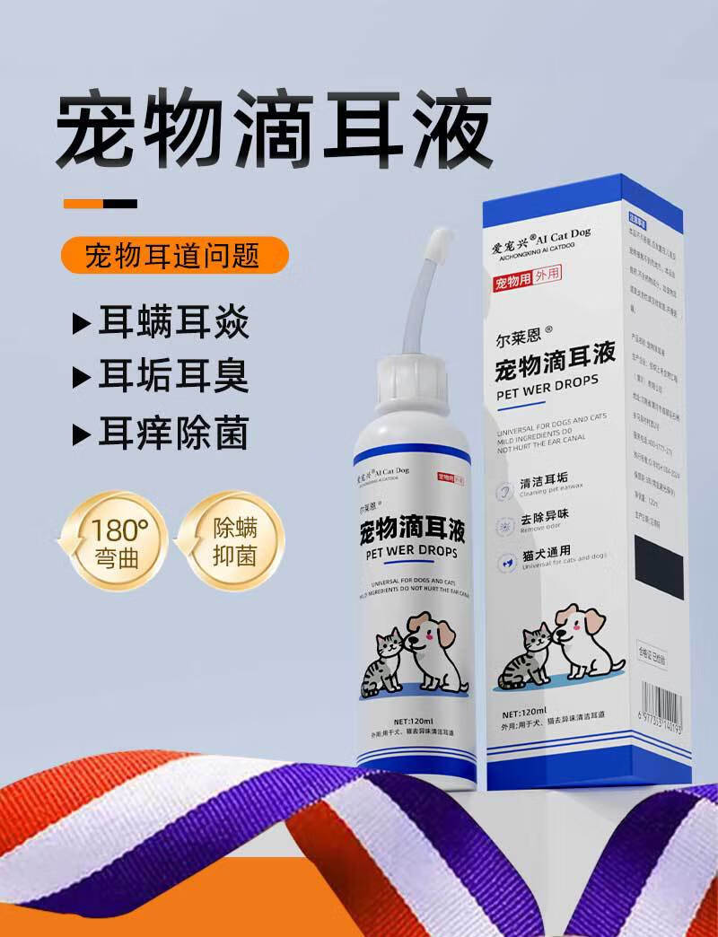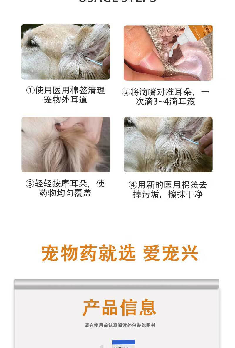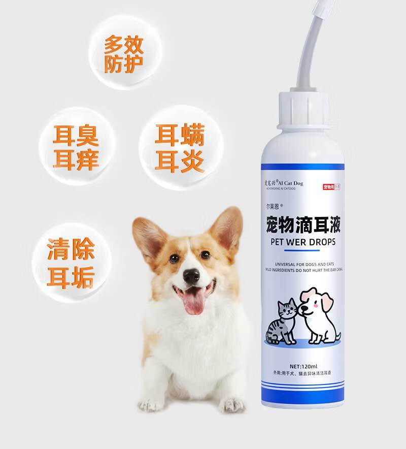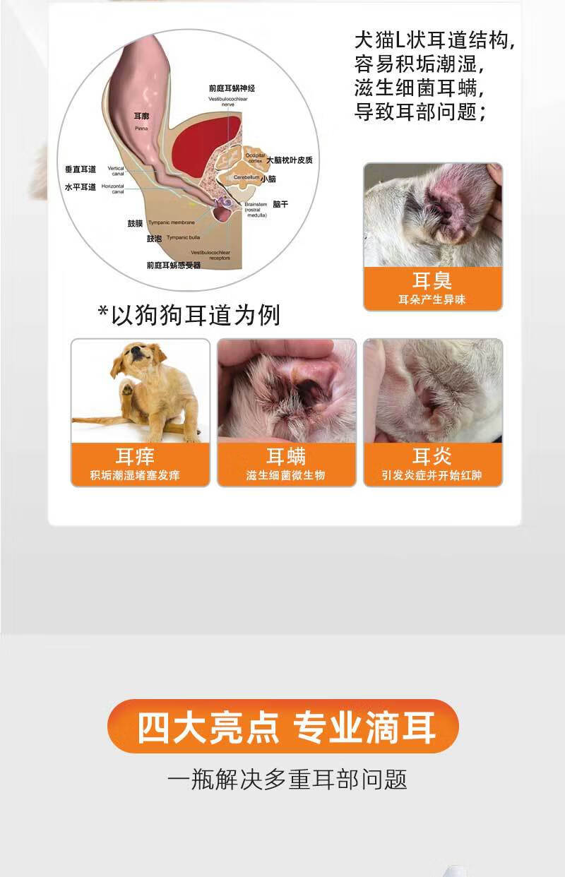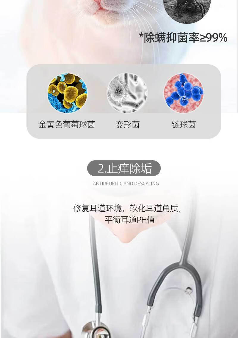 General pet ear cleaner for cats and dogs, cleaning earwax, deodorizing and removing mites, ear cleaning, antibacterial and removing mites, transparent box of 5