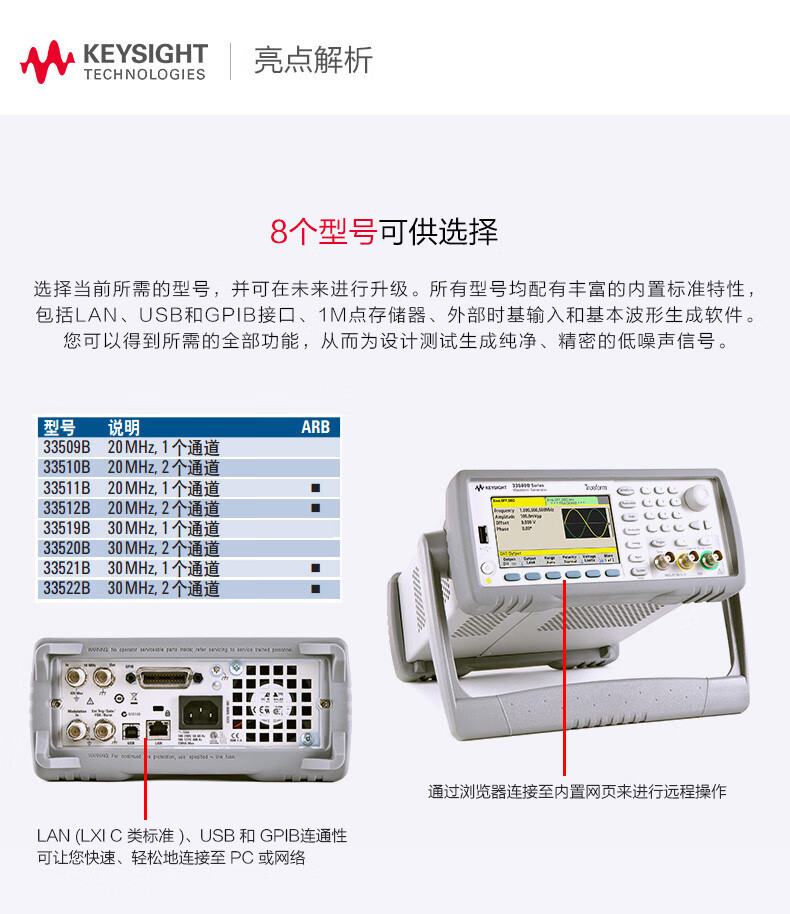 Keysight 33522B function arbitrary waveform generator 33509/33510B/11/12/19/20/21/22 33522B (30MHz dual channel including arbitrary waveform and 4 standards