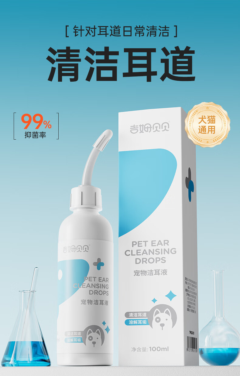 Pet Ear Drops Cat Ear Cleansing Liquid Dog Ear Mite Antibacterial Deodorizing Itchy Ear Odor Ear Cleansing Liquid 100ml Transparent Pet Ear Drops 100ml*1 Bottle
