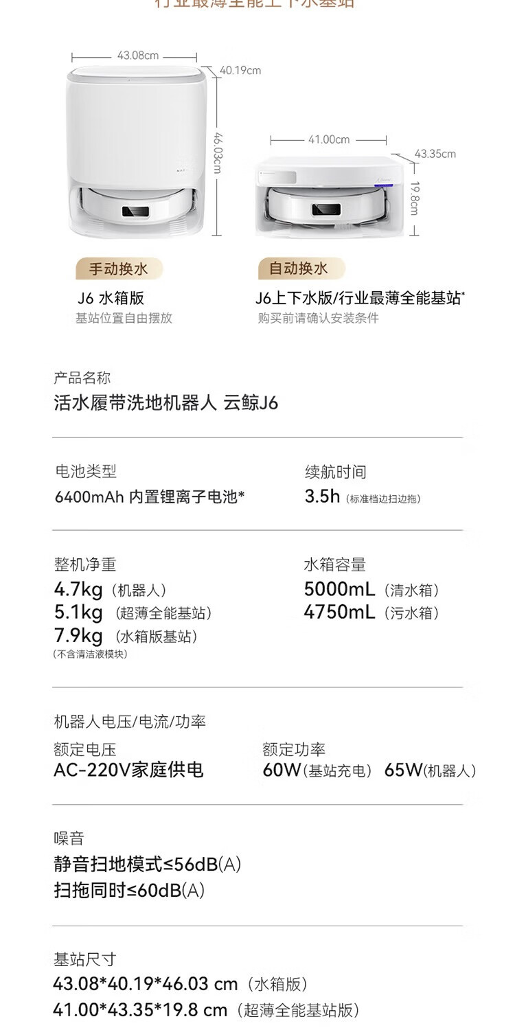 Cloud Whale Flagship Upgrade Sweeping Robot J6 Living Water Crawler Floor Washing Machine Sweeping and Mopping Integrated Automatic Cleaning Fully Automatic Home Intelligent Washing, Mopping, Vacuuming and Mopping Machine New J6 Water Tank Version