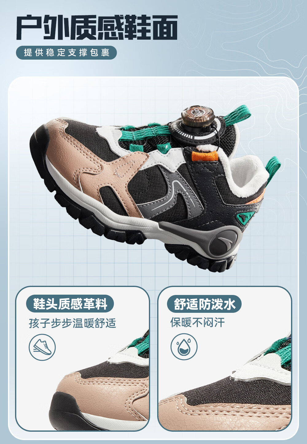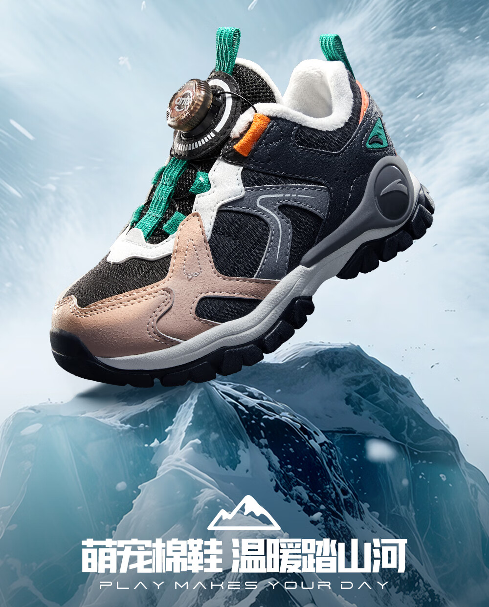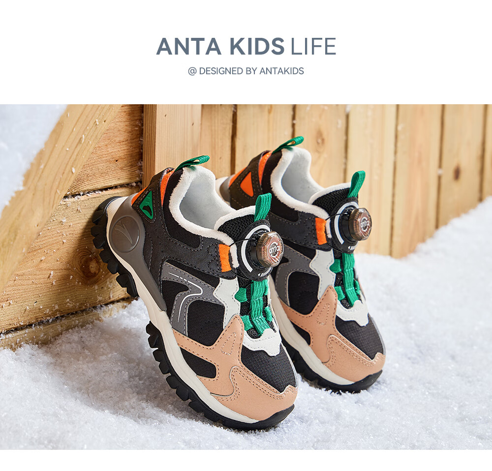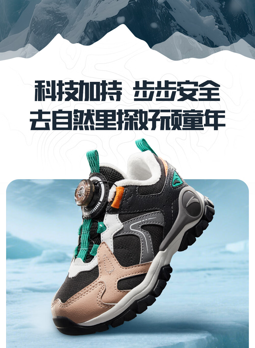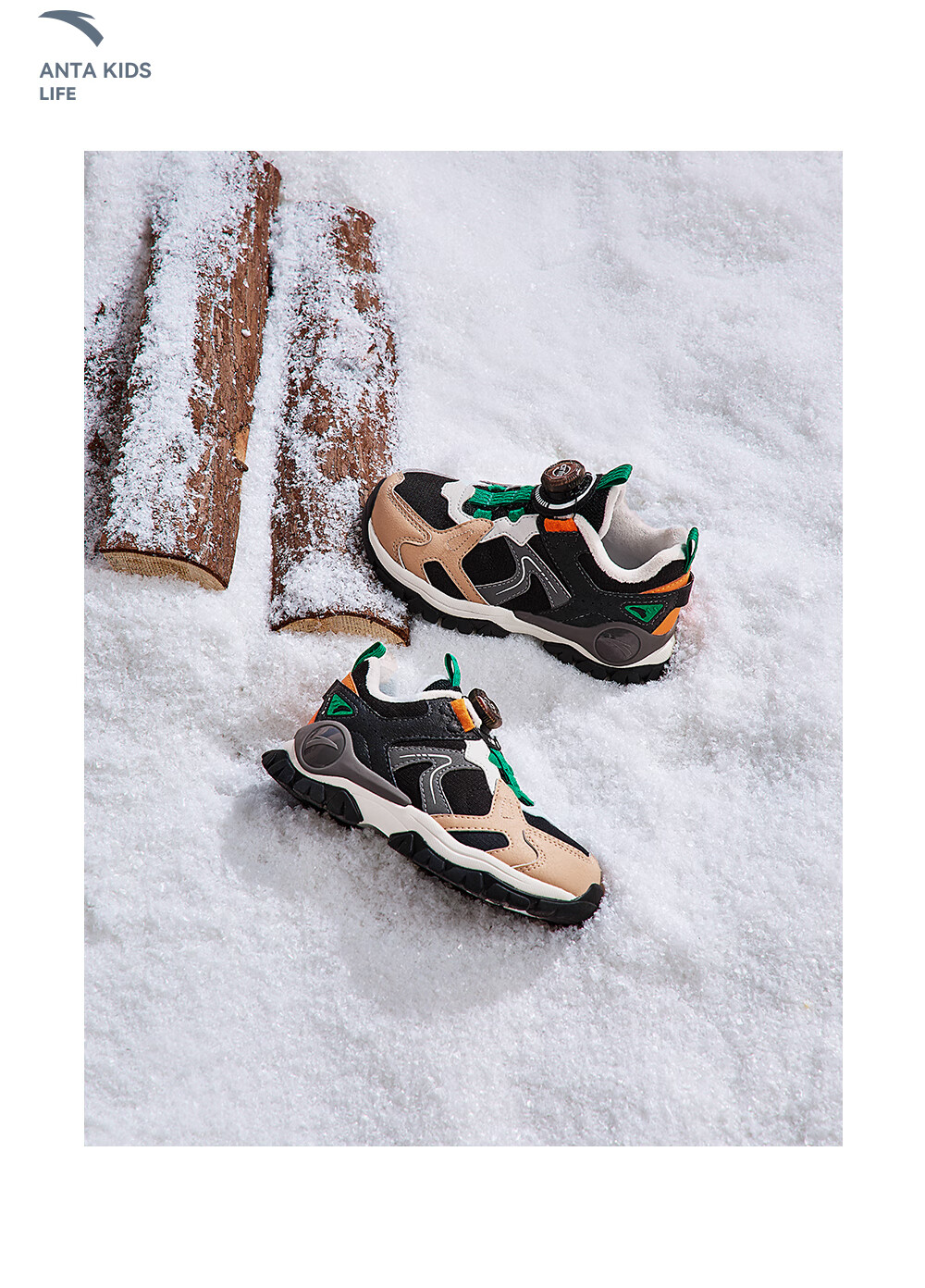 ANTA children's cotton shoes for boys and girls Cool Runner autumn and winter new velvet knob buckle anti-slip outdoor high-top snow boots store manager recommended black-2 29 shoe inner length 18cm