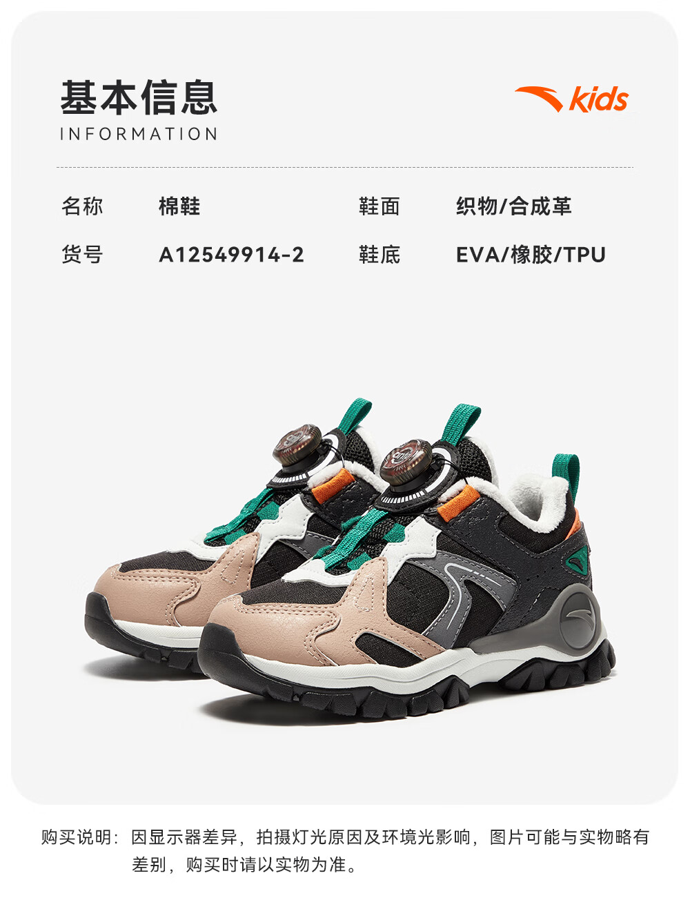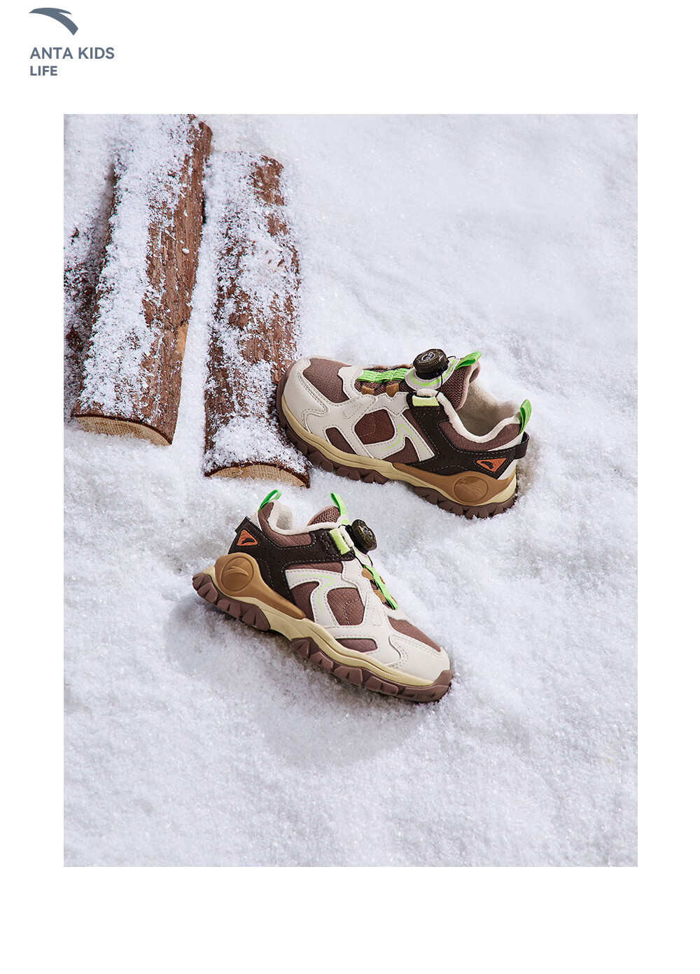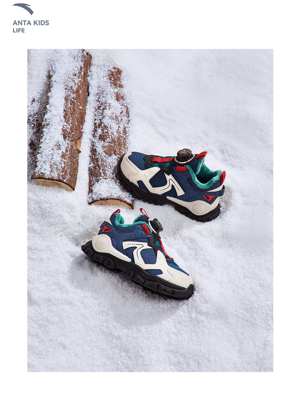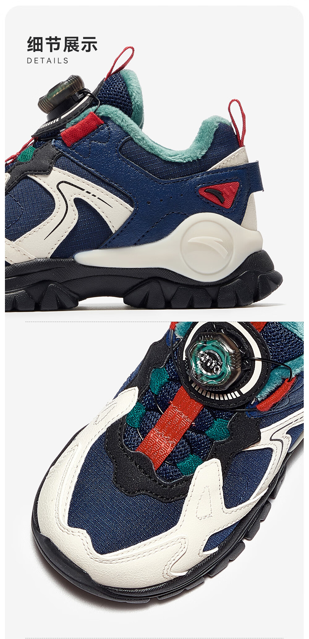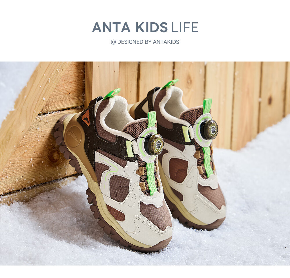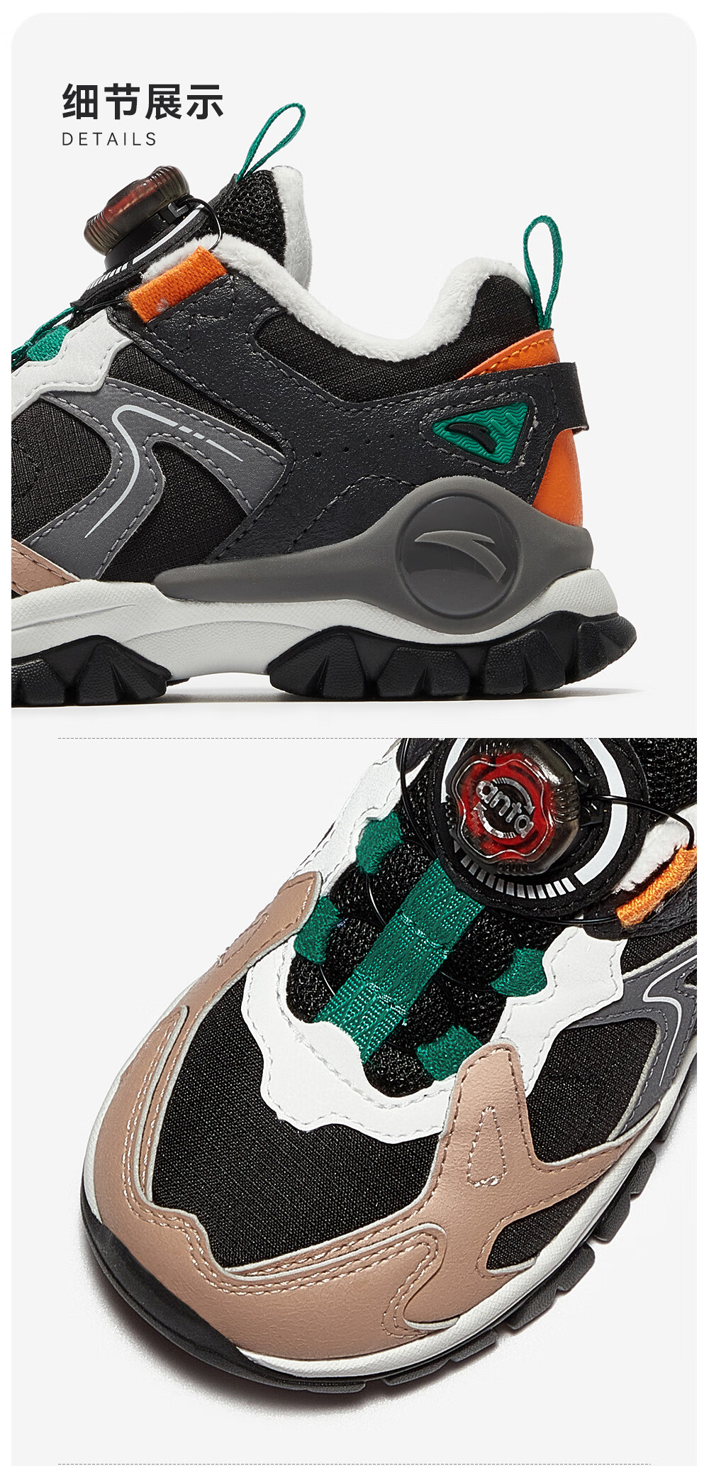 ANTA children's cotton shoes for boys and girls Cool Runner autumn and winter new velvet knob buckle anti-slip outdoor high-top snow boots store manager recommended black-2 29 shoe inner length 18cm