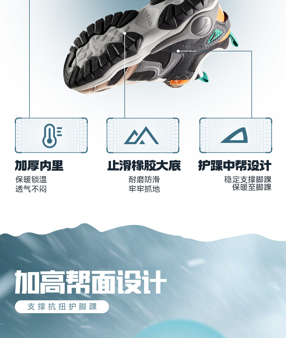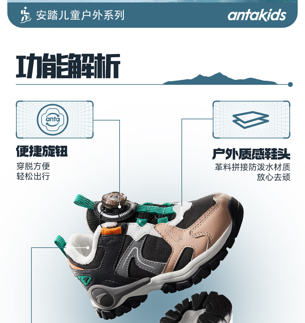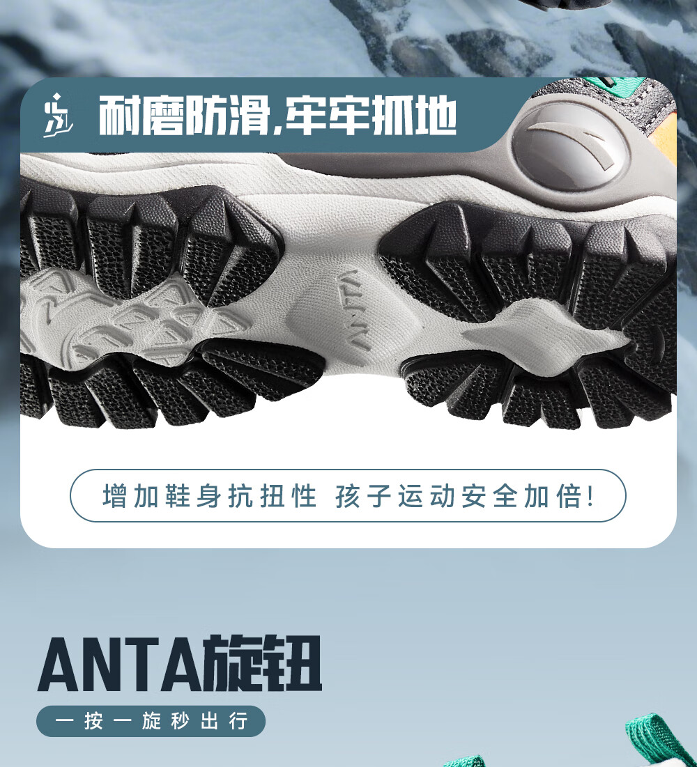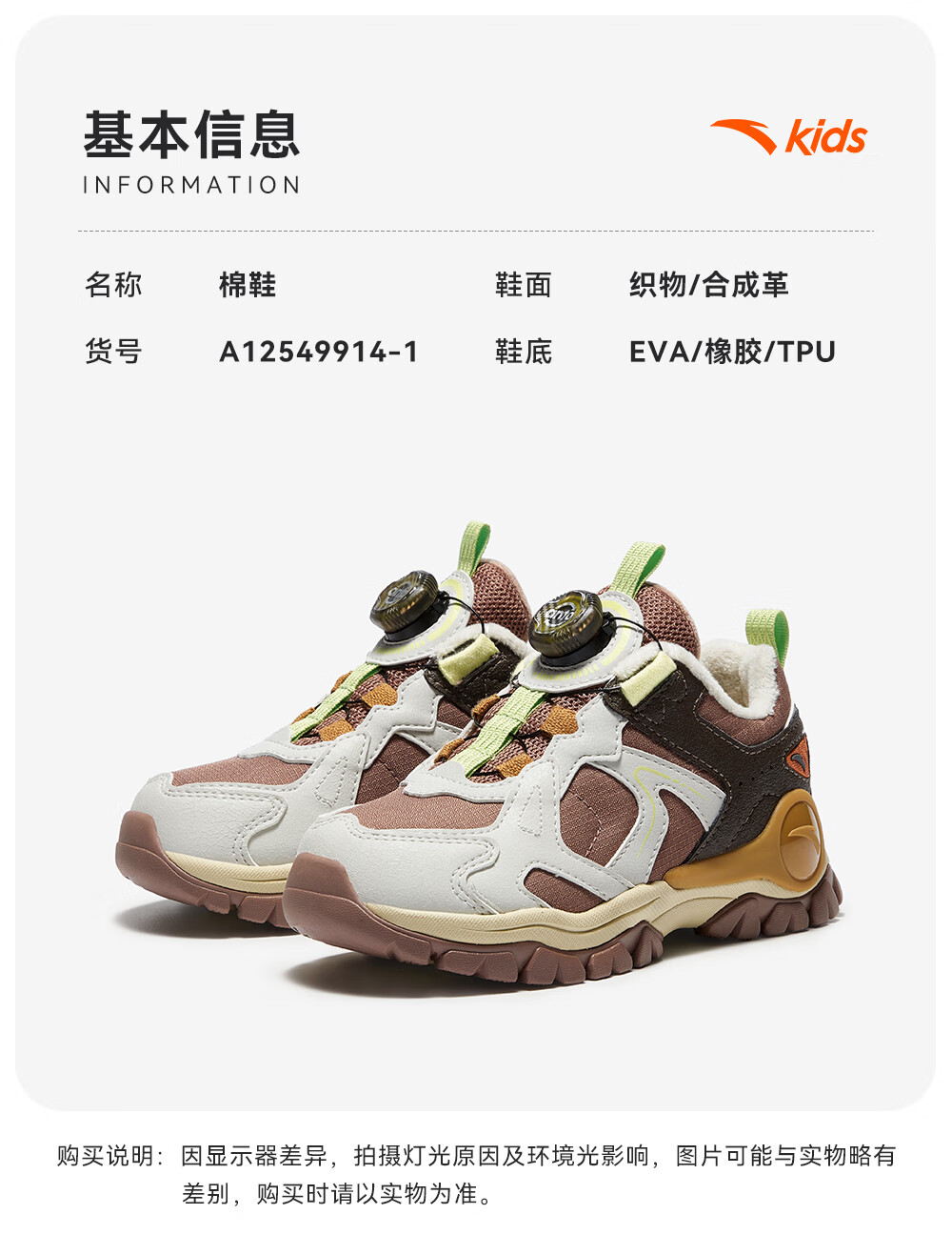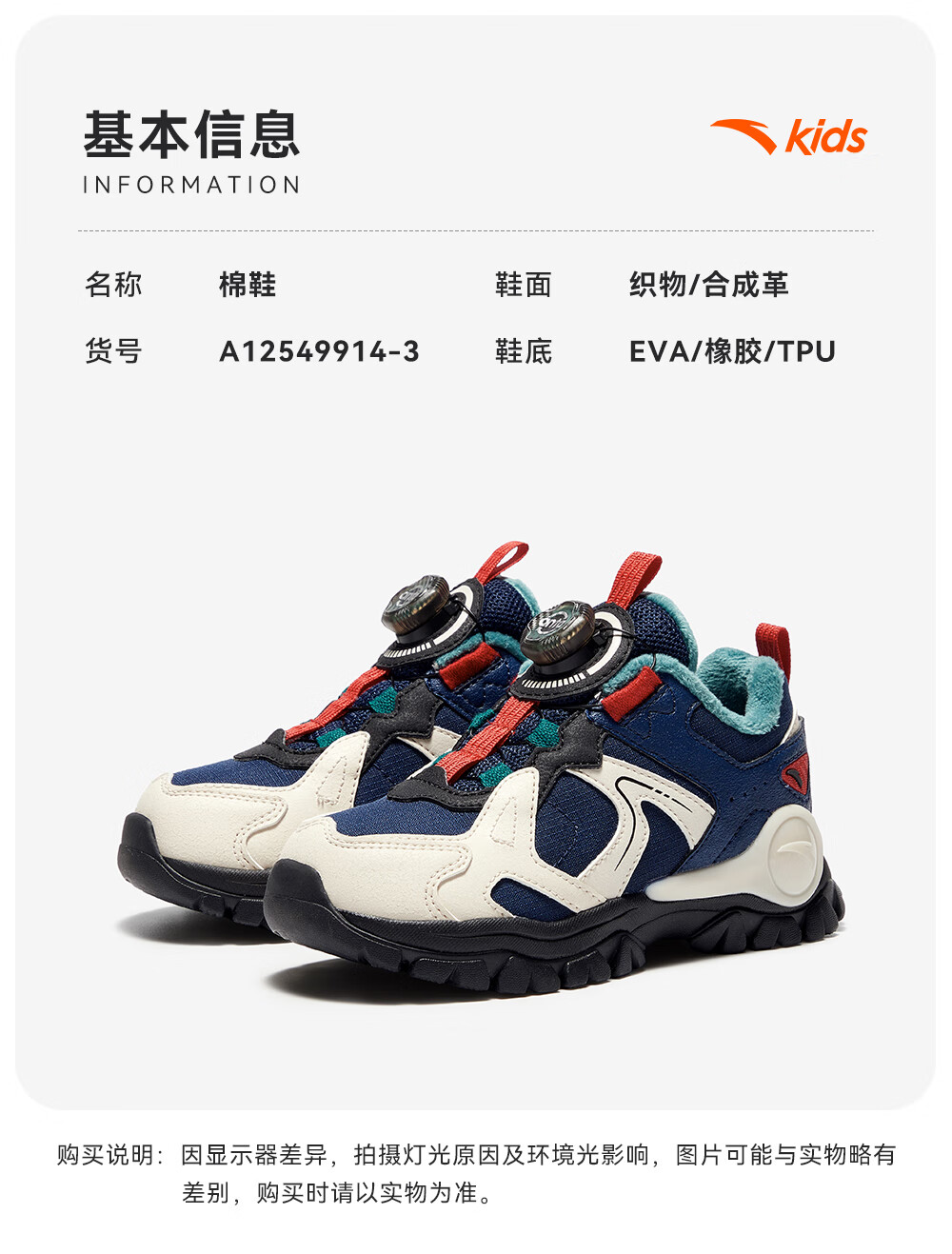 ANTA children's cotton shoes for boys and girls Cool Runner autumn and winter new velvet knob buckle anti-slip outdoor high-top snow boots store manager recommended black-2 29 shoe inner length 18cm