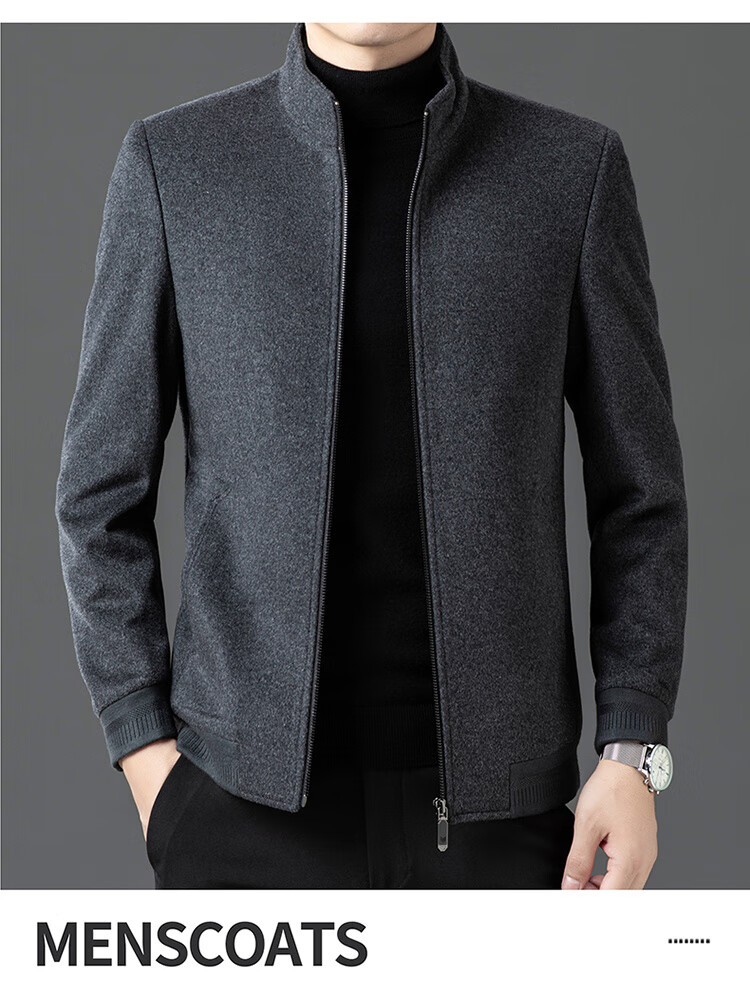 Pierre Cardin 100% pure wool jacket men's stand collar autumn and winter high-end business casual executive only dad woolen jacket 11597 gray stand collar style XL 180/96A