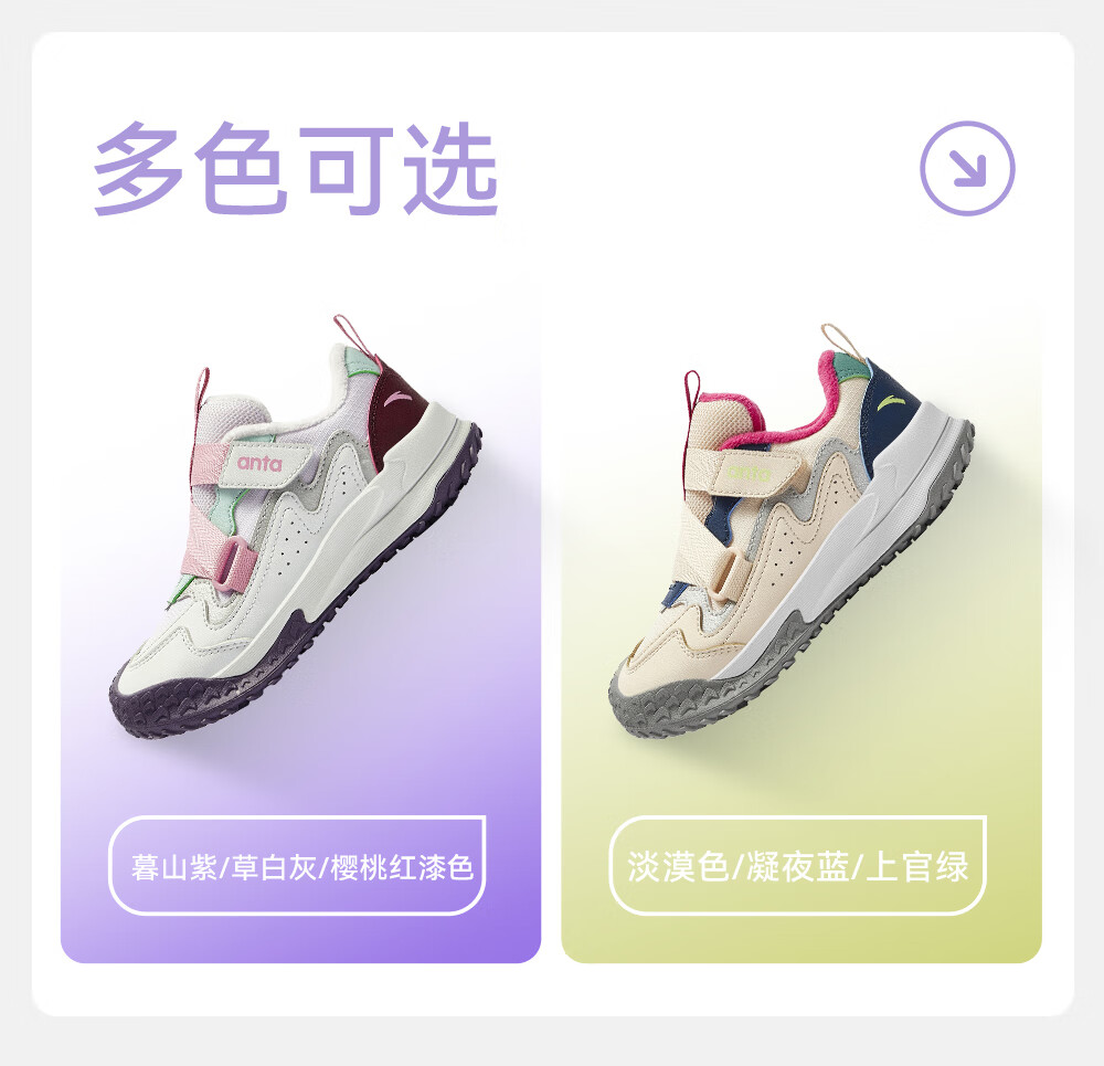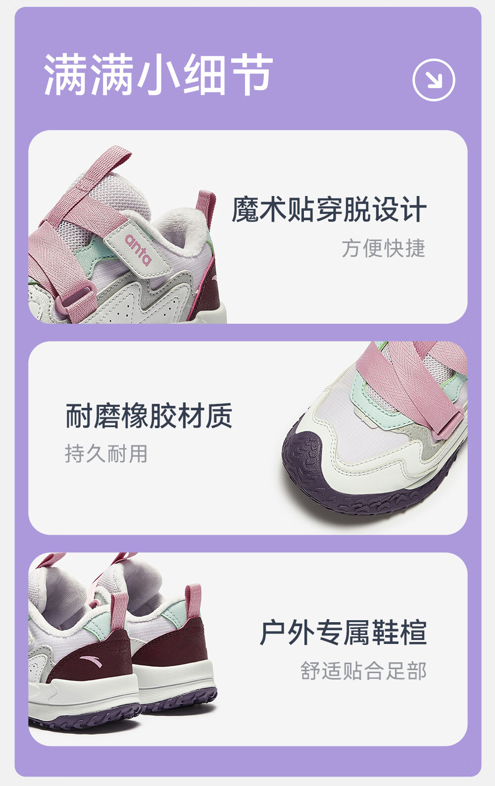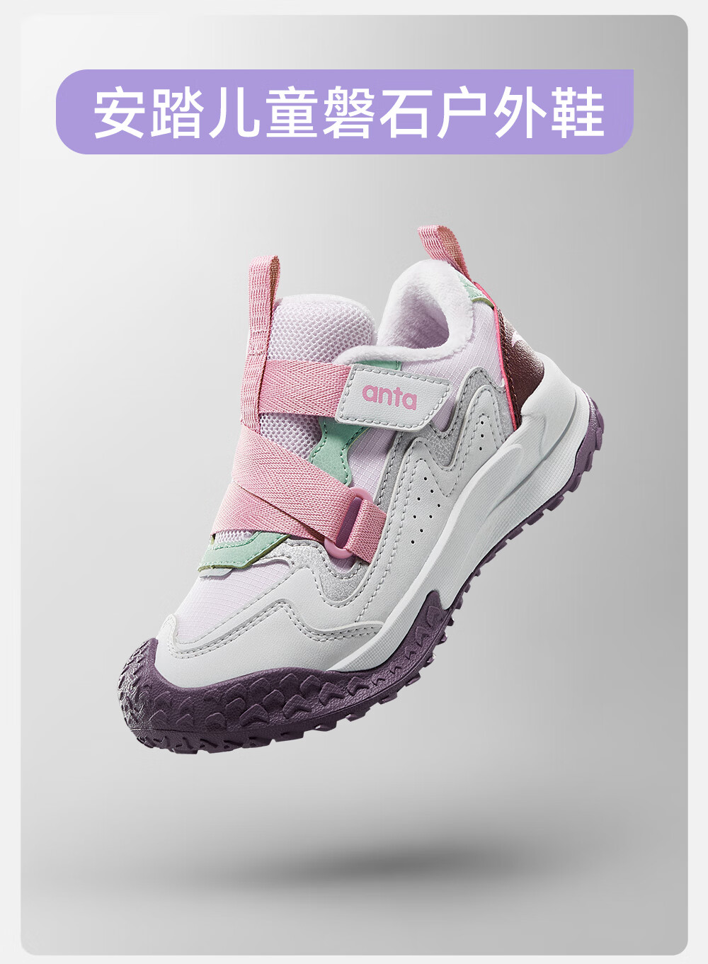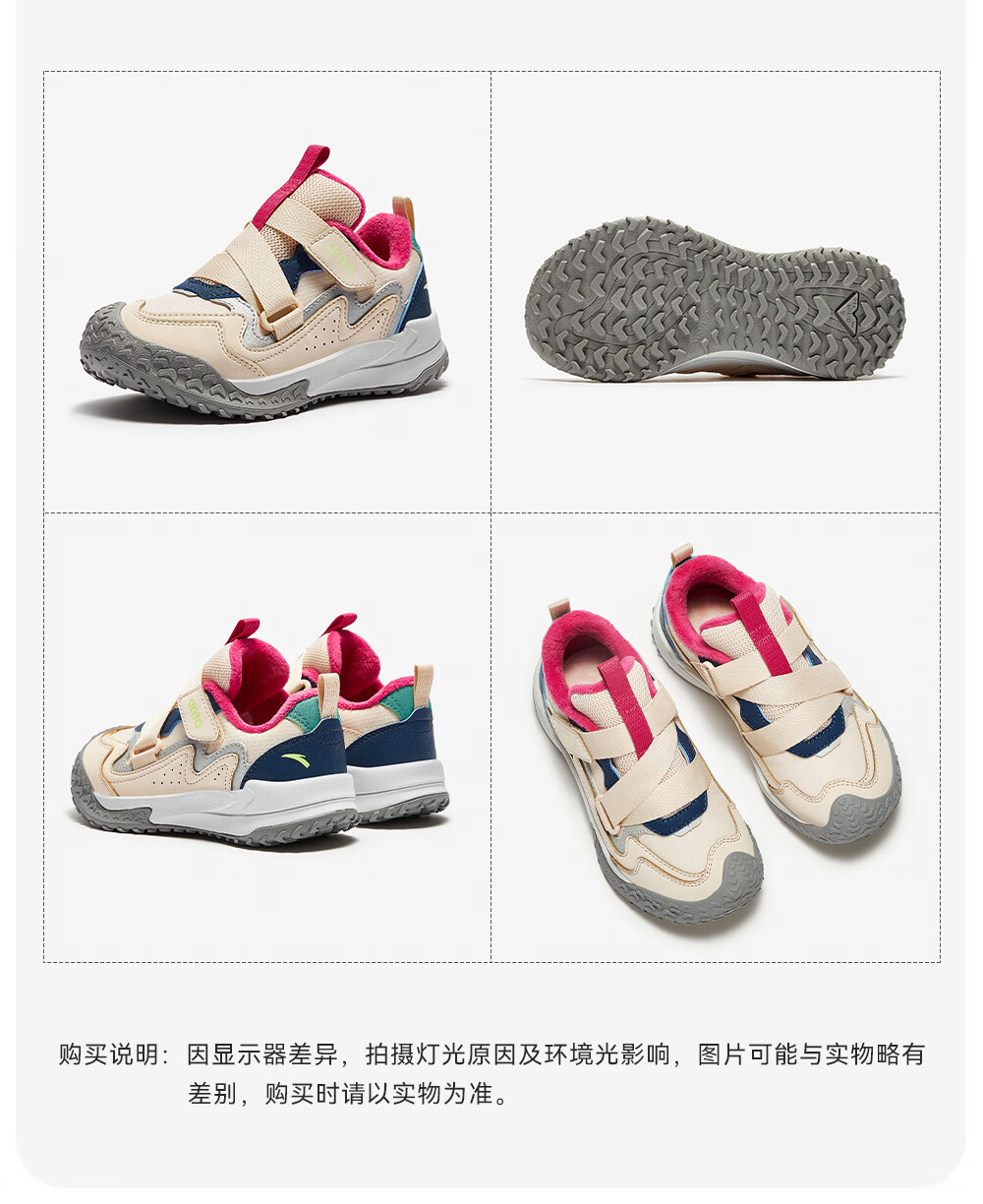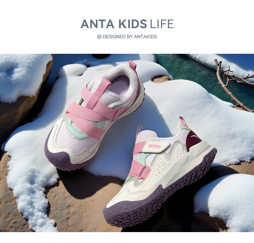 ANTA children's cotton shoes for girls Quye 25 autumn and winter new outdoor leather and velvet warm trendy color matching fashionable cotton shoes Mushan purple/grass white gray/cherry red paint color-1 30 shoe inner length 18.5cm