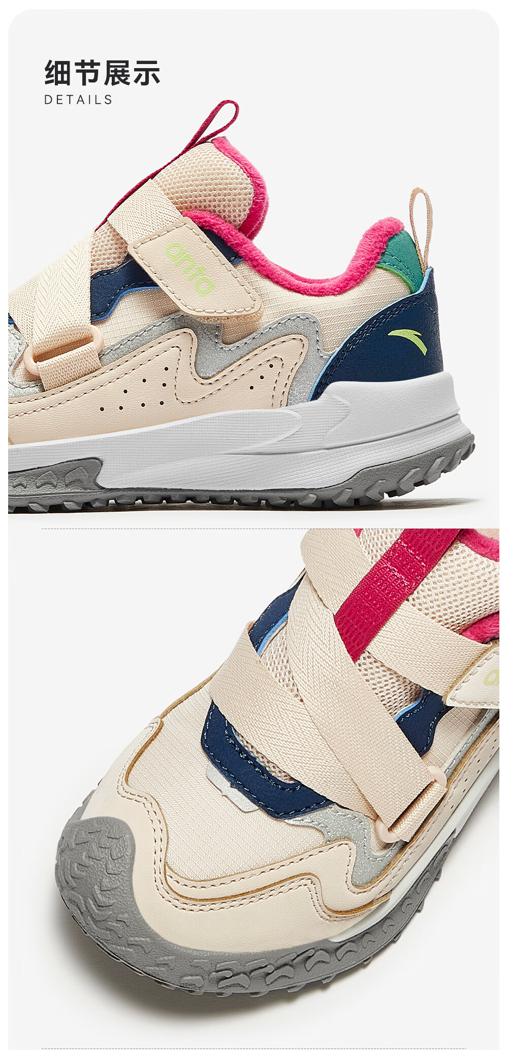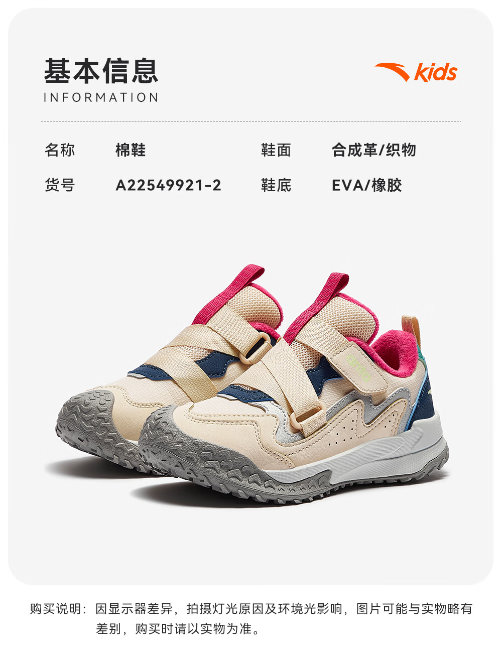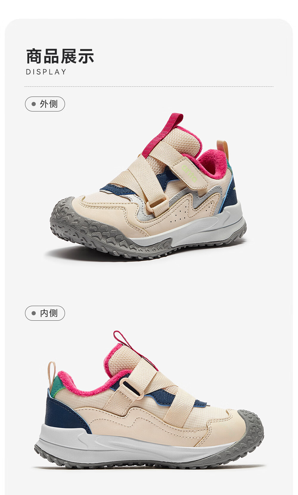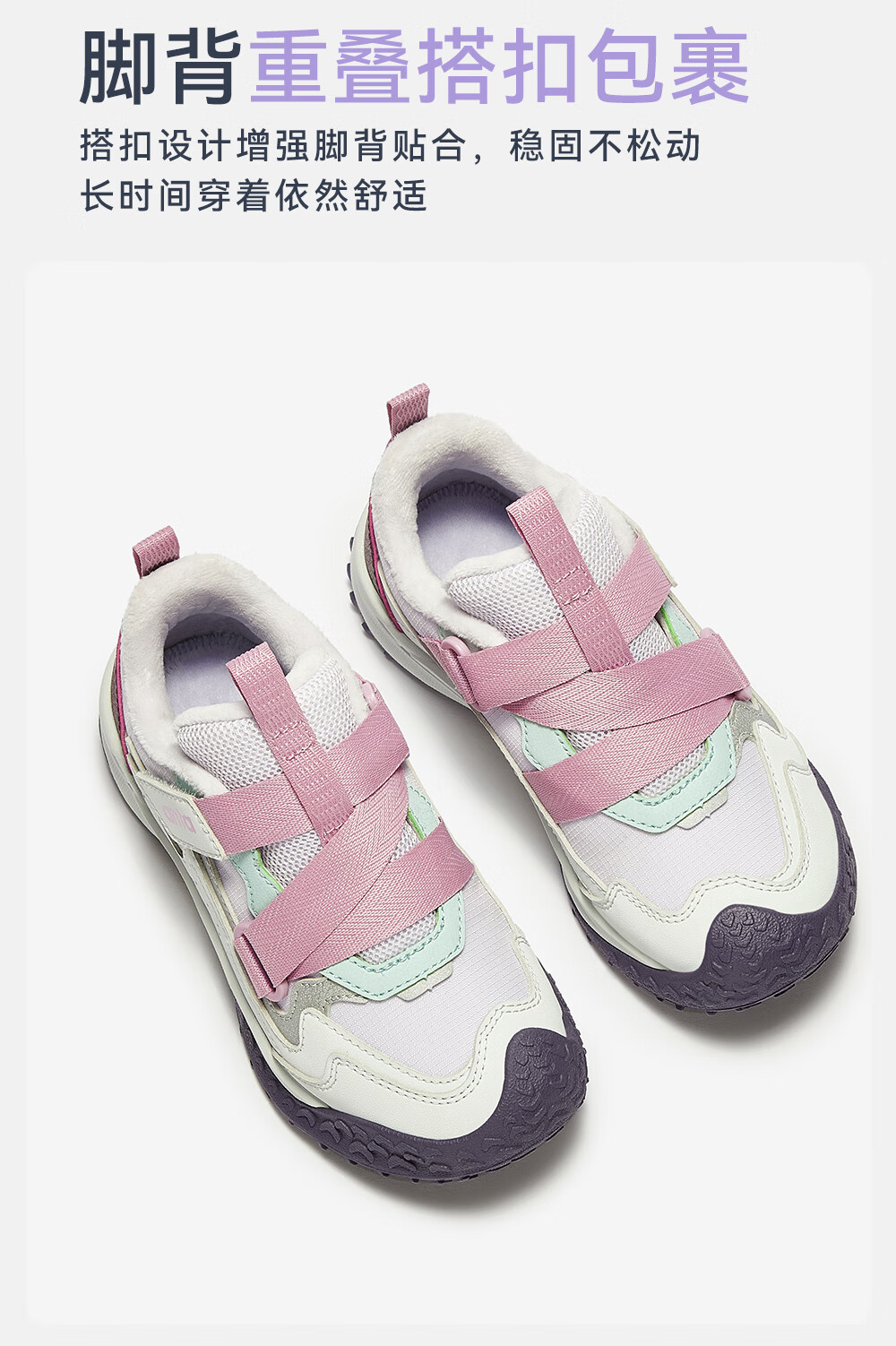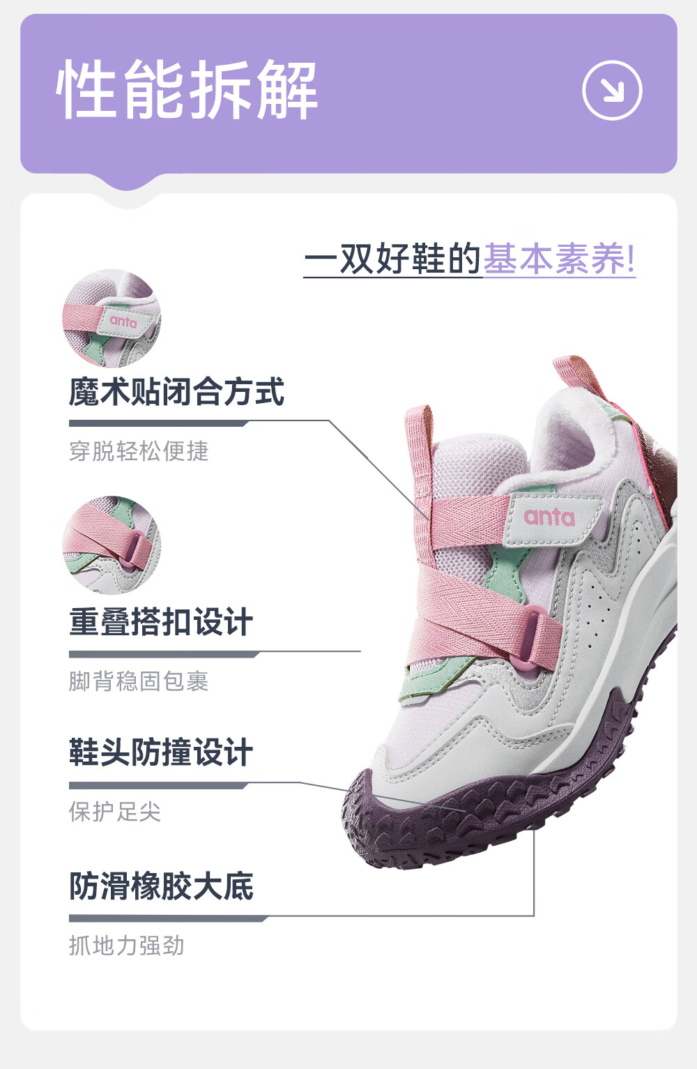 ANTA children's cotton shoes for girls Quye 25 autumn and winter new outdoor leather and velvet warm trendy color matching fashionable cotton shoes Mushan purple/grass white gray/cherry red paint color-1 30 shoe inner length 18.5cm