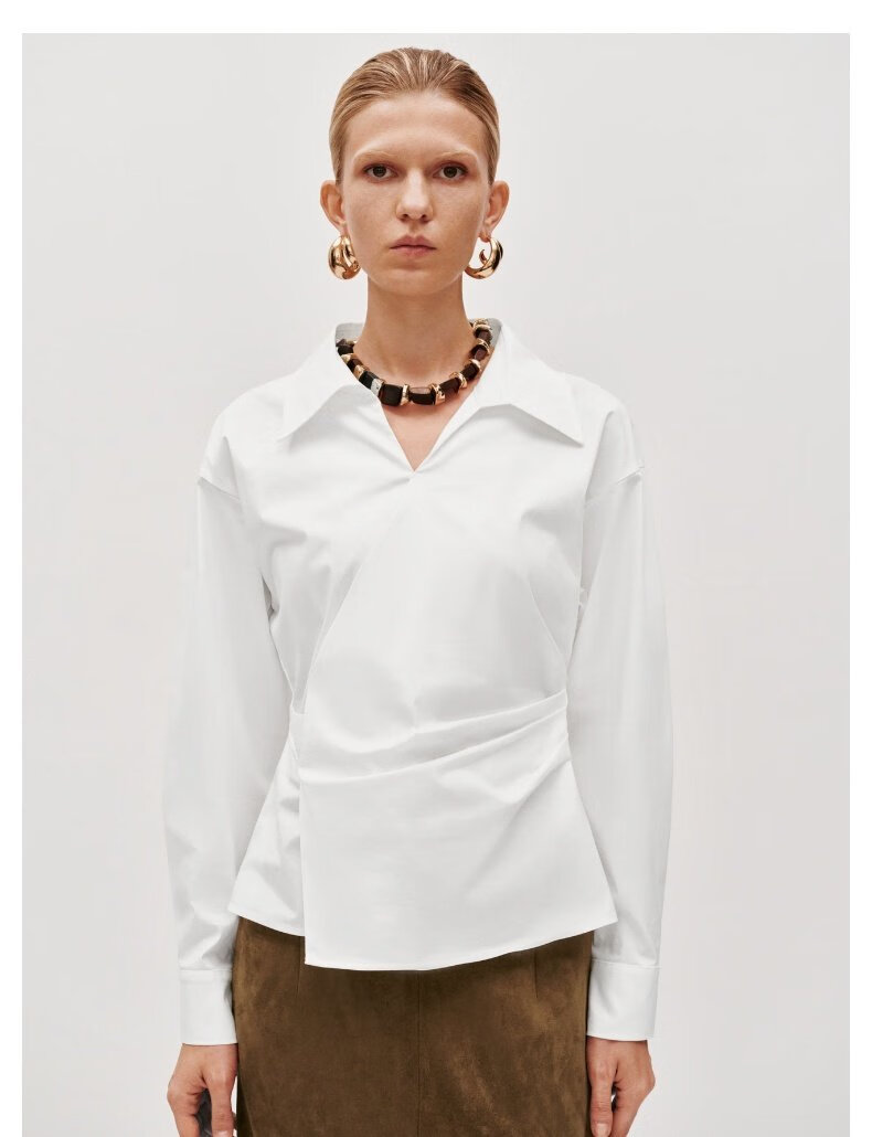 UR2026 Spring New Women's Style Asymmetrical Pleated Waist Blouse Shirt UWM250126 Original White S