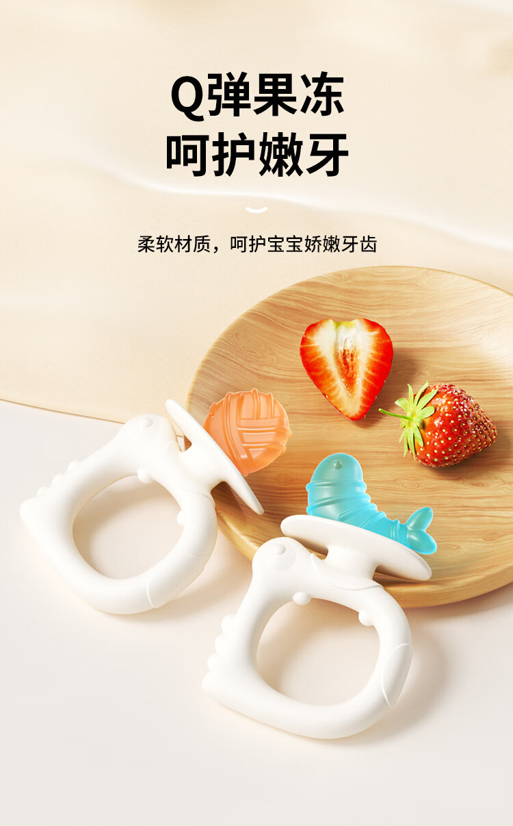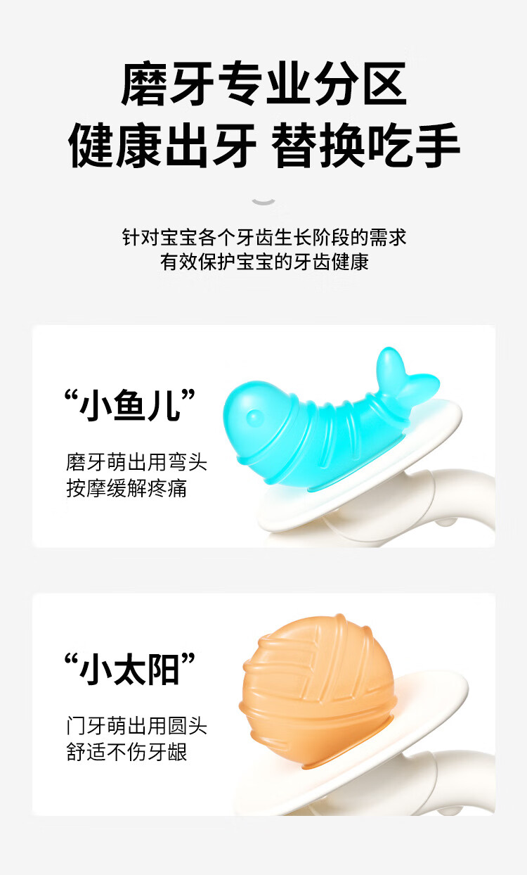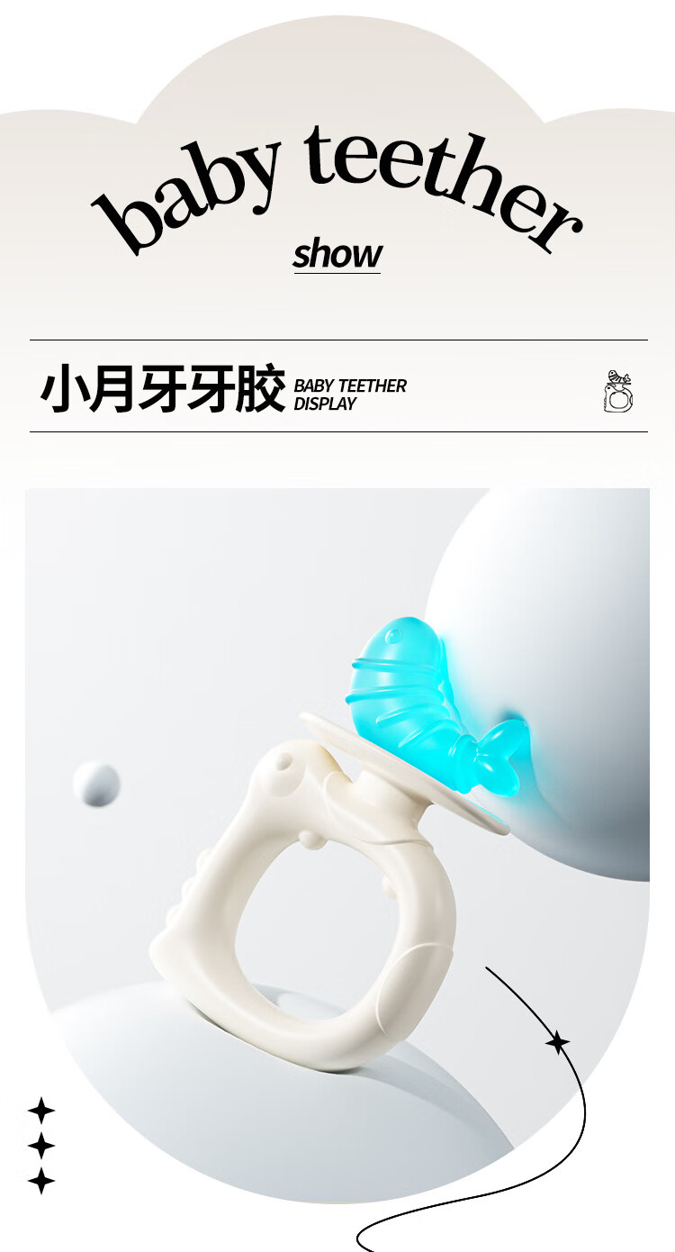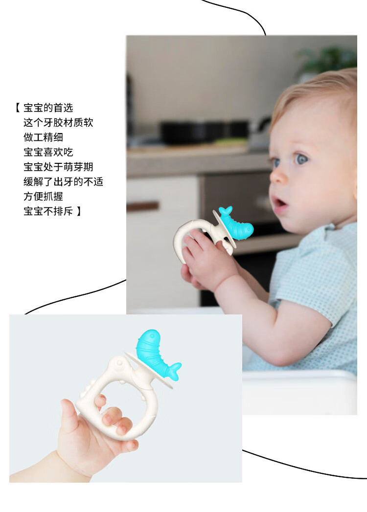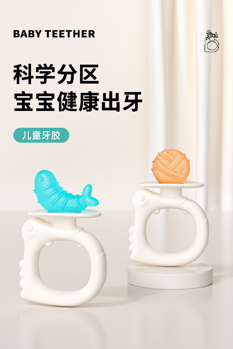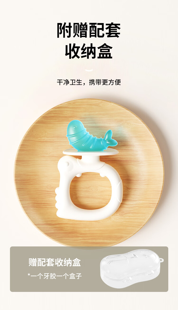 Baby teether and molar stick can be boiled and chewed to prevent eating and soothe the baby's mouth during the oral period. Hand-held baby teether, blue and orange, free and stored