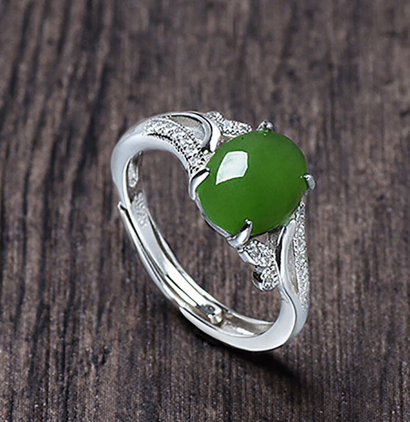 KZD Old Phoenix 999 sterling silver Hetian jade plated platinum jasper inlaid emerald open female ring ring JZ004 chrysoprase ring