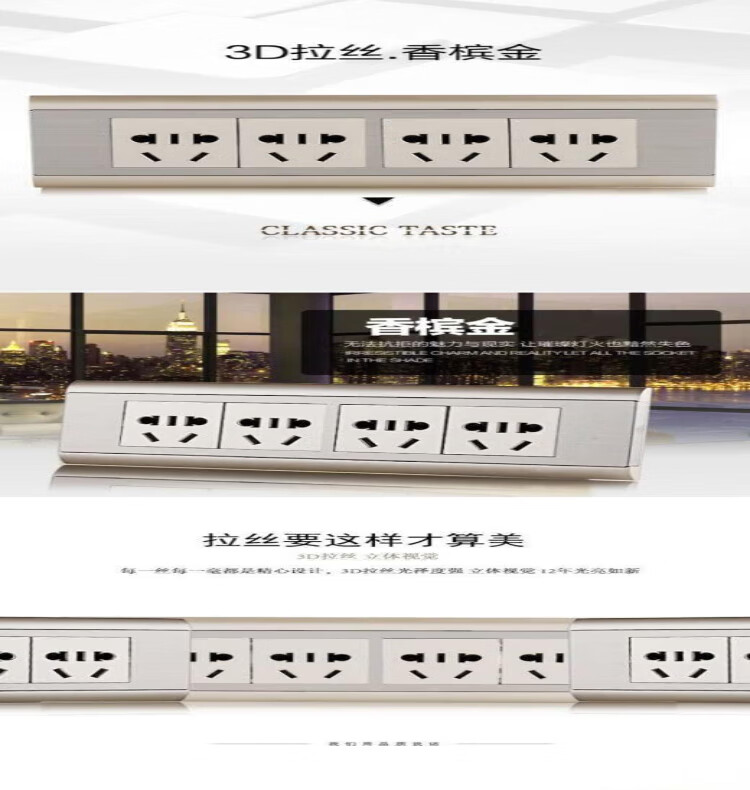 Type 118 switch socket concealed panel stainless steel nine-hole universal 6-hole socket multi-functional old-fashioned wall socket 4-bit computer + universal 9-hole socket