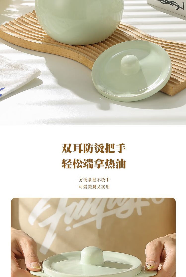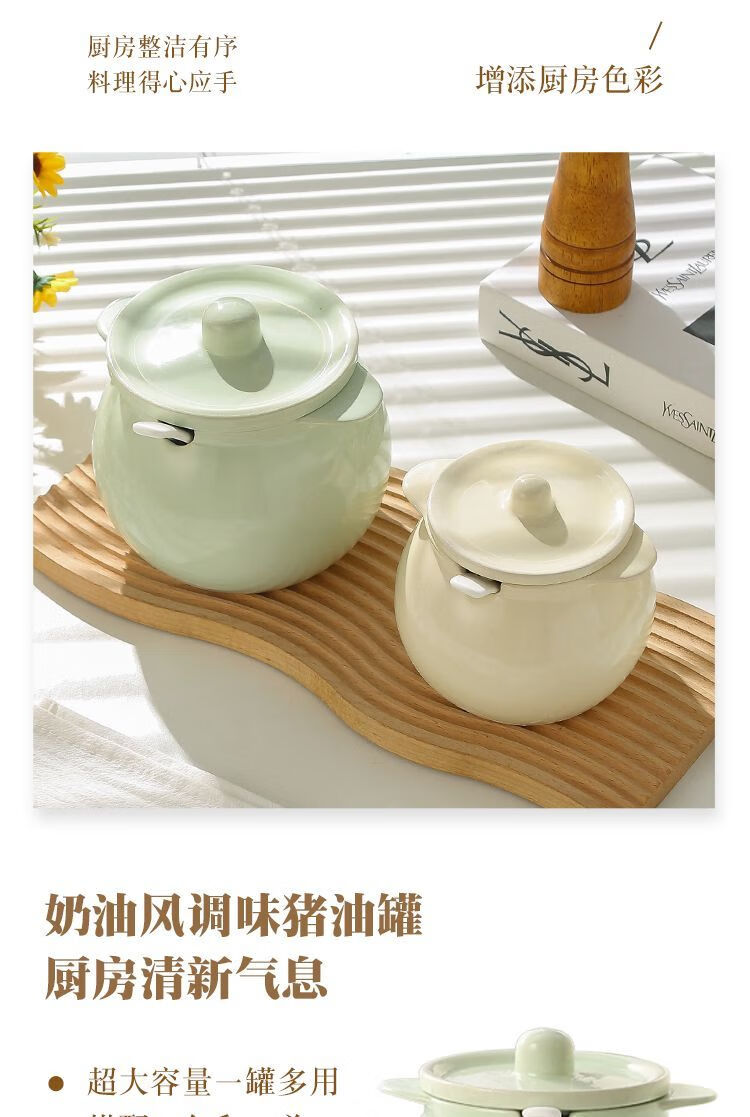 Xiongwochi ceramic high temperature resistant spicy jar kitchen household special oil storage tank lard jar with lid spicy jar spice jar 1380 degrees high temperature firing without bursting - extra large 2500ML milk yellow + lid + spoon
