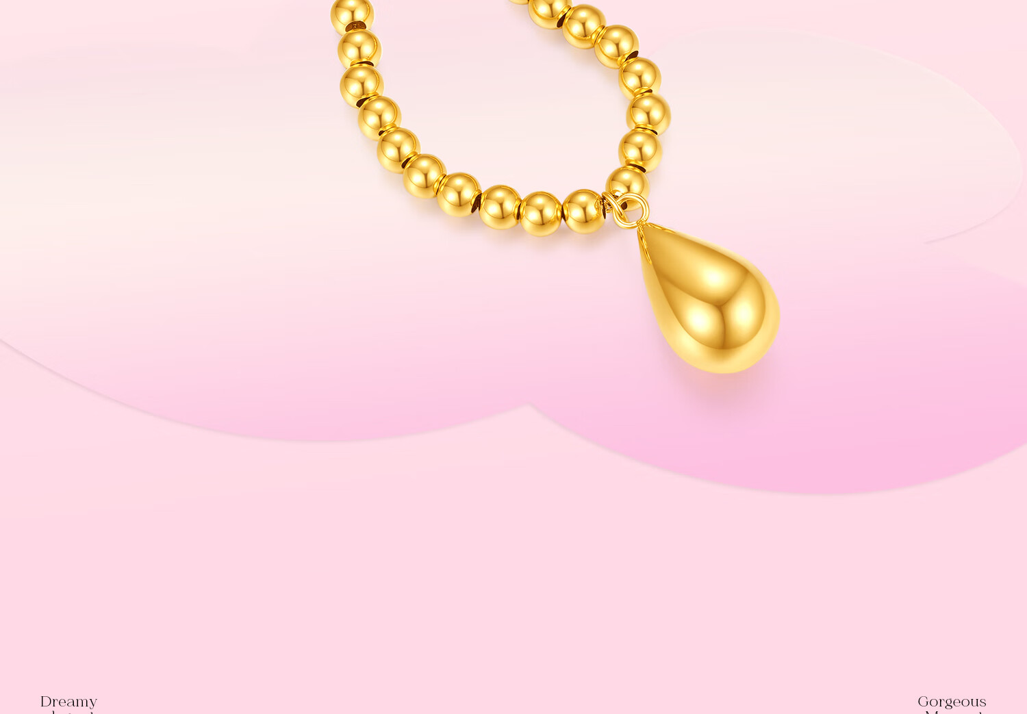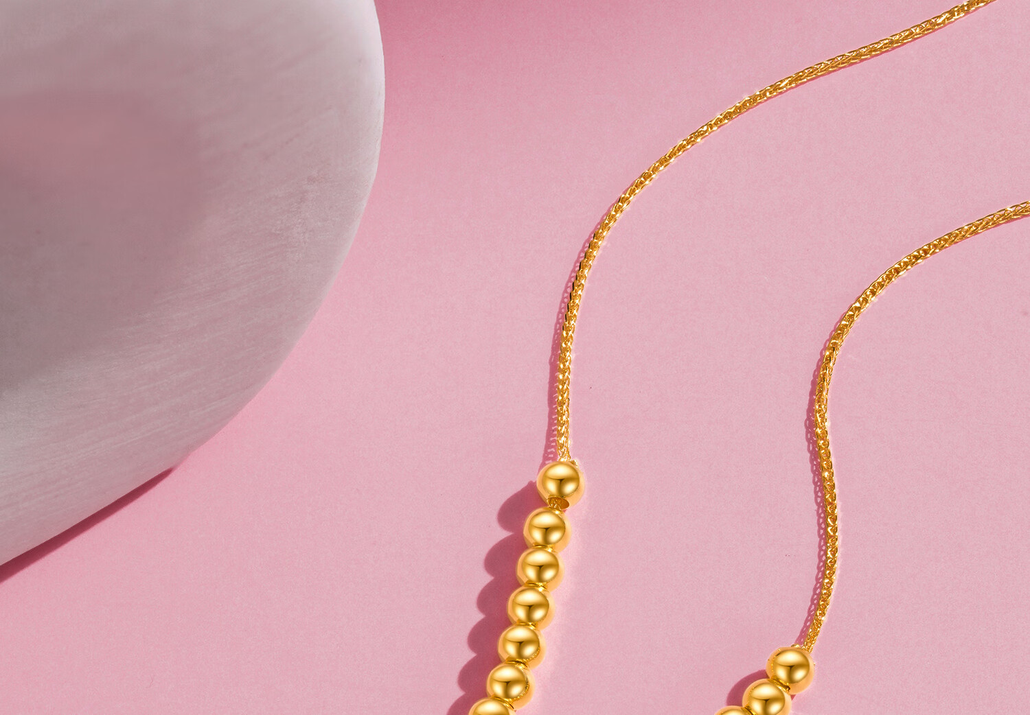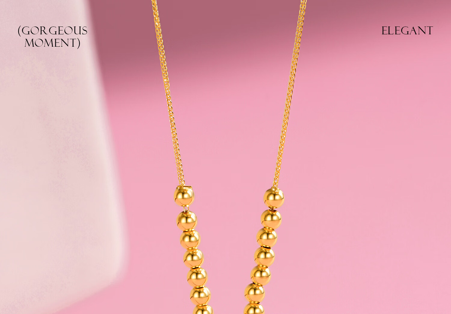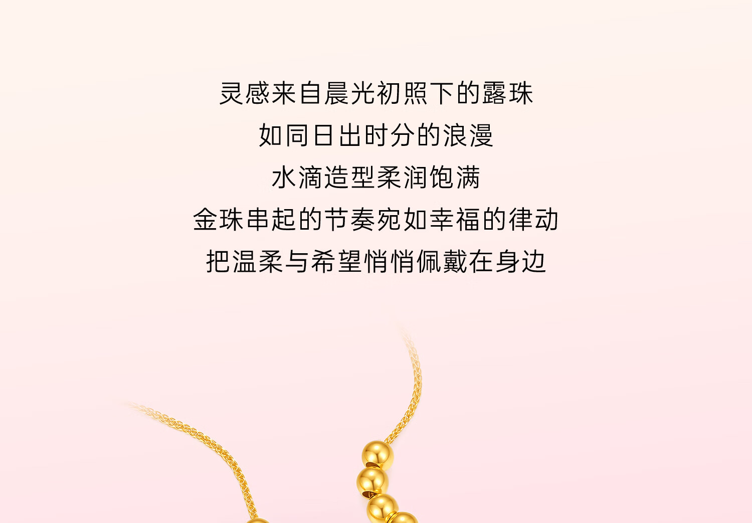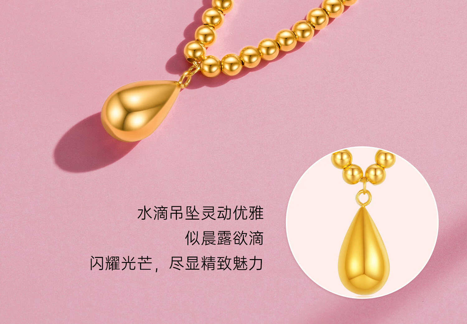 Zhongxin Jewelry 18K gold water drop bead set chain fashionable polished sun dew gold bead clavicle chain as a birthday gift for your girlfriend, about 1.2 grams