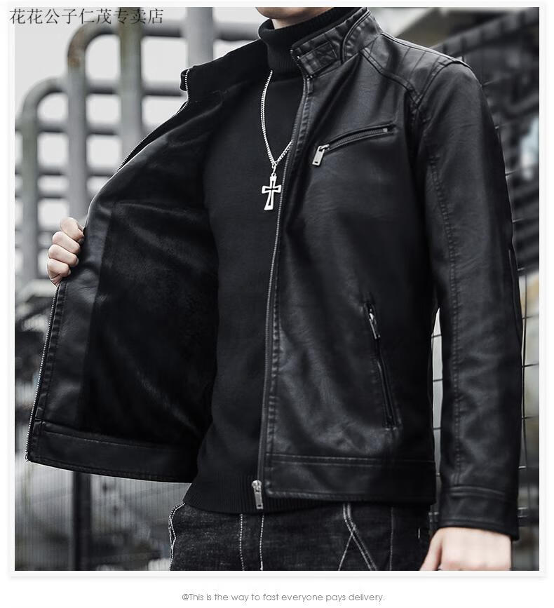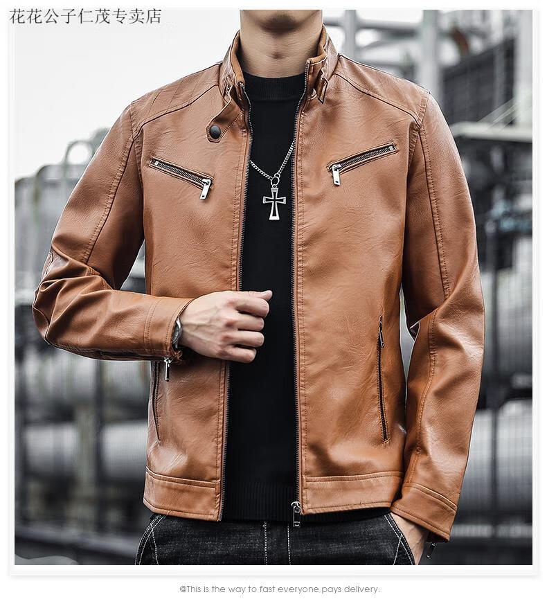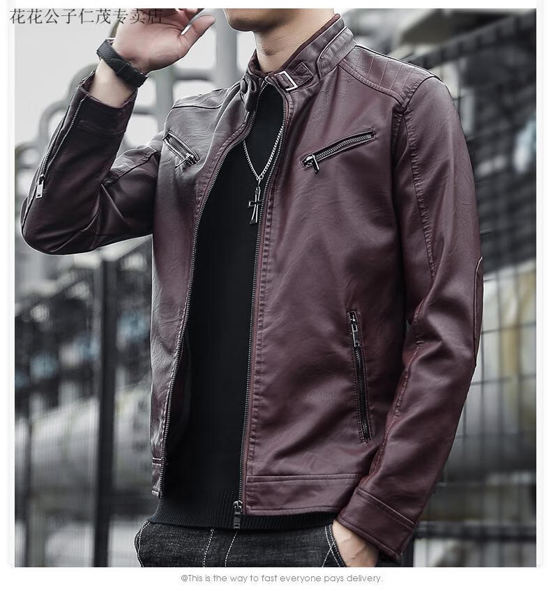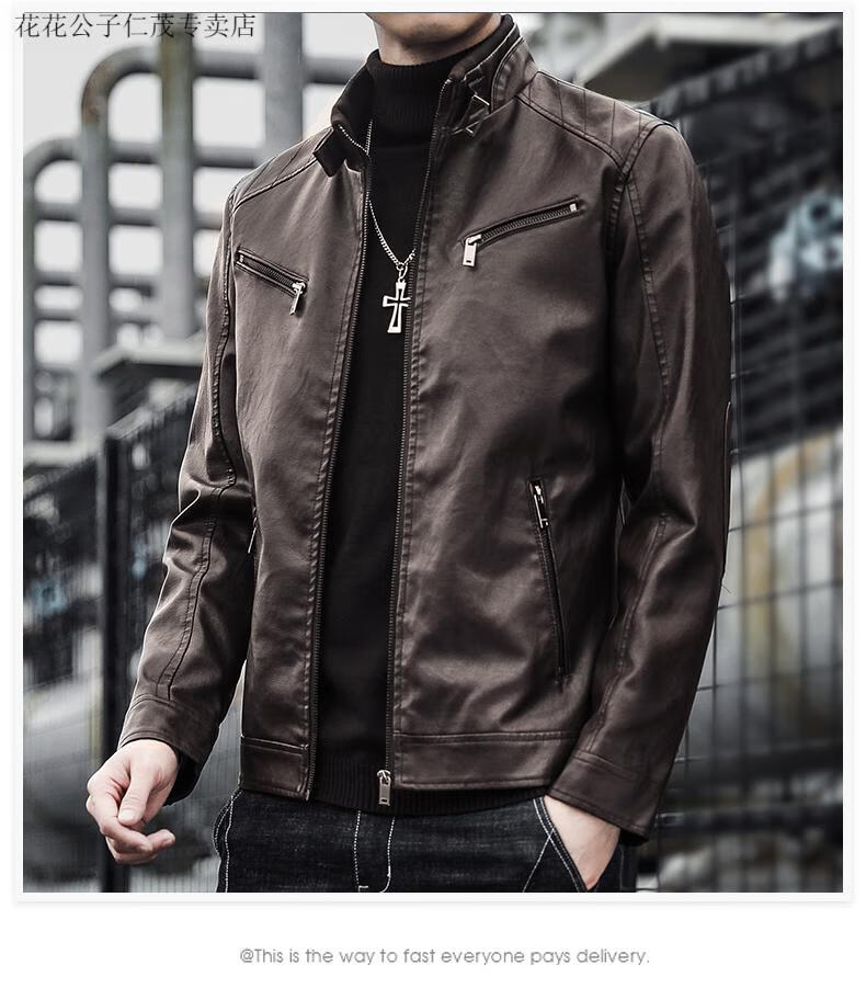 Playboy (PLAYBOY) Stand Collar Leather Coat Men's 2025 Spring and Autumn New Trendy Upper Clothes Men's Velvet Thickened Winter Workwear Jacket 609 Coffee Velvet XL
